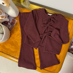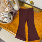Pantalone trombetta in caldo cotone dal colore borgogna, un capo essenziale nel guardaroba.