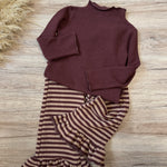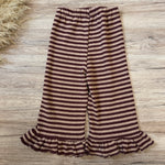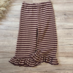 Pantaloni in caldo cotone a righe borgogna e pink blush- con ruches