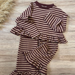 fiorile - Pantaloni in caldo cotone a righe borgogna e pink blush- con ruches