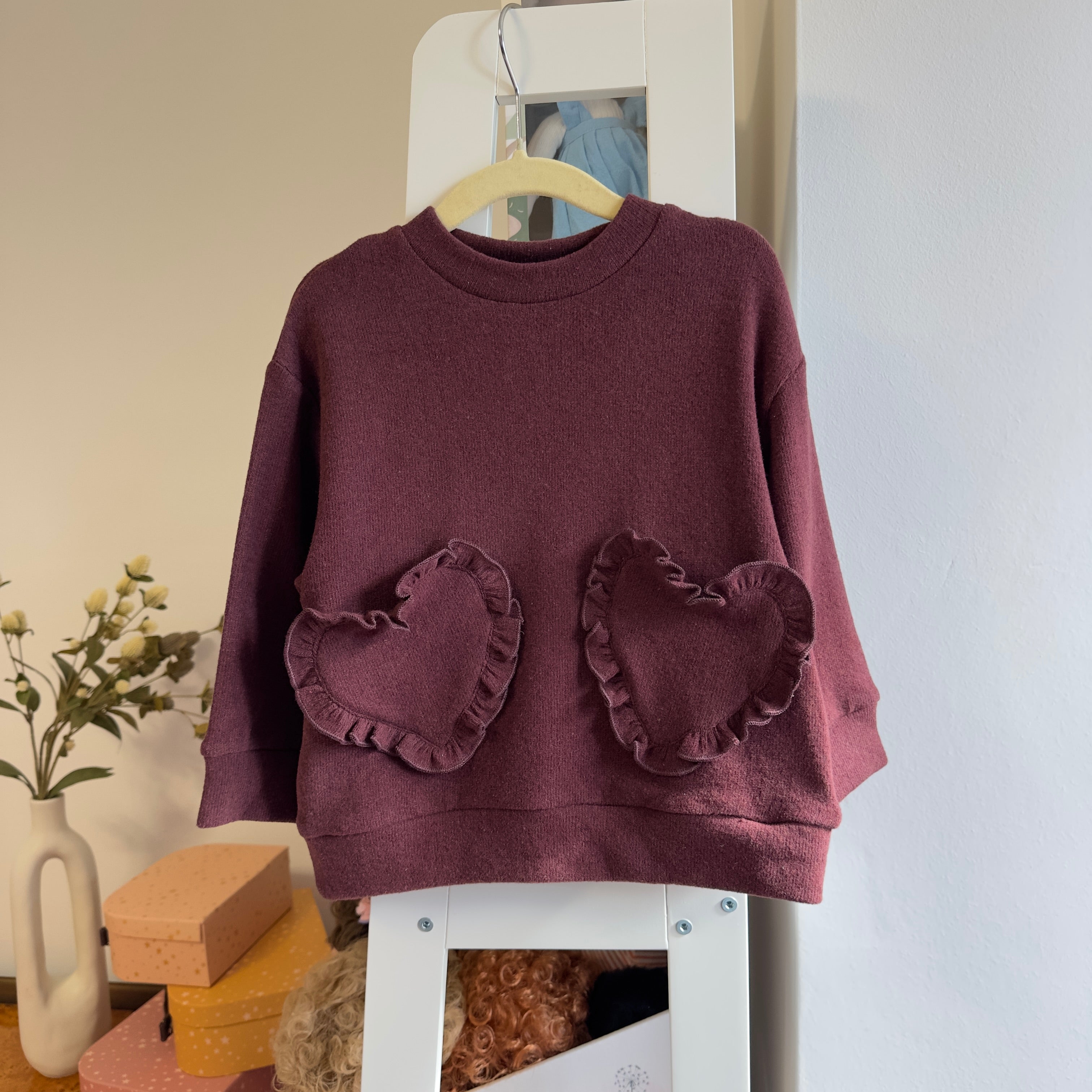 Maglia in caldo cotone borgogna con tasche frontali a cuore