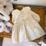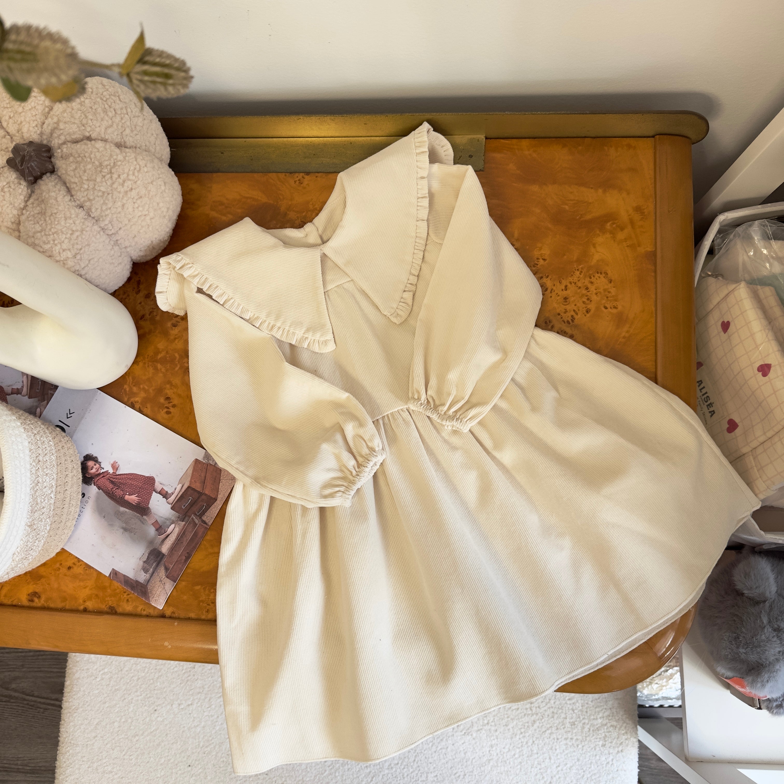 Un abito dallo stile senza tempo, in microvelluto di cotone color latte, caldo e morbidissimo al tatto. Il maxi colletto aggiunge un tocco raffinato e retrò, rendendolo perfetto per ogni occasione. Comodo, versatile e curato in ogni dettaglio: un capo speciale da avere sempre a portata di mano.