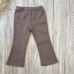 Pantalone in cotone color mocha mousse, con taglio trombetta e fondo leggermente svasato.