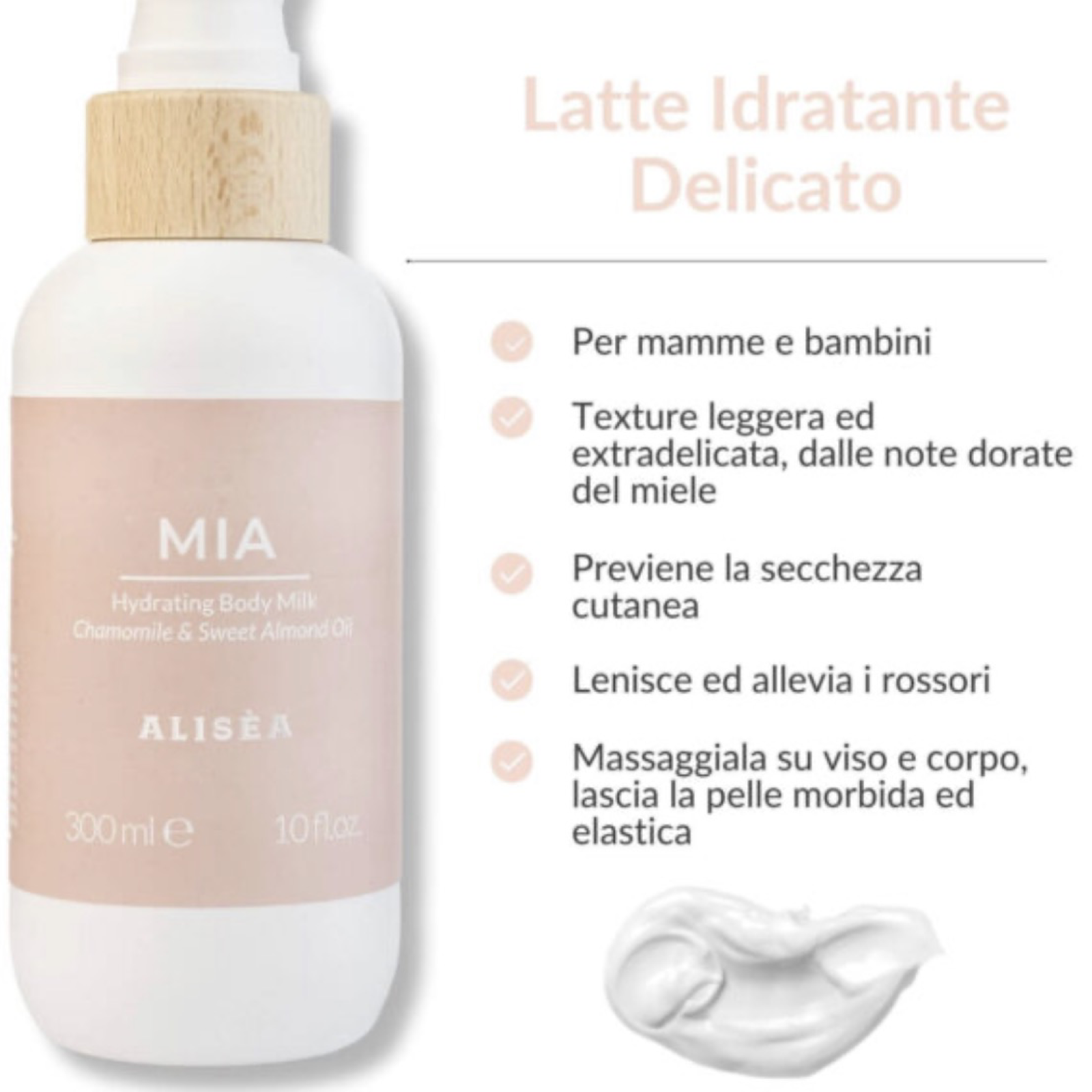 Mia è molto di più di un semplice latte corpo idratante, la sua texture è leggera ed extradelicata per donare istantaneamente sollievo e confort alla pelle.