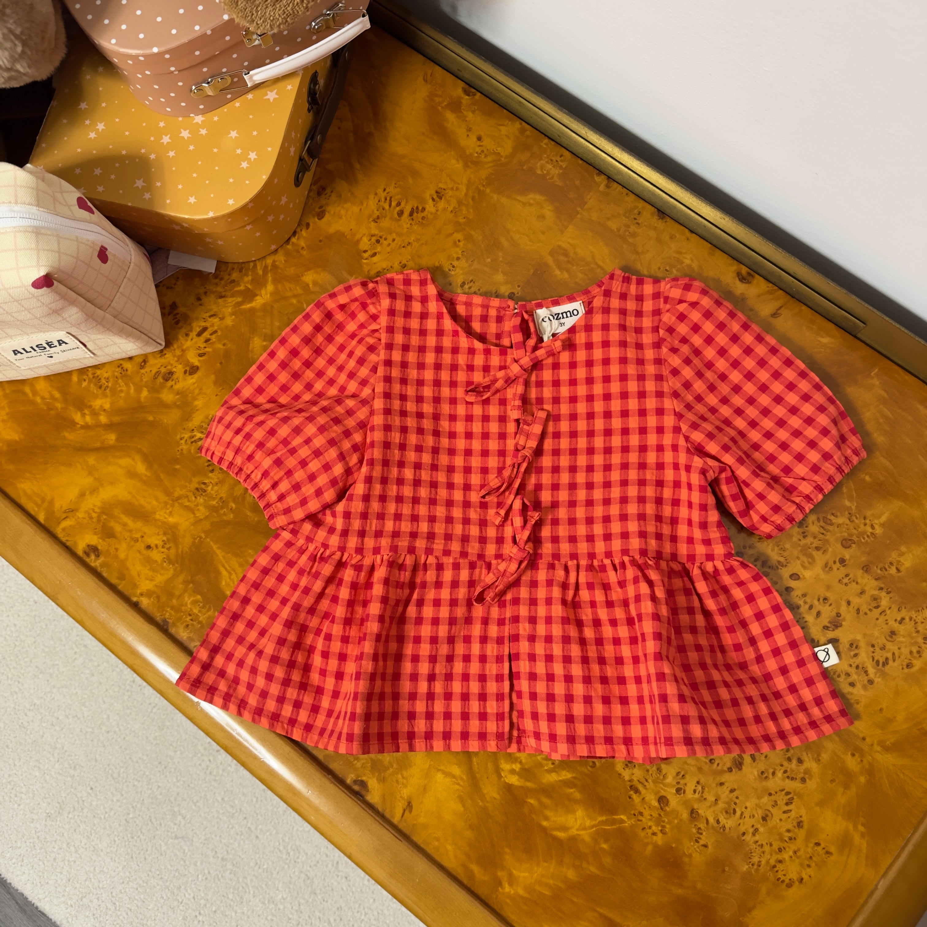 Cozmo - Blusa joy in cotone a quadretti Vichy con fiocchetti decorativi