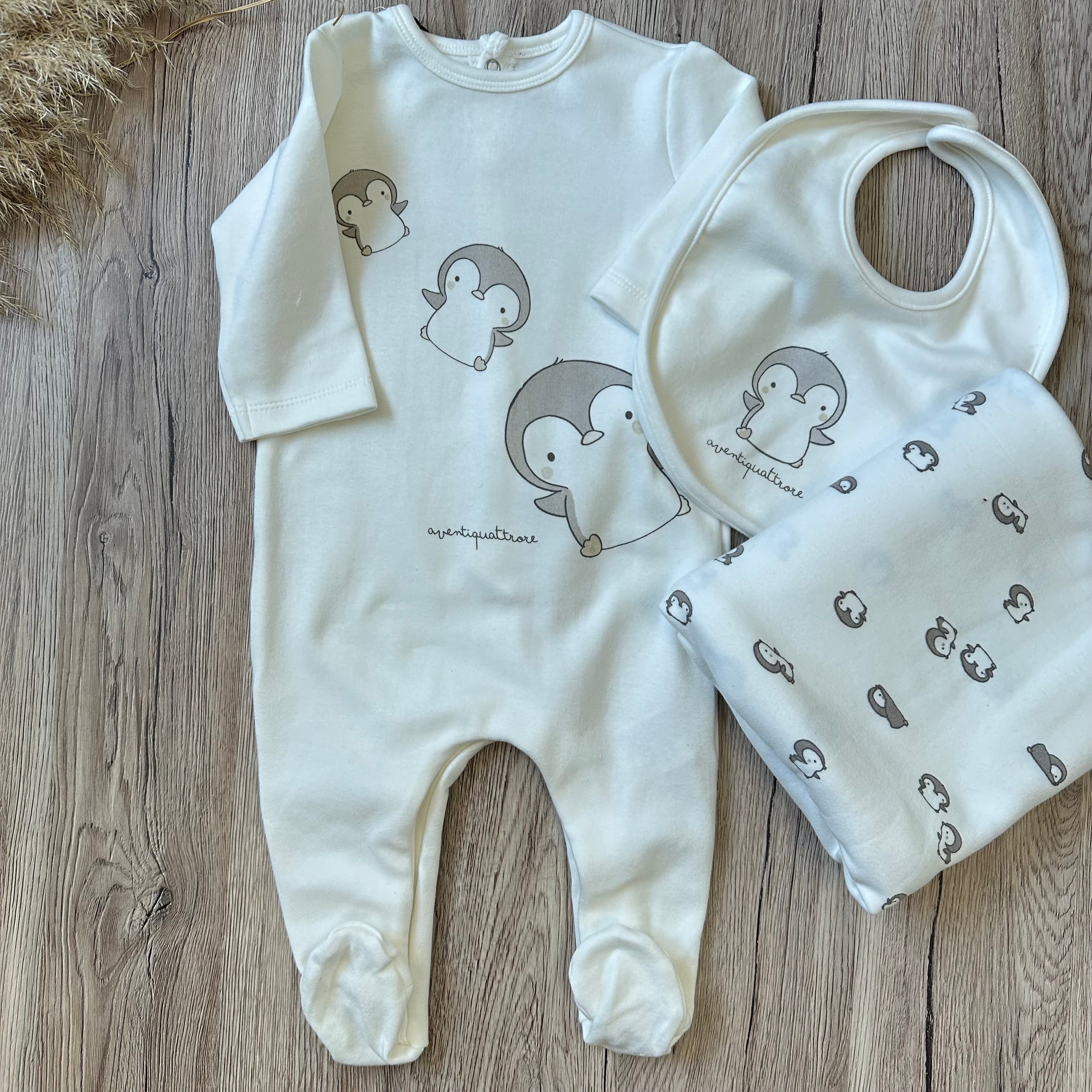 I tre pinguini ricamati sul davanti aggiungono un tocco dolce e divertente, perfetto per accompagnare ogni momento della giornata.