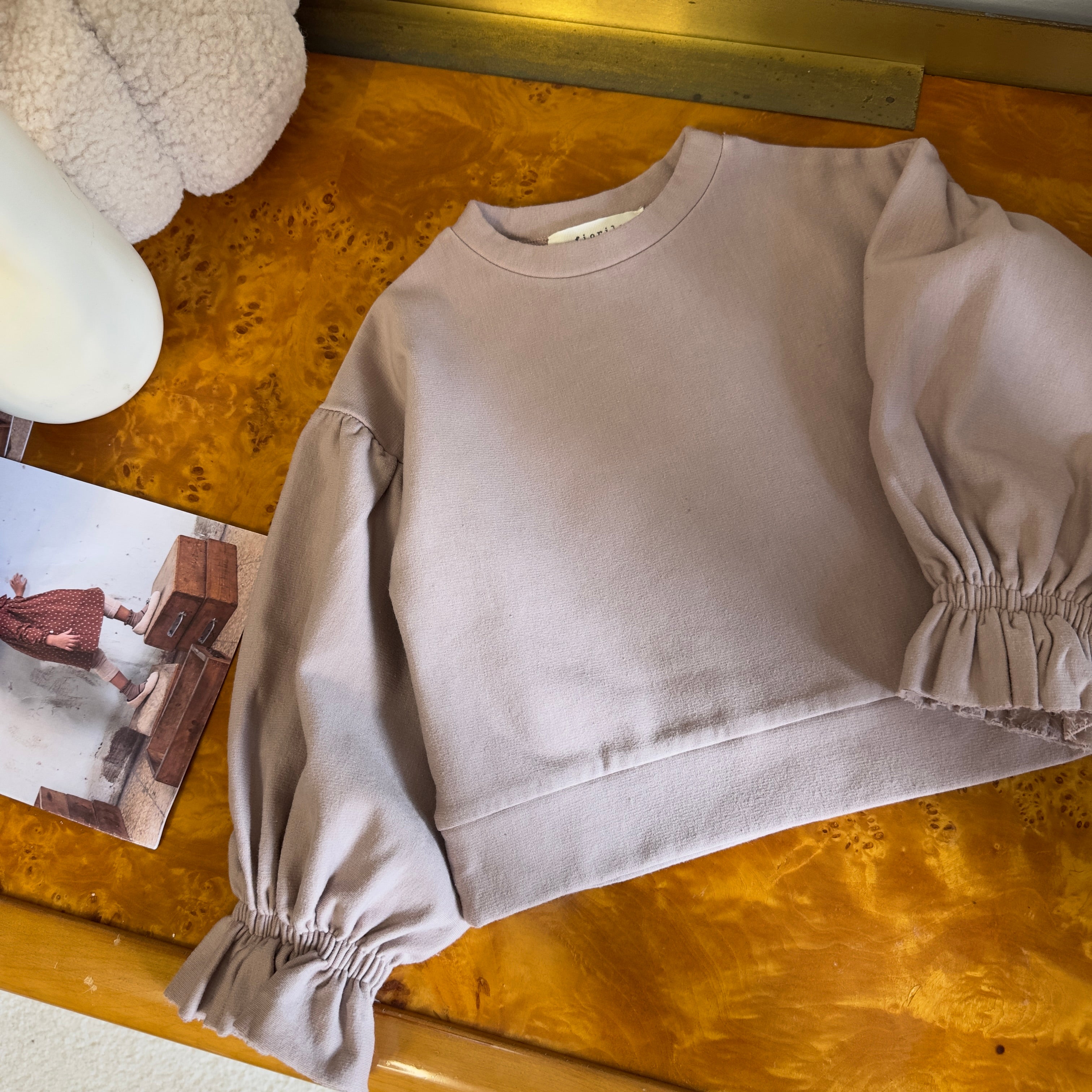 fiorile - Felpa in jersey di cotone cameo rose con manica a palloncino – versatile ed elegante