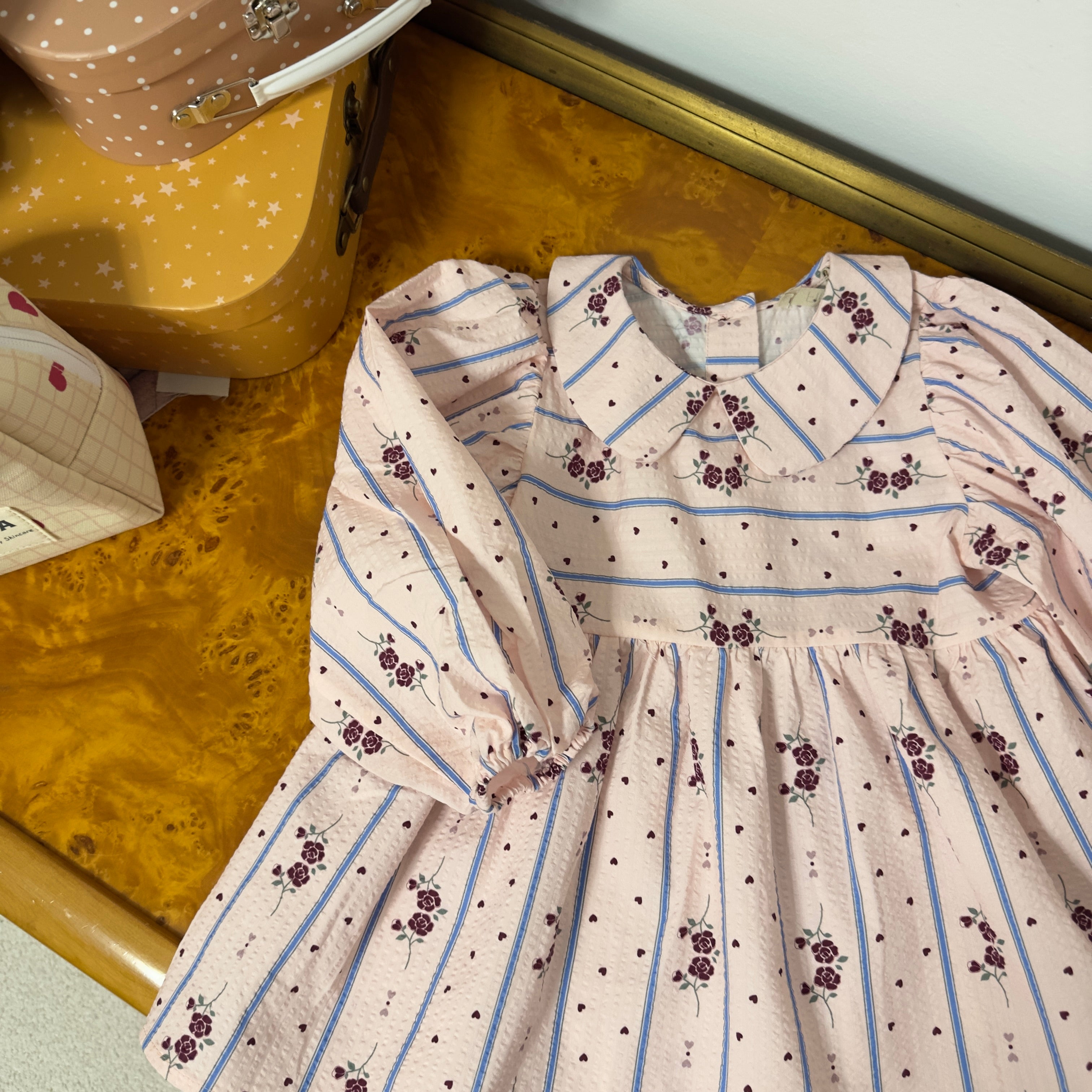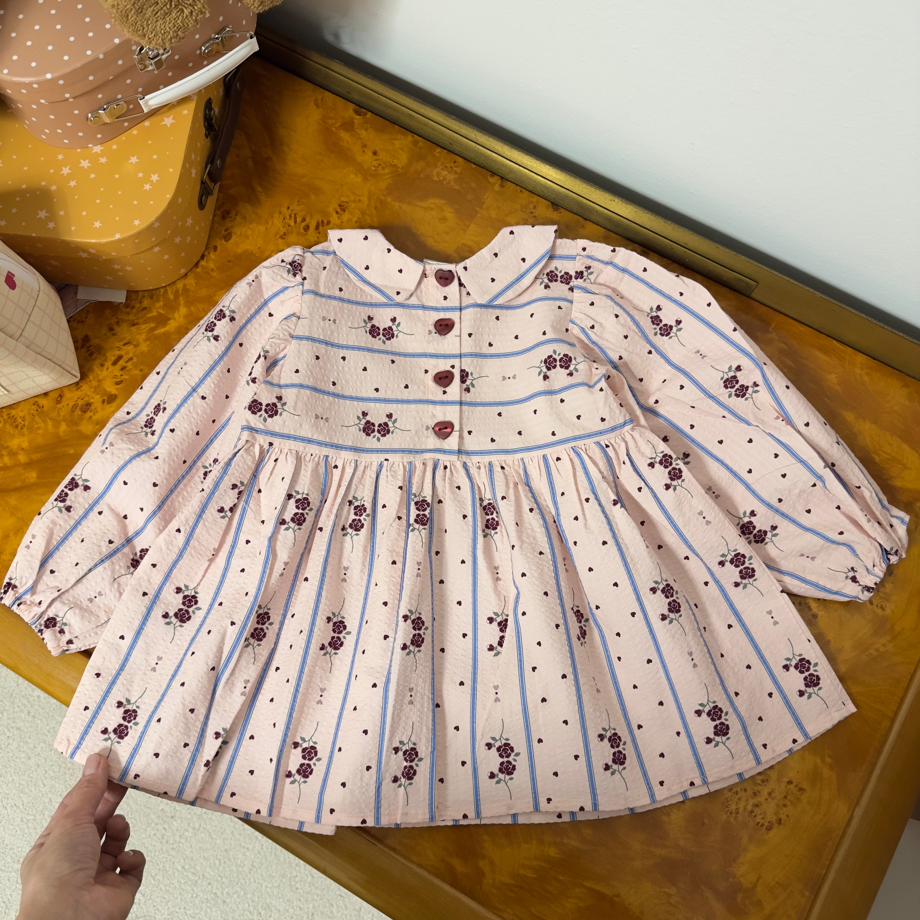 Fliink - Colombe Tunic – Blusa in Seersucker con Cuoricini, Roselline e Bottoni a Cuore