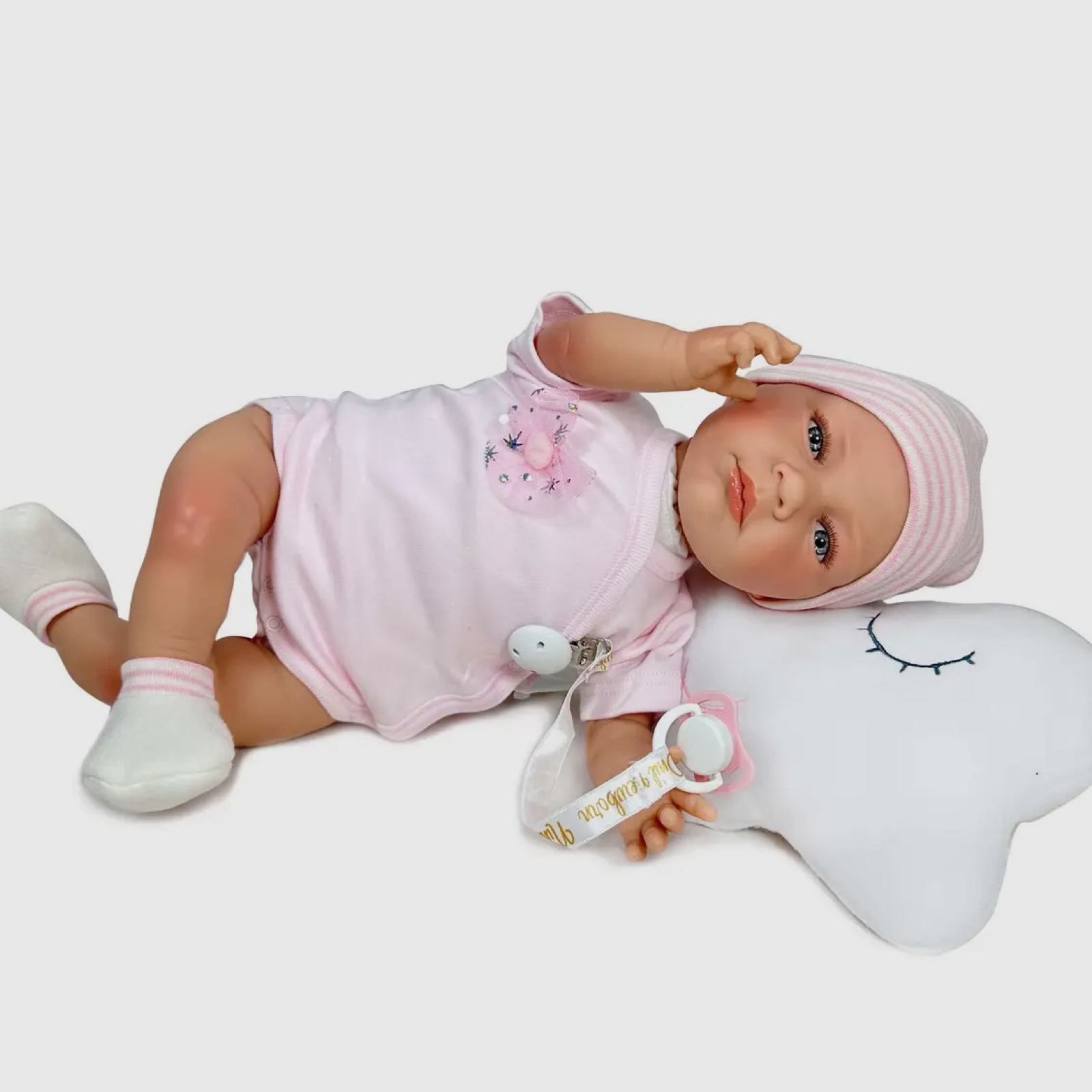 Bambola reborn Ariel 48cm con morbido cuscino