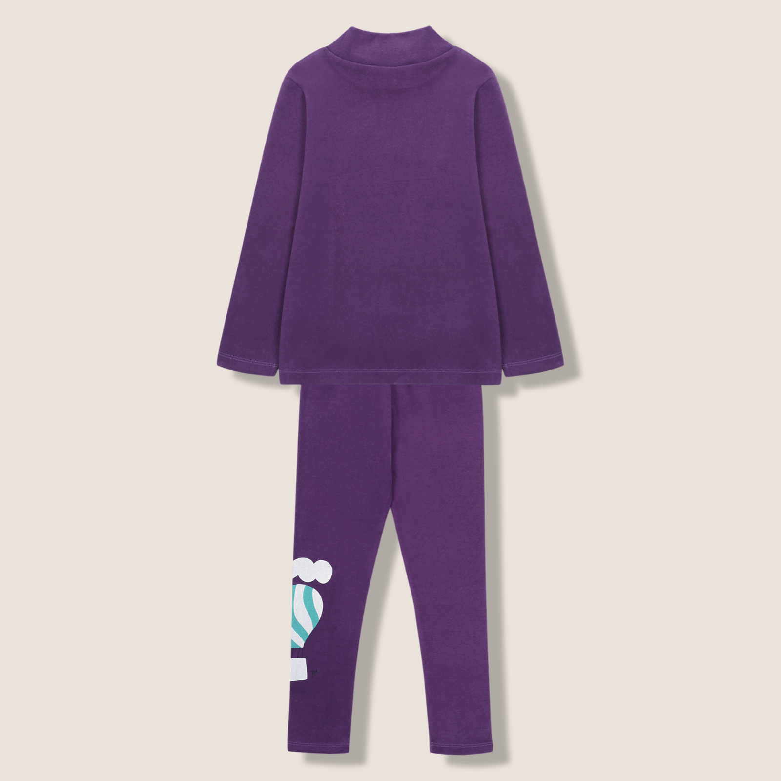 Il Airballoon Fleece Set è composto da un dolcevita caldo e avvolgente abbinato a leggings morbidi e confortevoli, entrambi con fondo viola delicato.