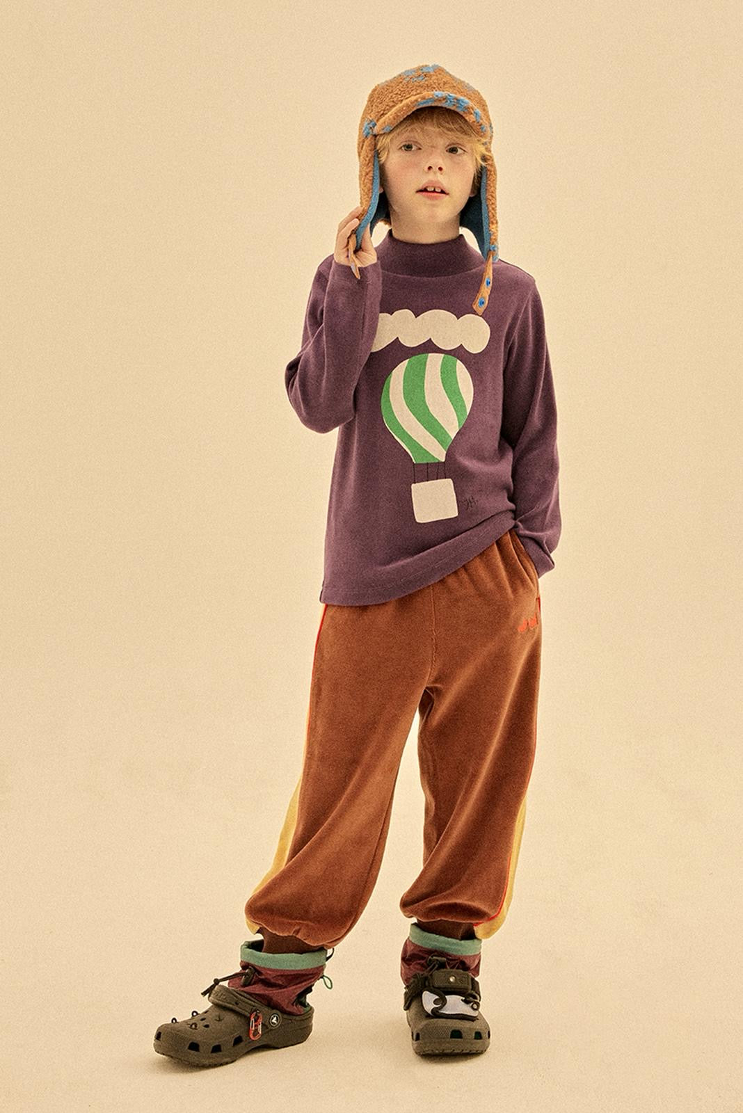La mongolfiera illustrata sul davanti e sul lato del leggings aggiunge un tocco sognante e originale, che rende questo completo perfetto per accompagnare le giornate con leggerezza e stile.