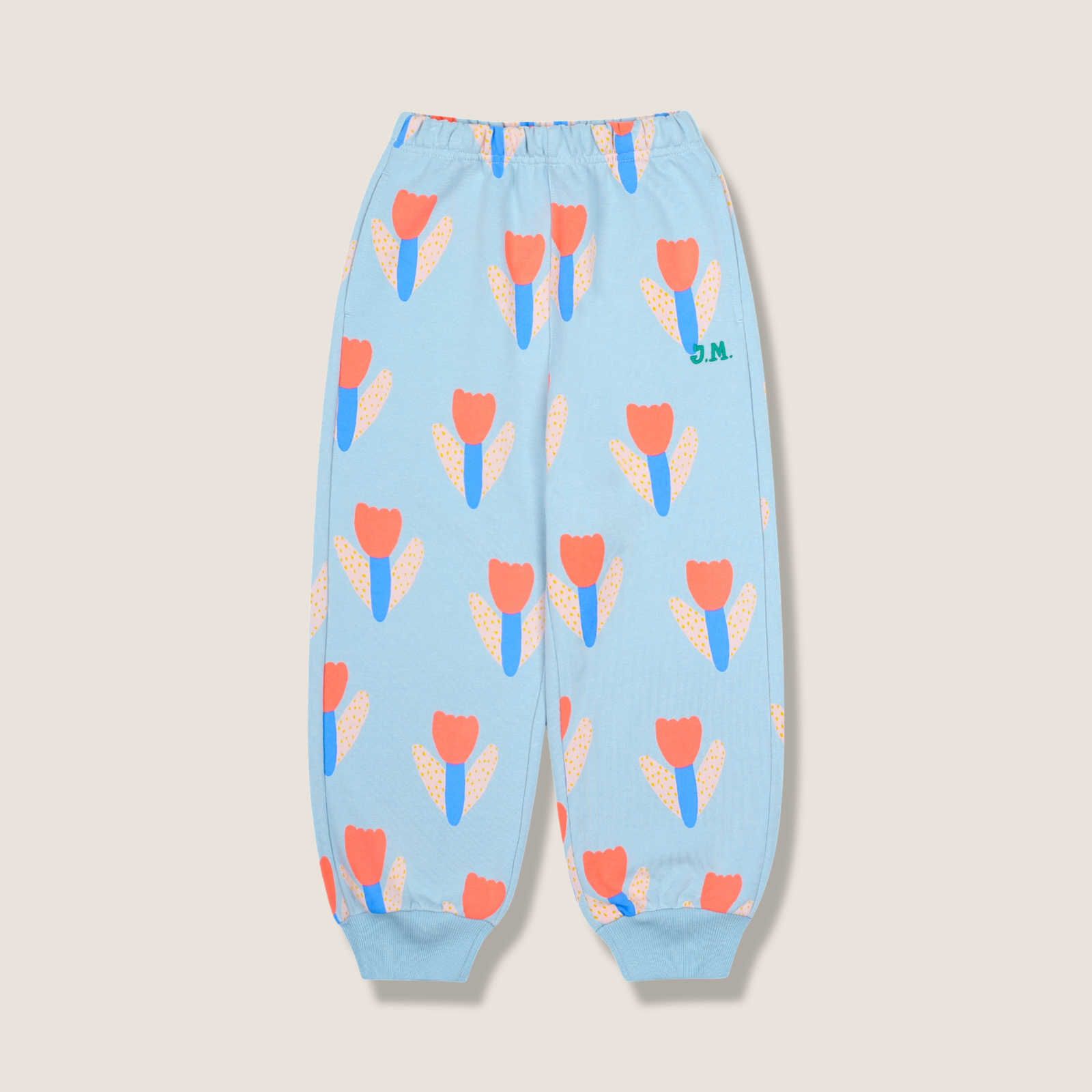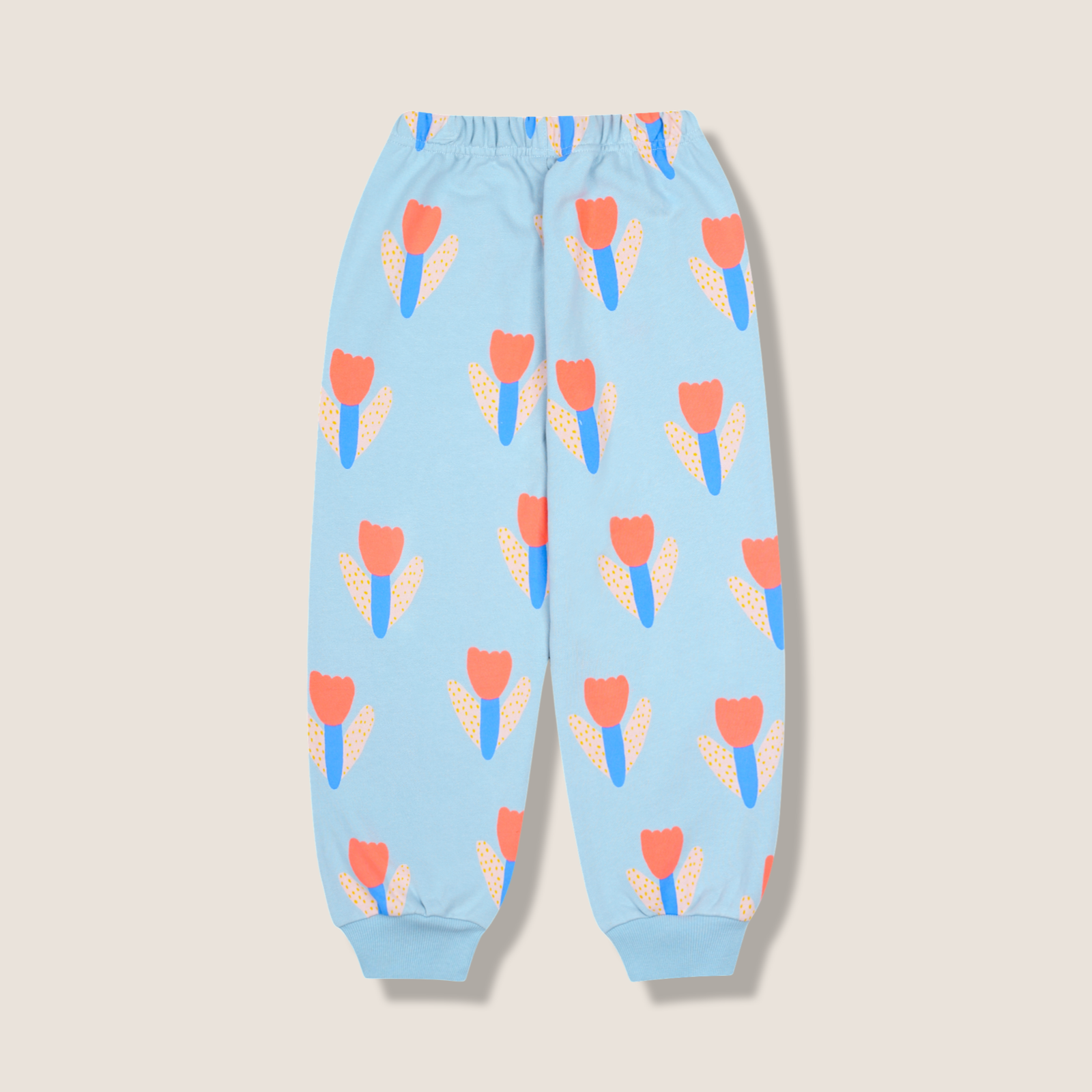 Comfort assoluto e un tocco di poesia: i pantaloni Tulip si muovono con leggerezza, grazie al taglio morbido e alla fantasia floreale che richiama la delicatezza dei tulipani. Il fondo azzurro polvere rende tutto più raffinato, senza rinunciare alla praticità.