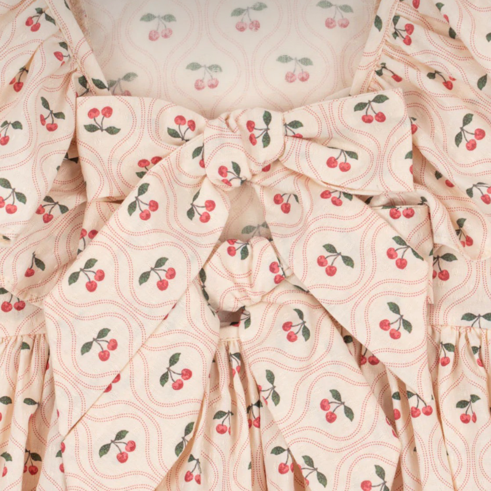 Konges Sløjd - Abito in cotone organico con fiocchi e ruches – Stampa esclusiva ciliegie