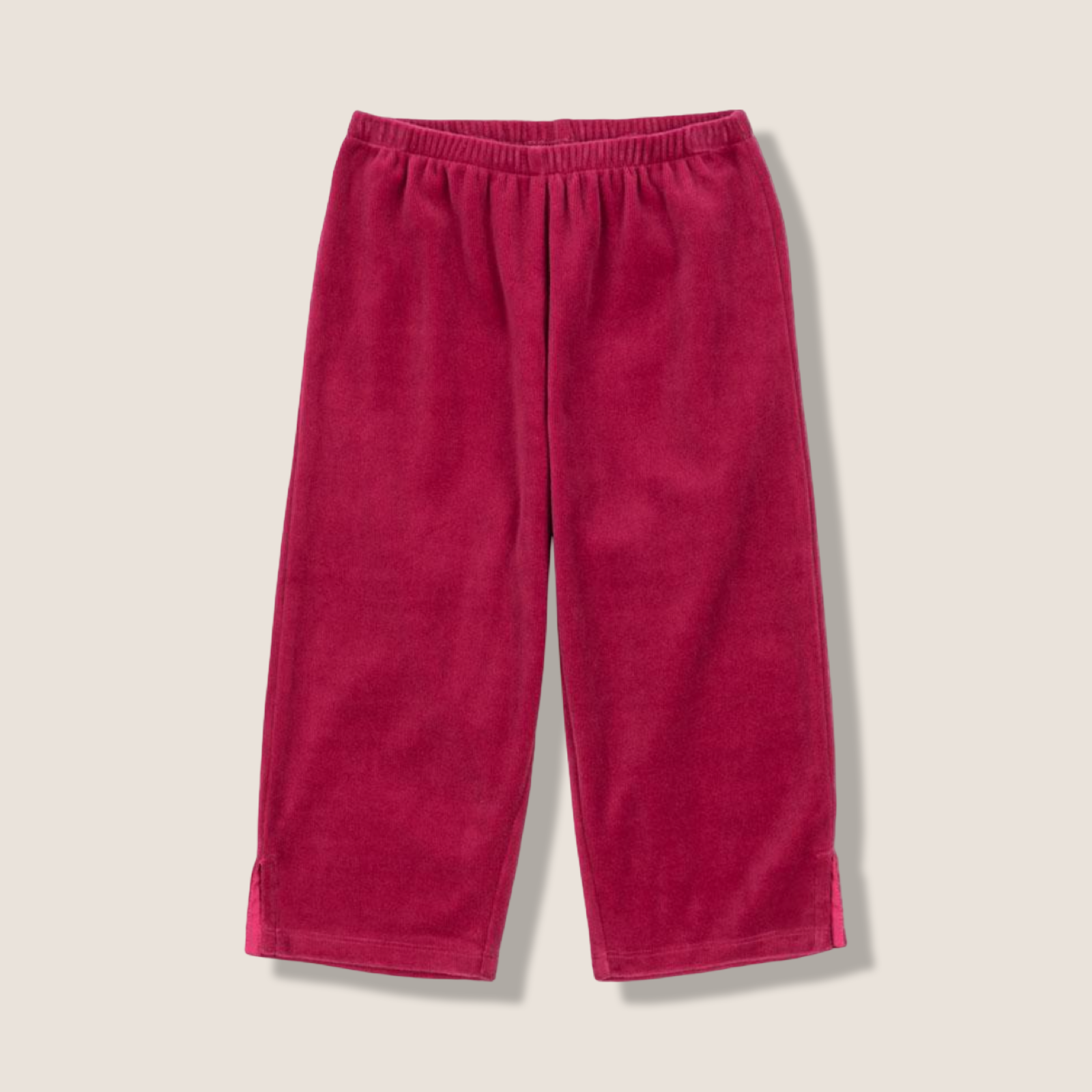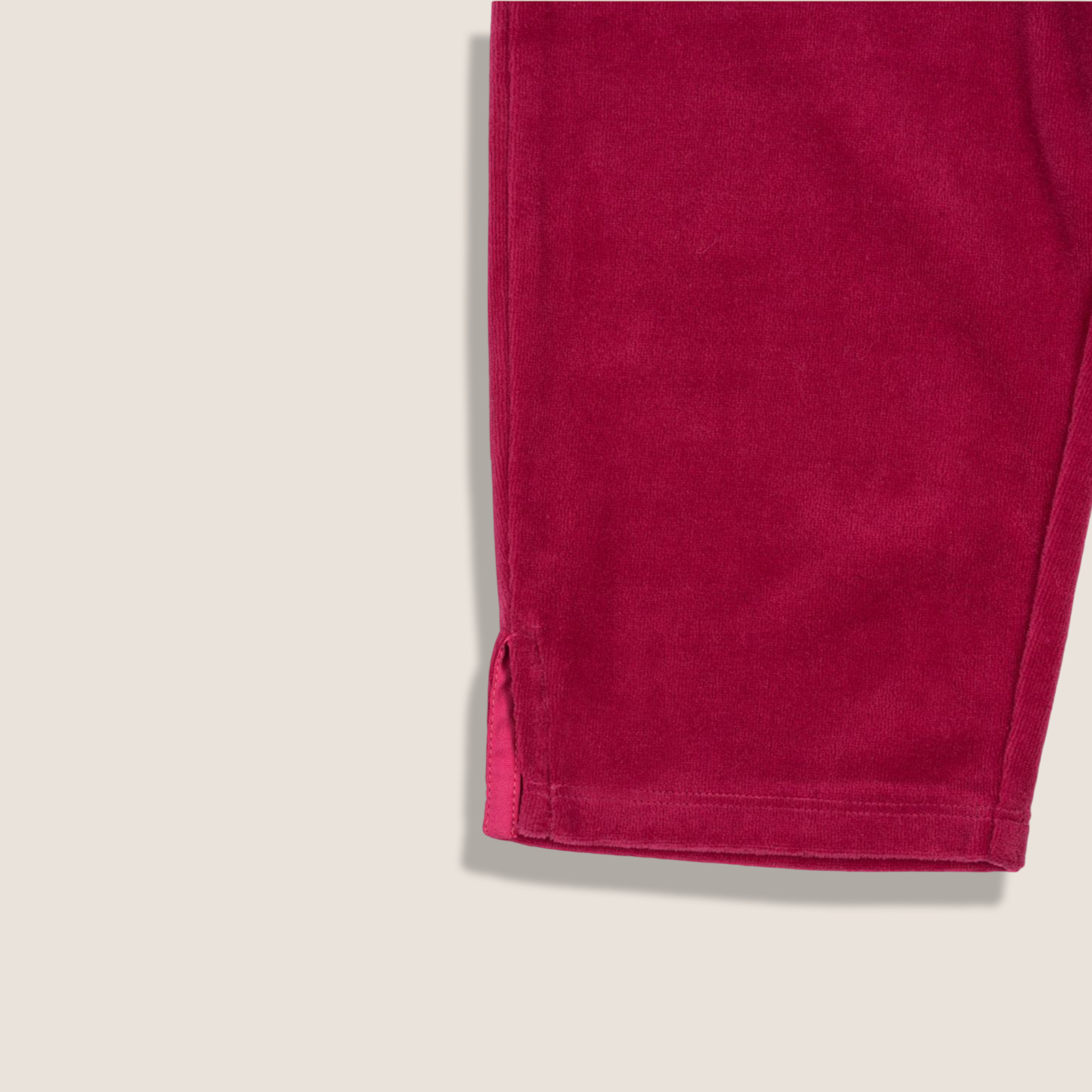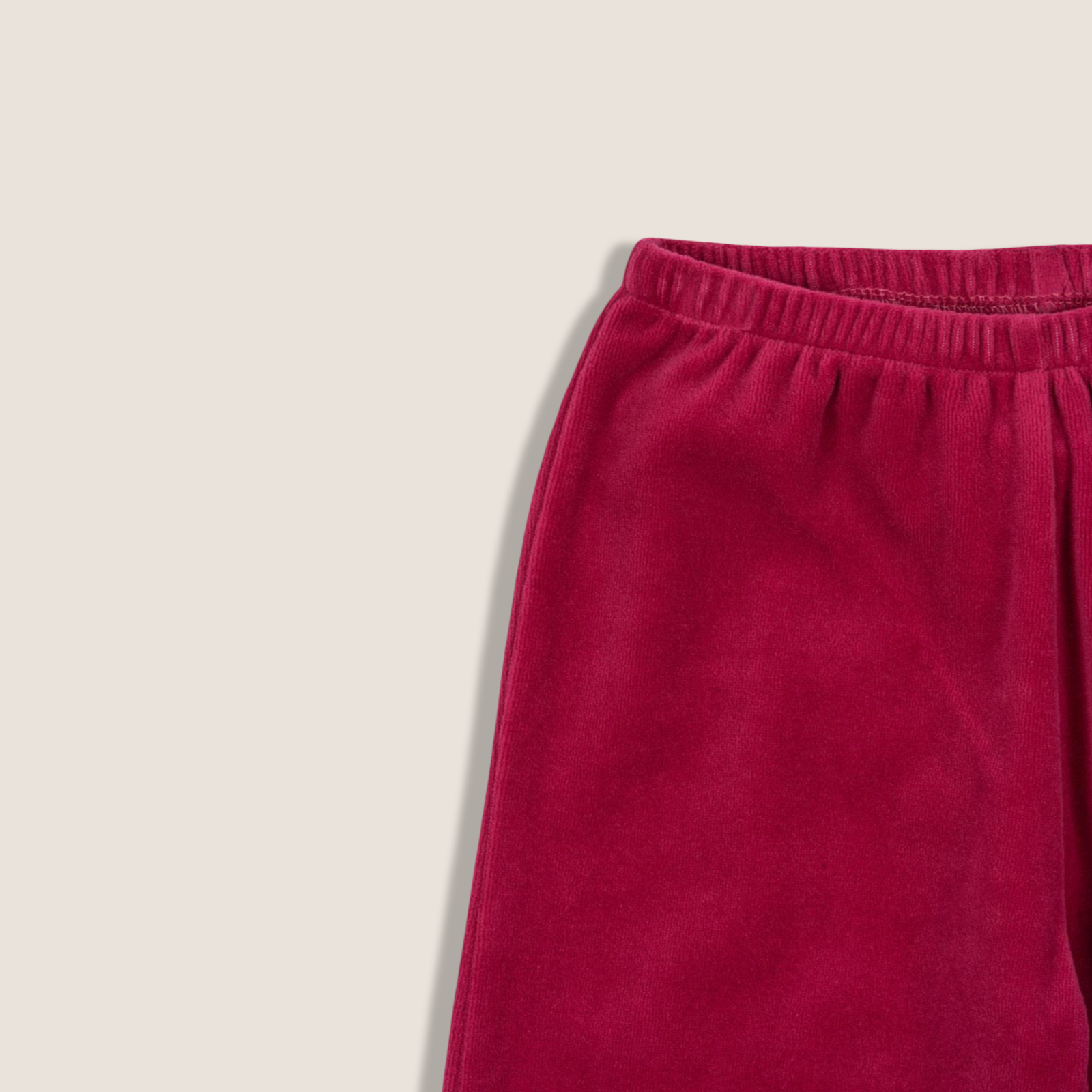 Pantalone in velluto di cotone biologico certificato GOTS, morbido e confortevole sulla pelle. Il colore magenta dona personalità e carattere, rendendolo un capo raffinato e versatile da indossare in ogni occasione. Una scelta che unisce stile e sostenibilità.