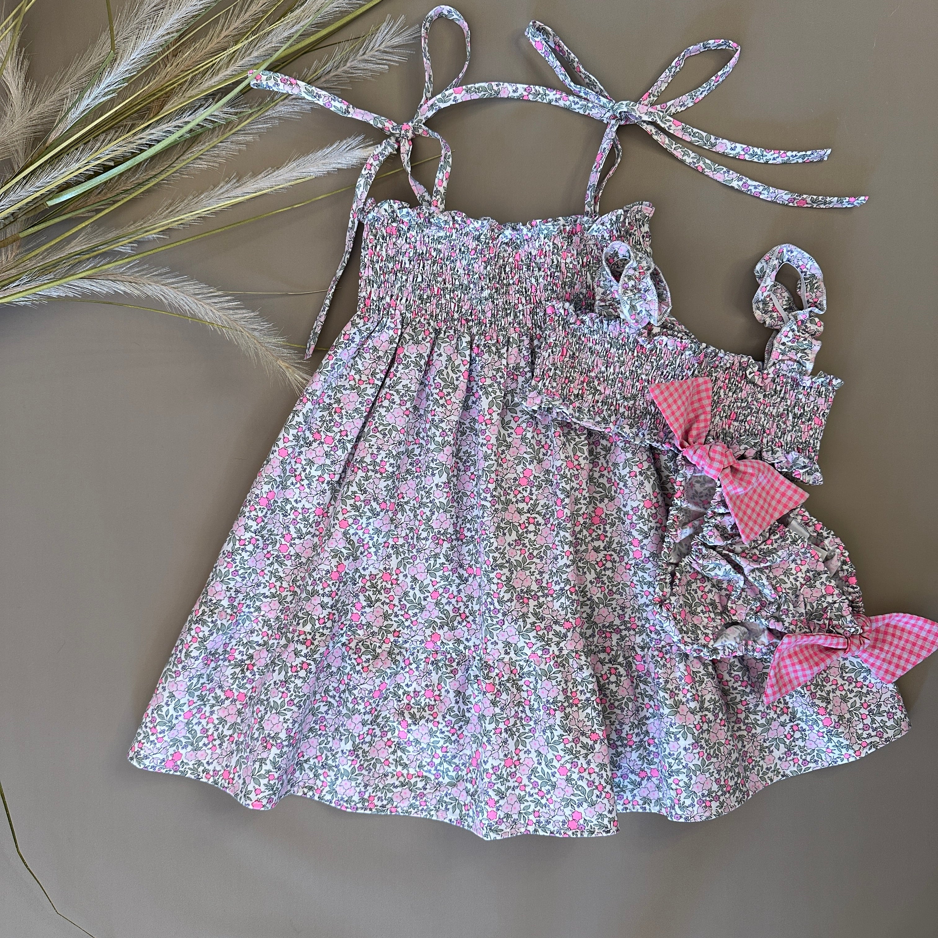 Abito con spalline regolabili e gonna ampia: elegante microfiorellino