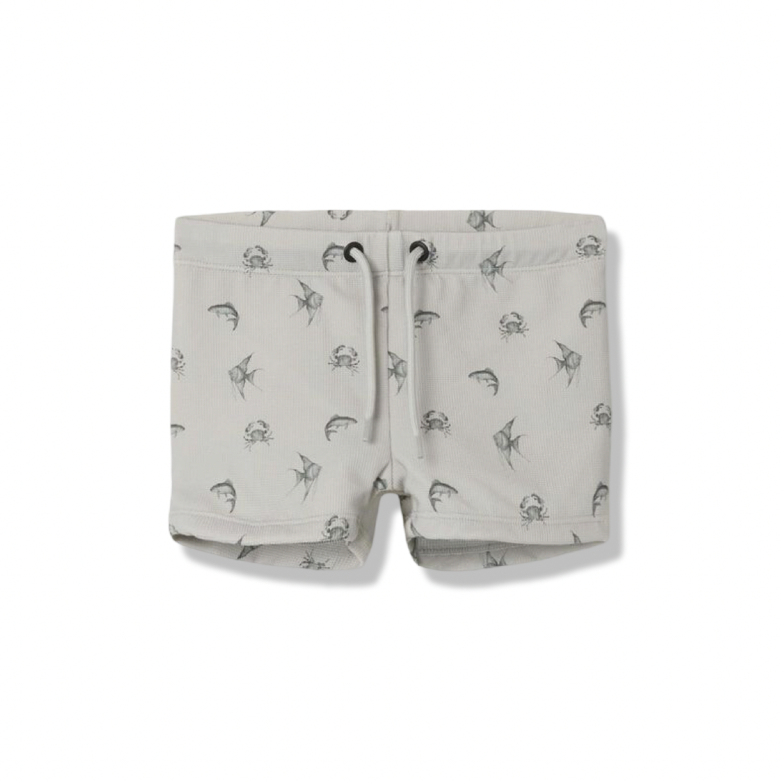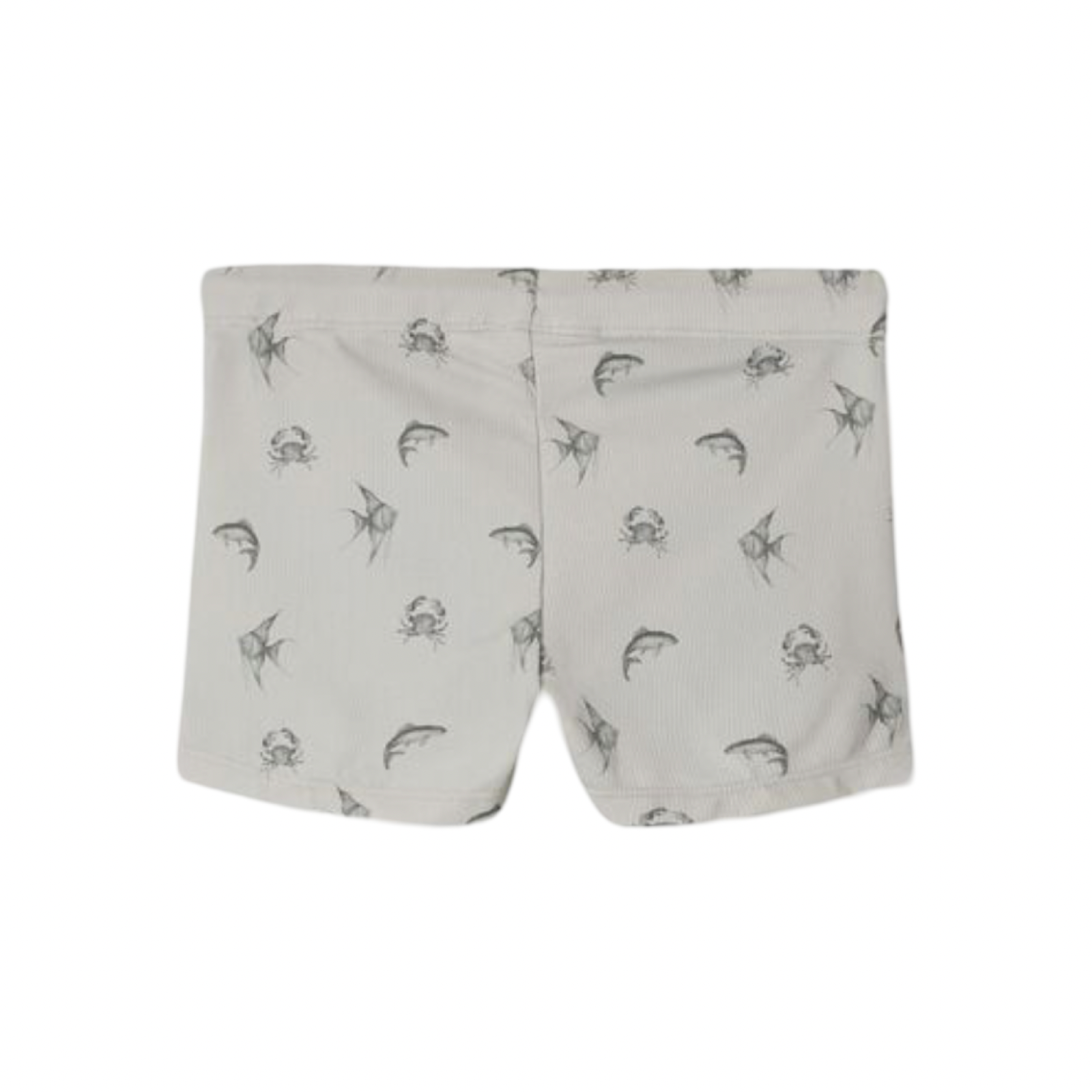 Un costume pensato per accompagnare ogni tuffo con stile e comfort. Questo costumino è realizzato in tessuto leggero e ad asciugatura rapida, con una vivace stampa di pesciolini che conquista al primo sguardo.