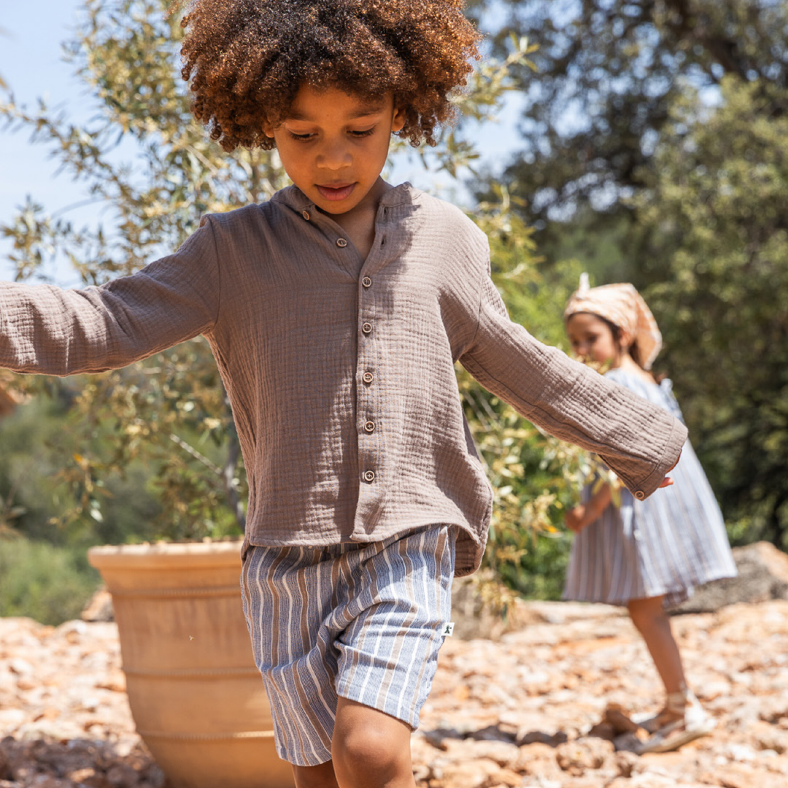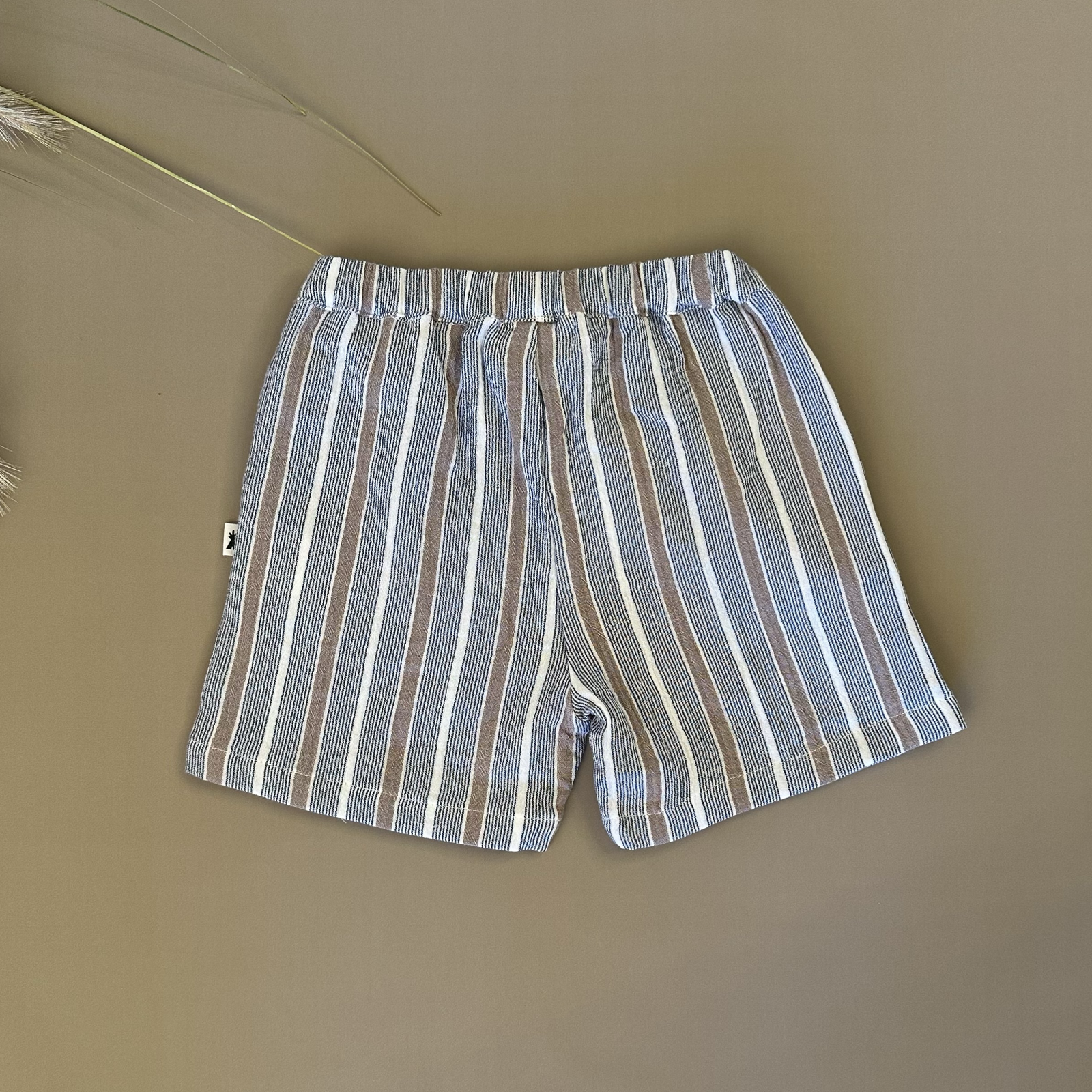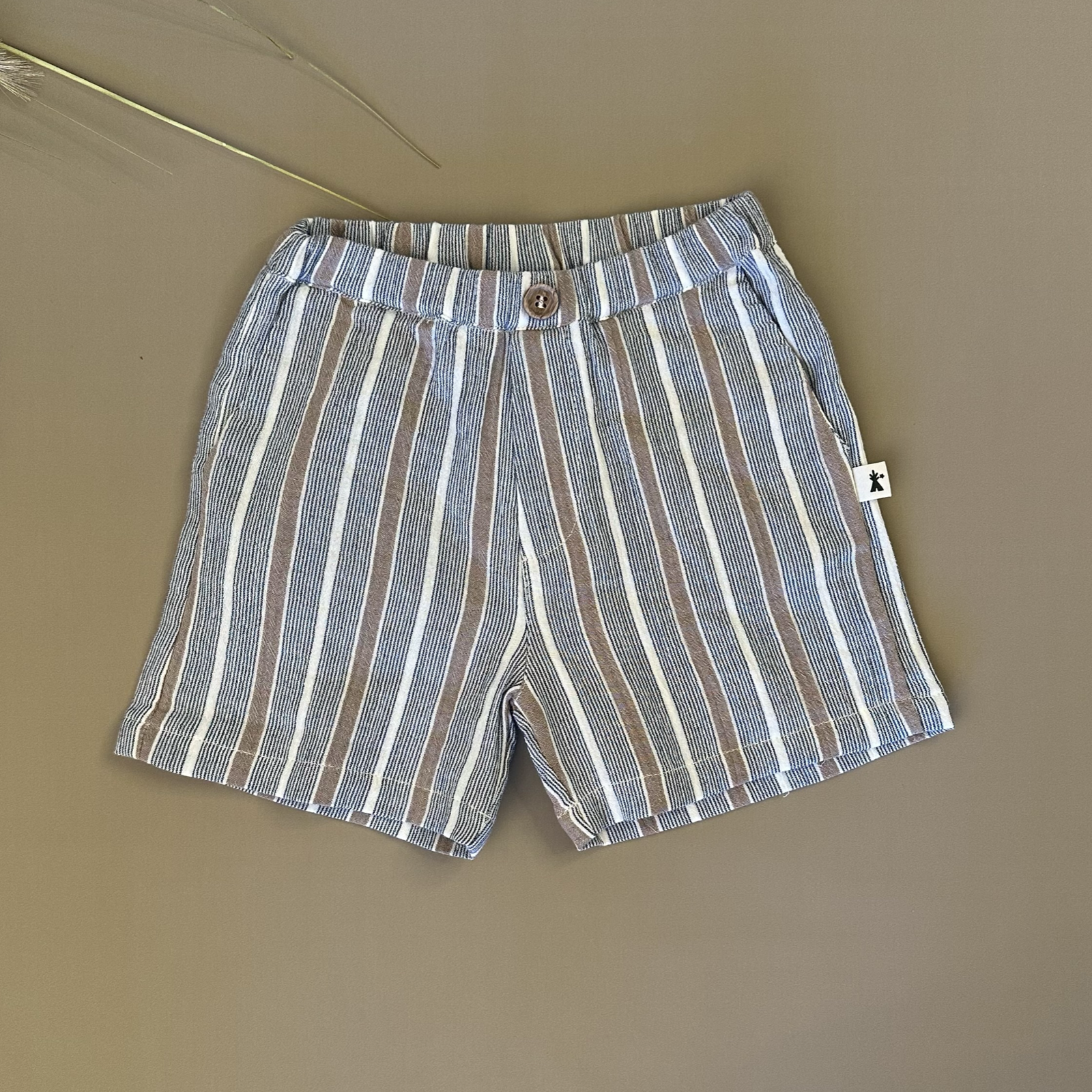 petit indi - Pantaloncini a righe fango-bianco e avio- freschezza e stile