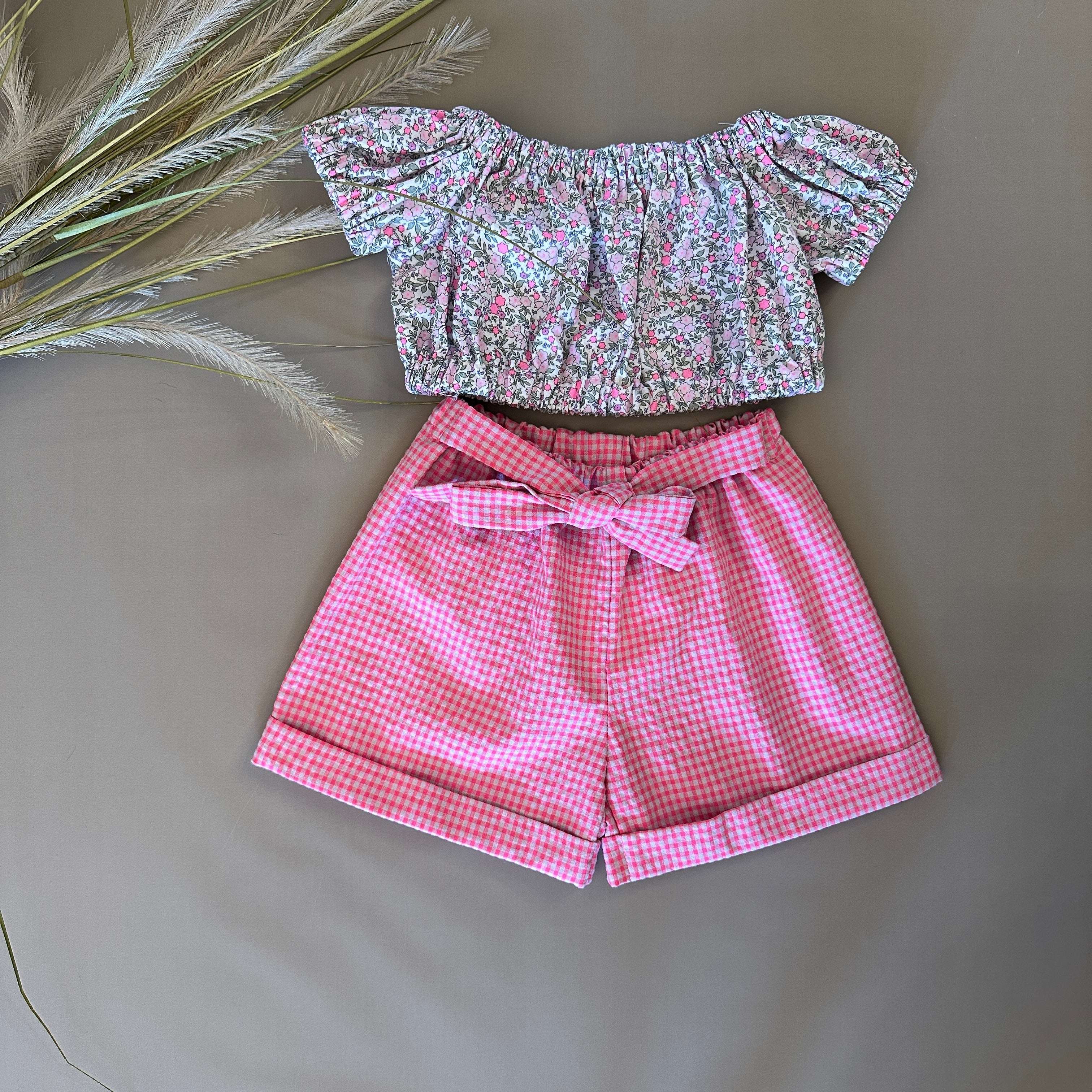 Dai un tocco di colore al look della tua bambina con questi pantaloncini a quadrettini fluo rosa, perfetti per ogni occasione estiva. Il design a vita alta e la vestibilità comoda garantiscono massimo comfort e libertà di movimento. Facili da abbinare con il top in cotone con microfiorellini o con qualsiasi altro capo del guardaroba, sono ideali per creare outfit freschi e dinamici.