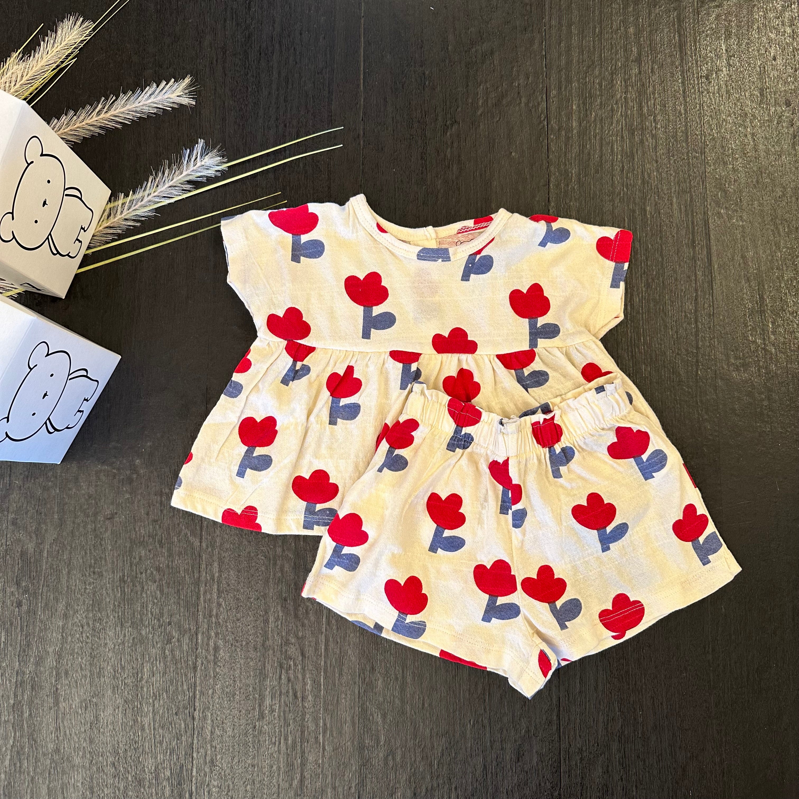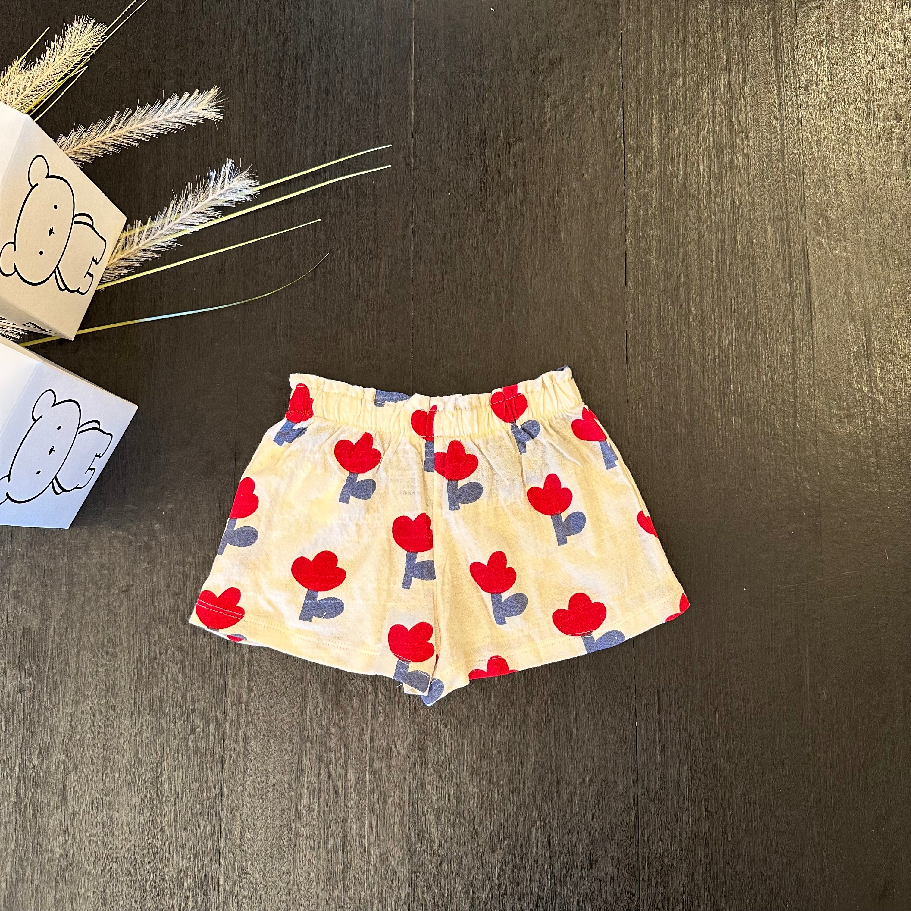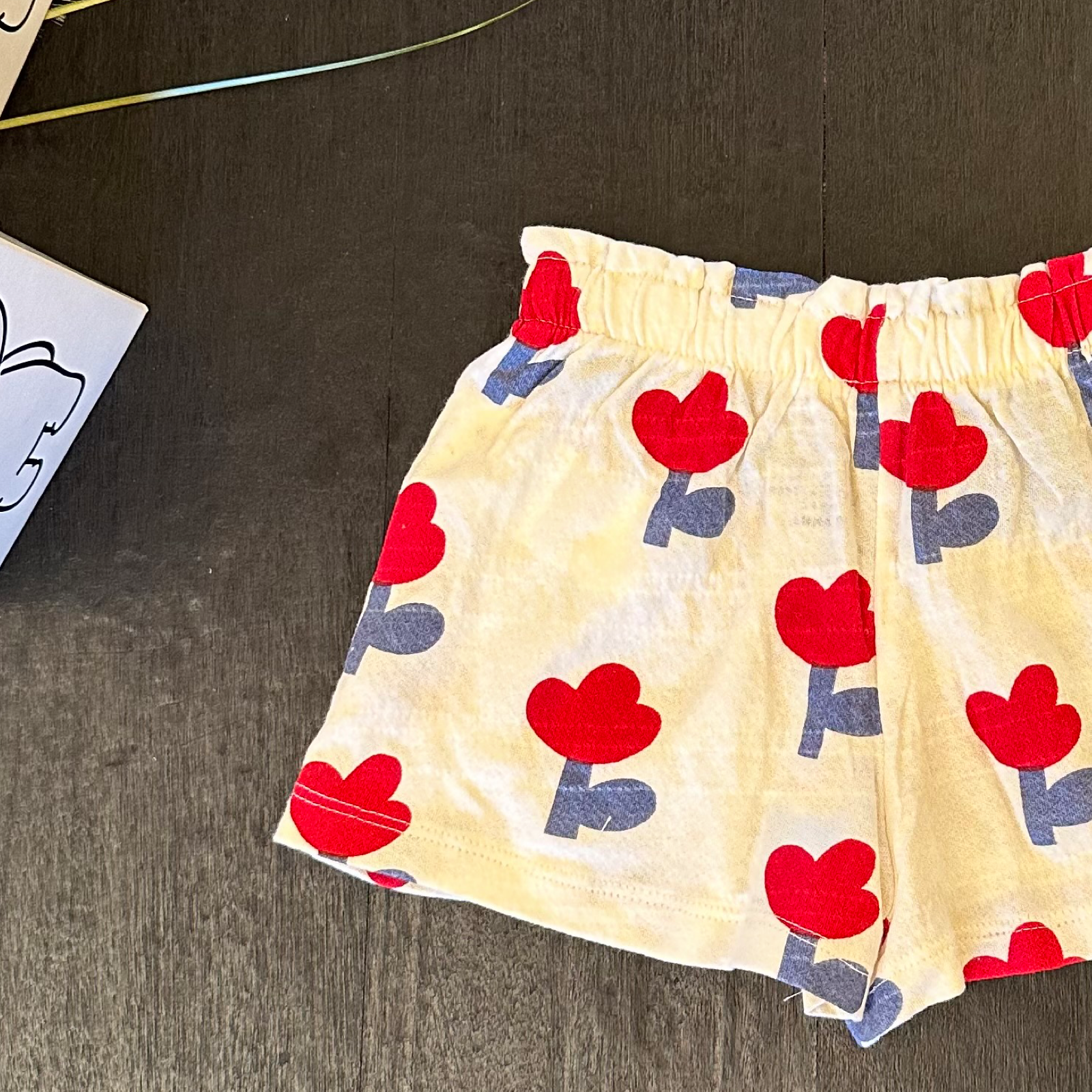 Pantaloncino in morbido cotone con una delicata fantasia di tulipani, perfetto per un look estivo e fresco. La vestibilità comoda e il design versatile lo rendono ideale per ogni occasione, combinando stile e comfort in un capo allegro e raffinato.