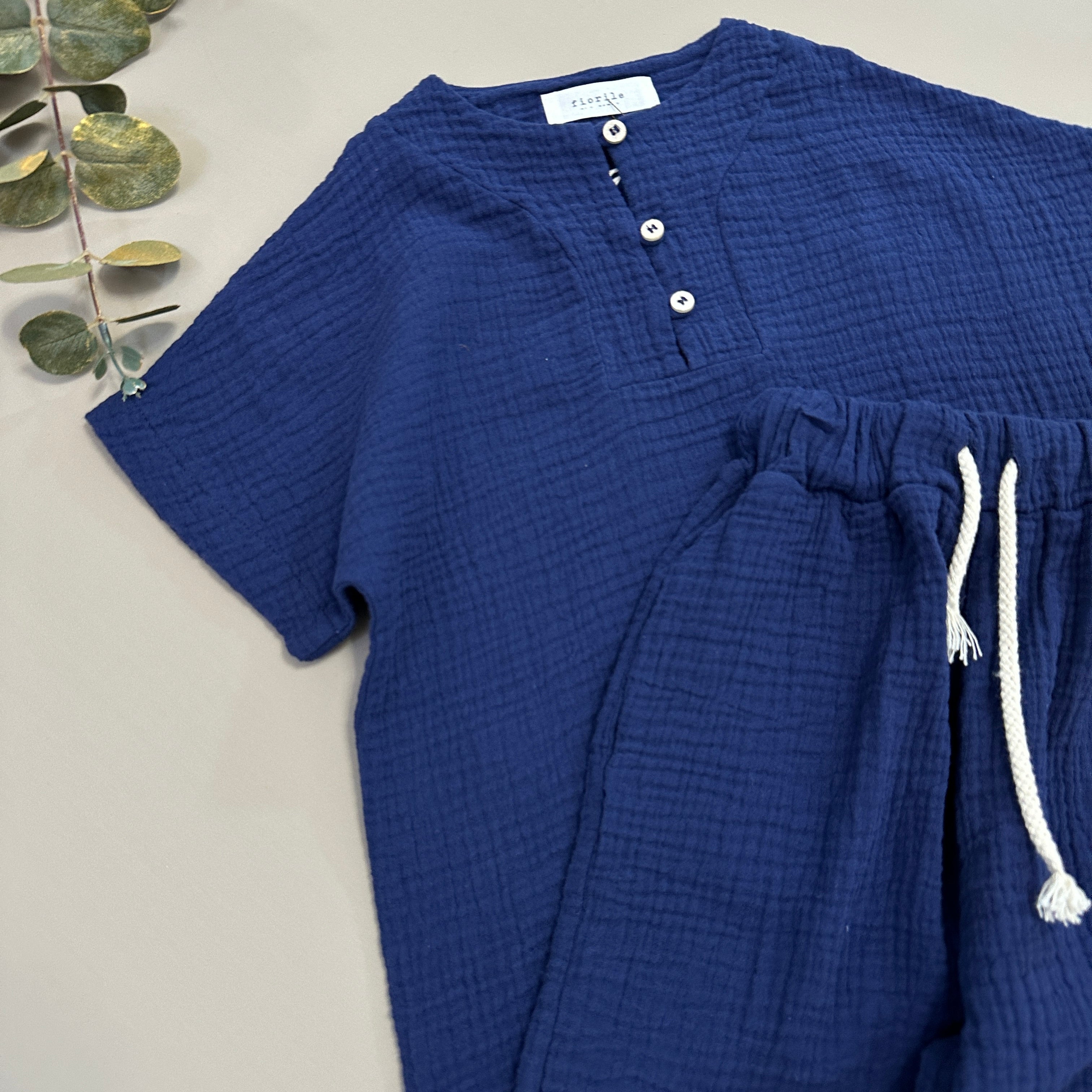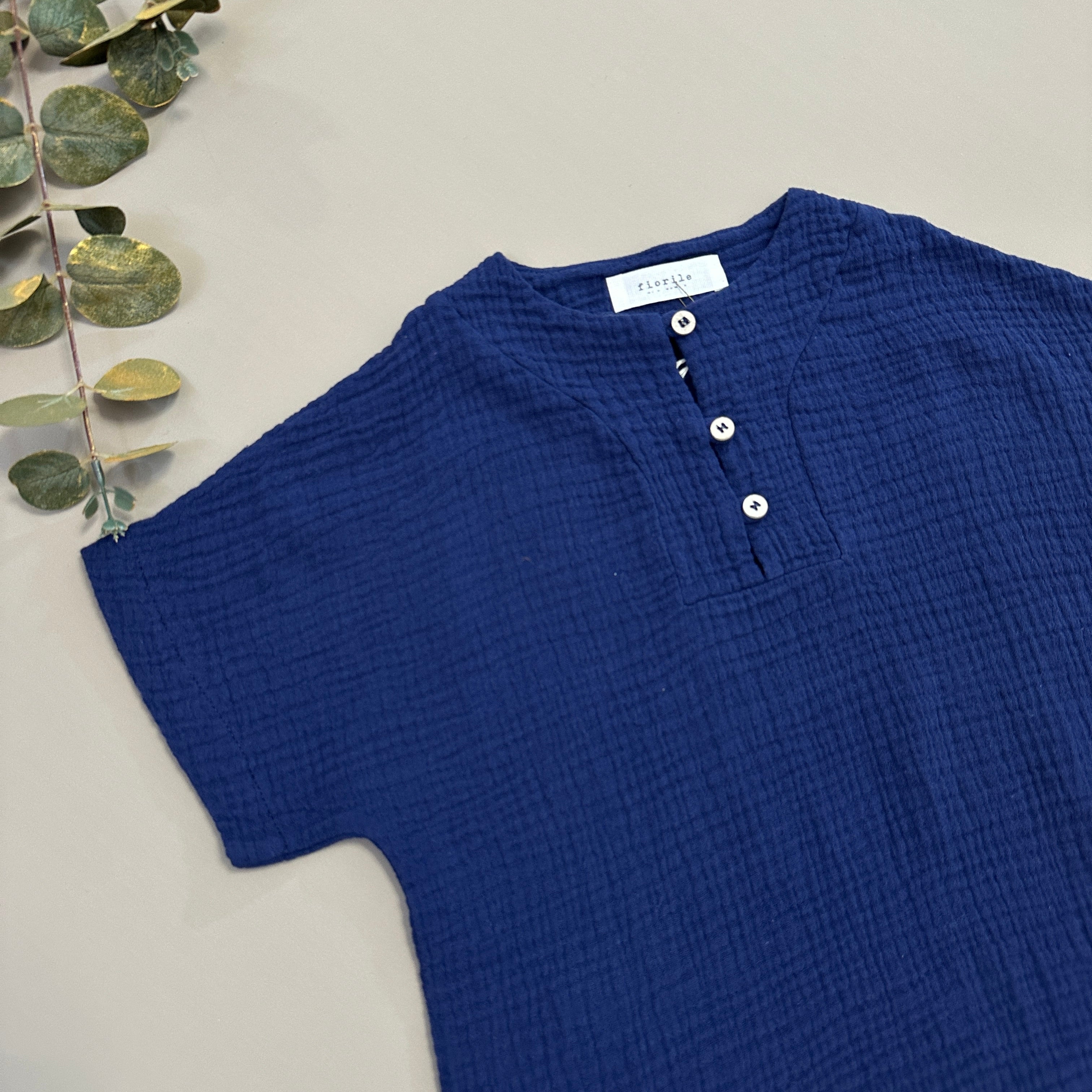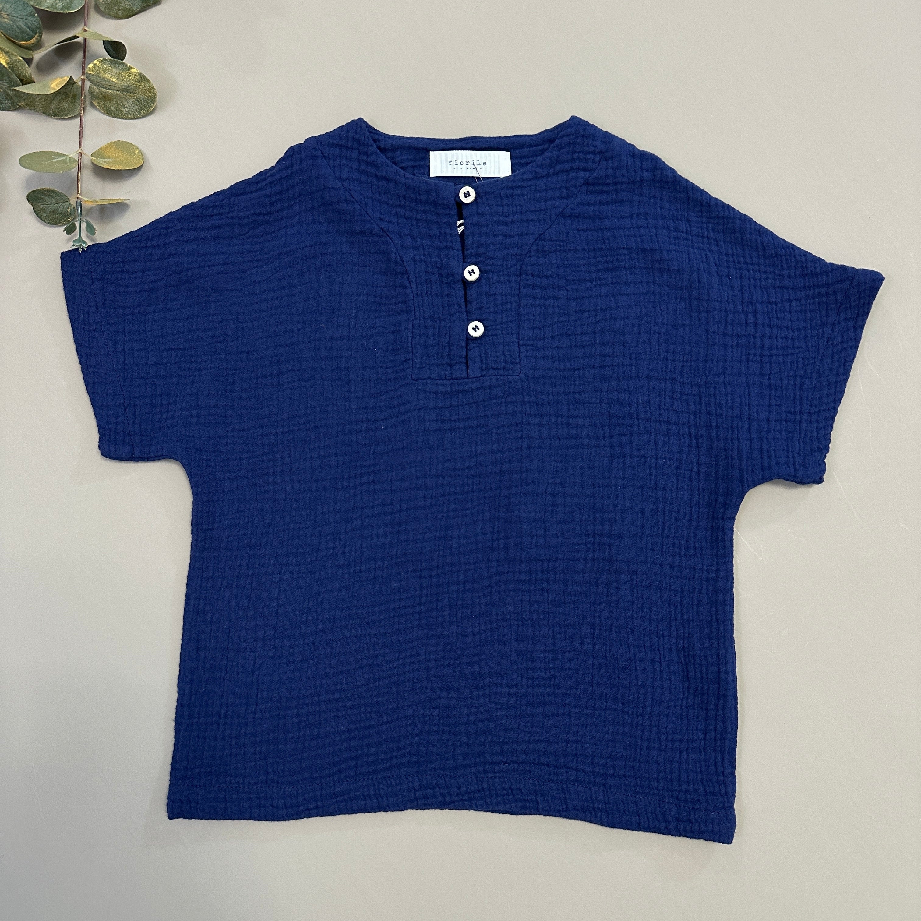 Un’eleganza senza sforzo per i più piccoli. Questa polo in mussola di cotone unisce comfort e stile in un capo leggero, traspirante e delicato sulla pelle. Il Patriot Blue, intenso e raffinato, dona un tocco di carattere perfetto per ogni occasione.