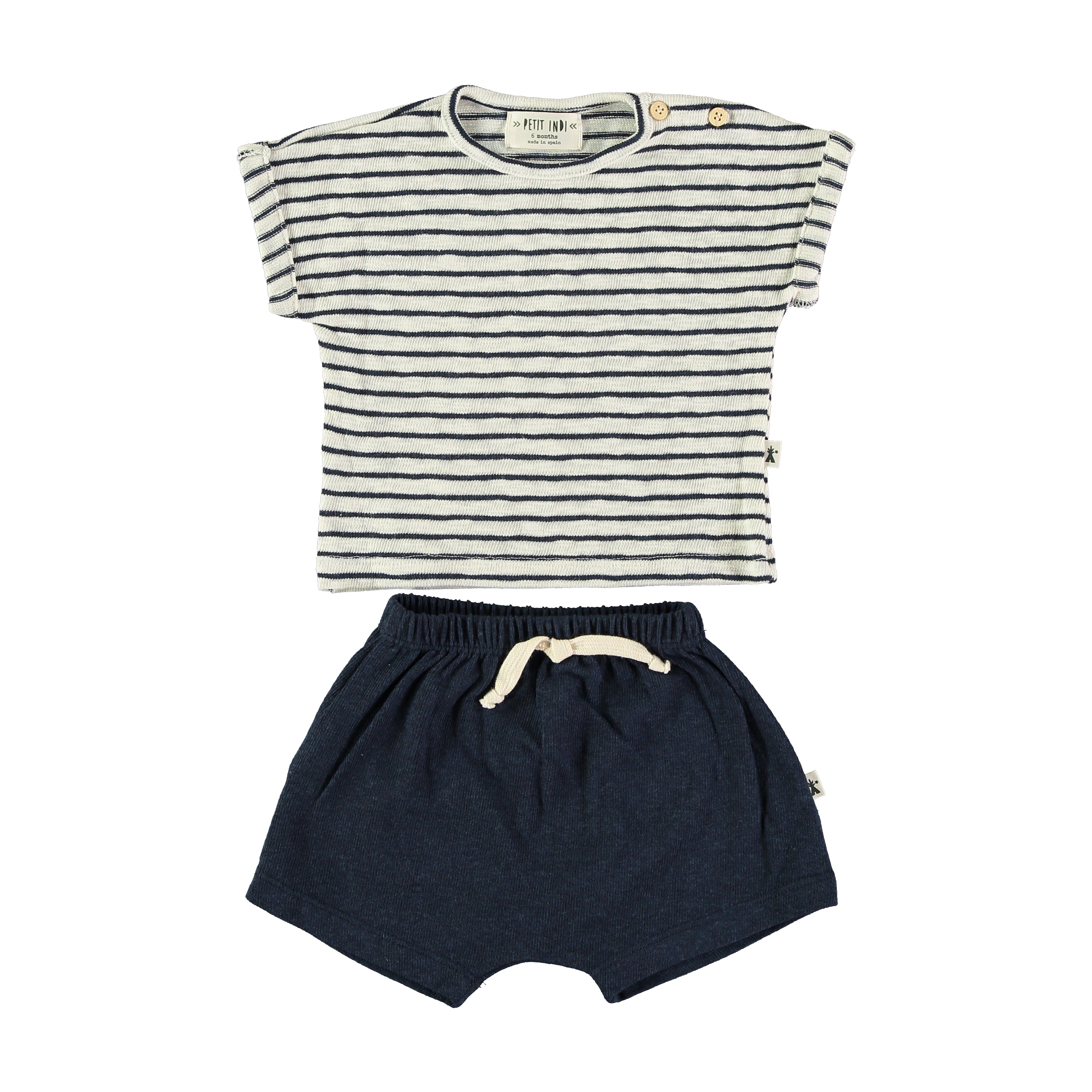 petit indi - Set in filo di cotone riga latte e blu navy