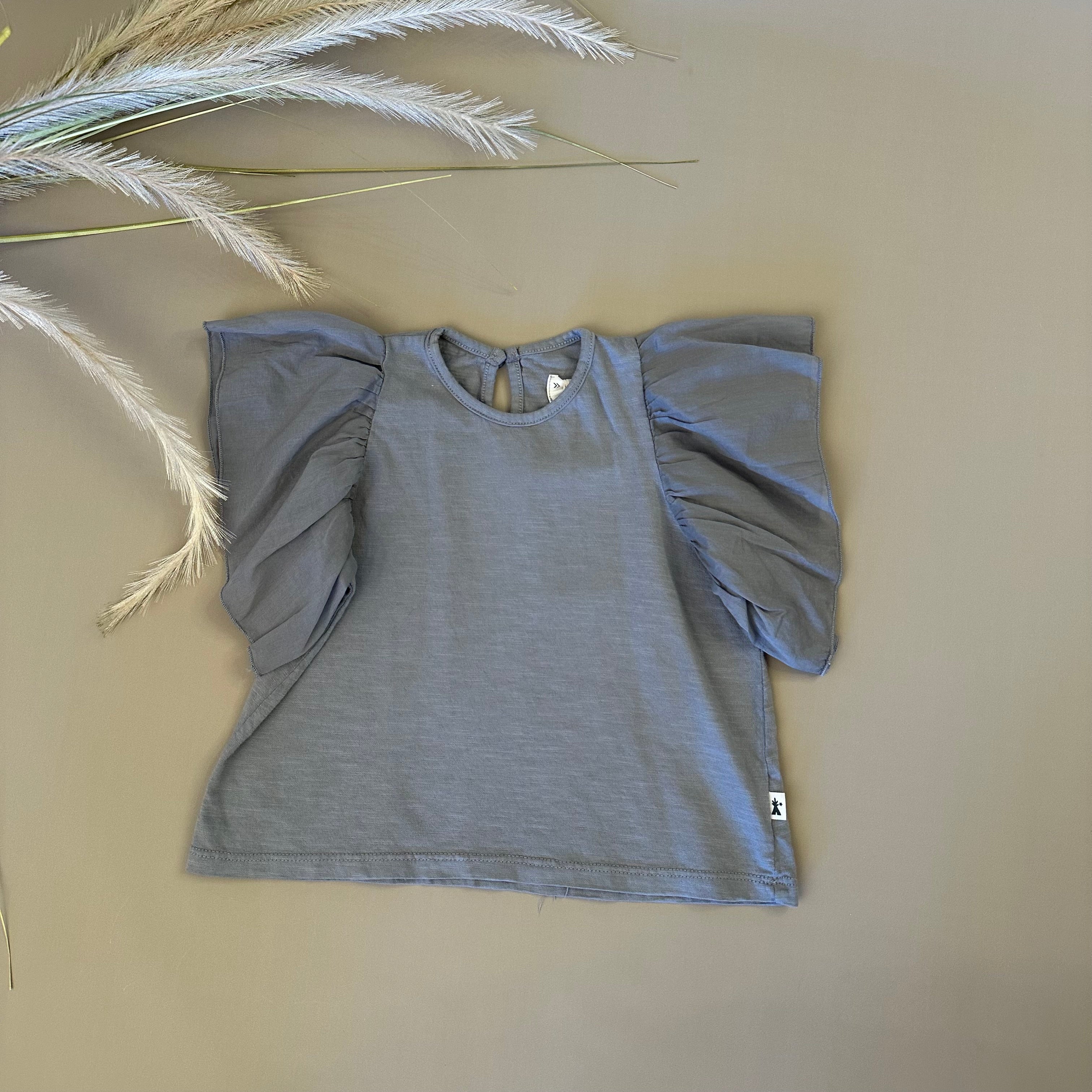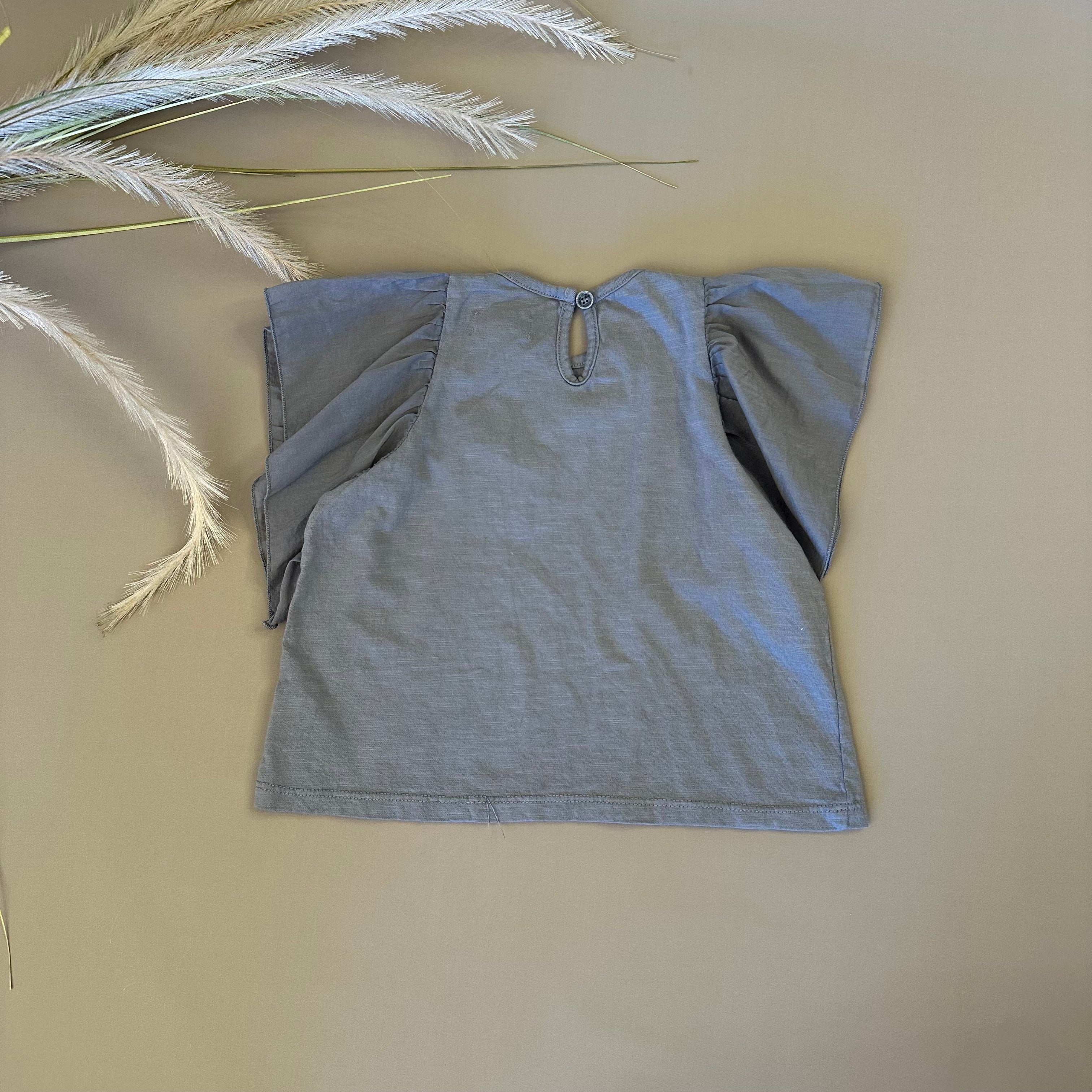 T-shirt grigio in cotone organico con ruches sulle maniche