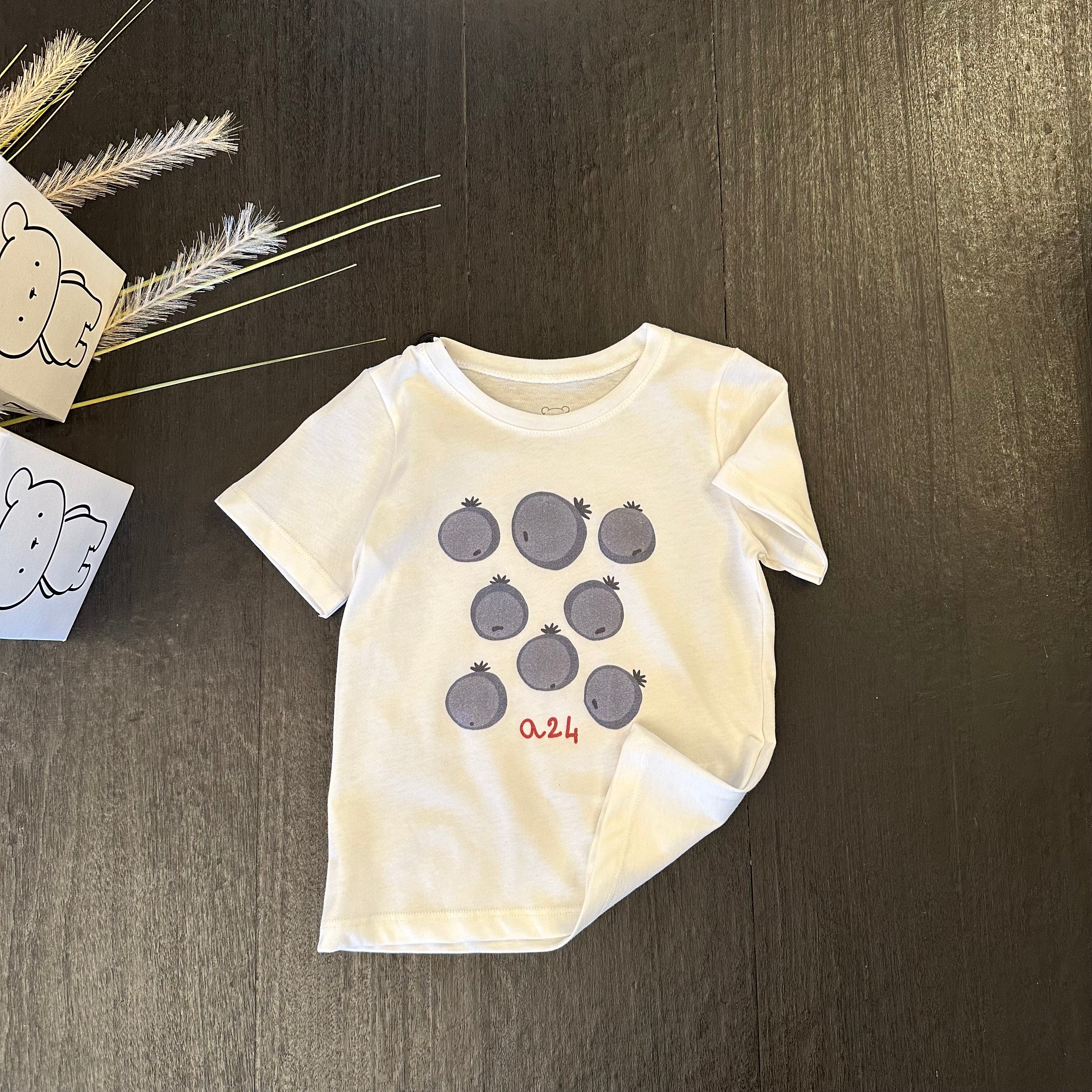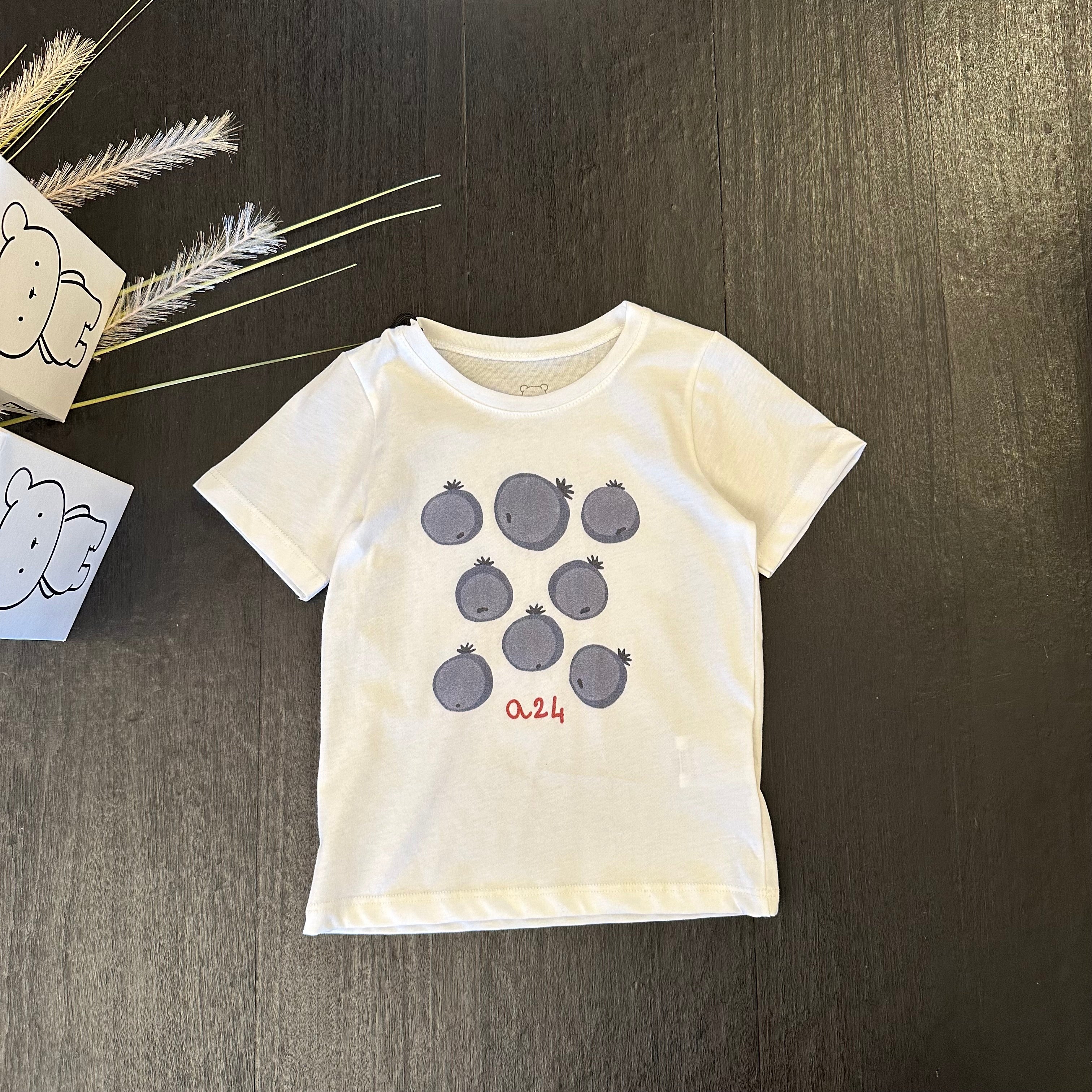 T-shirt in jersey di cotone con mirtilli – Freschezza e dolcezza in un capo unico