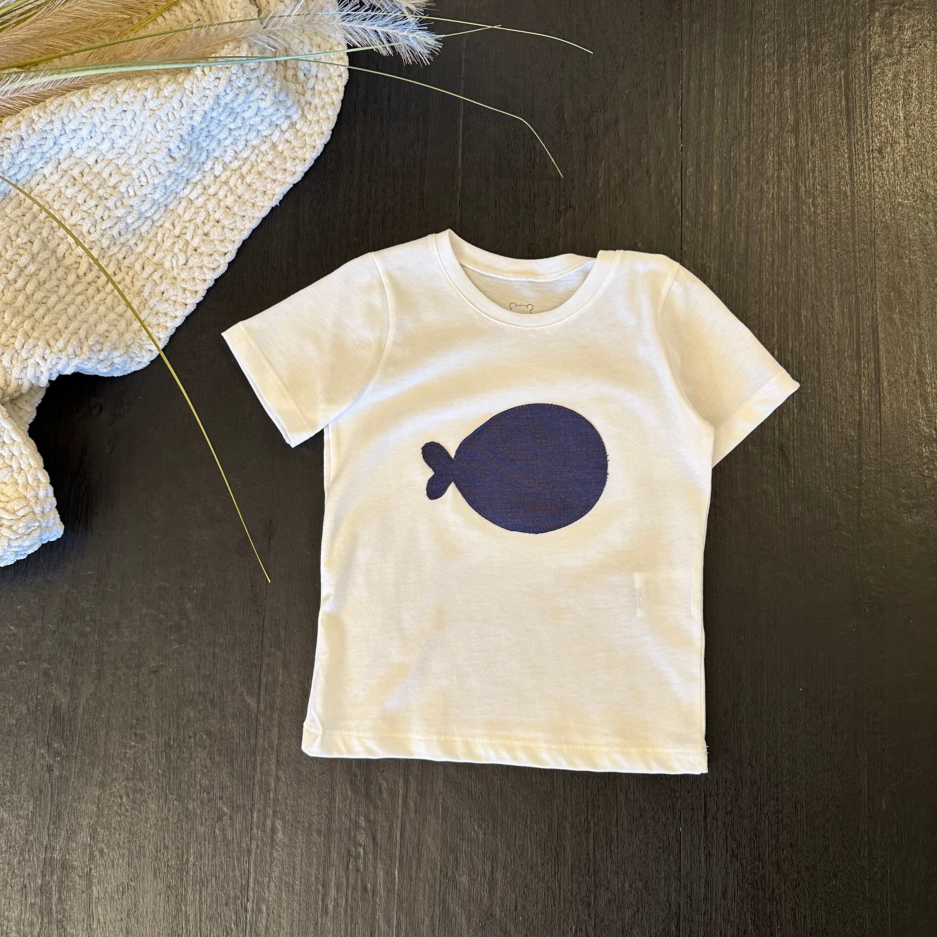 aventiquattrore - T-shirt in jersey di cotone con pesciolino in jeans