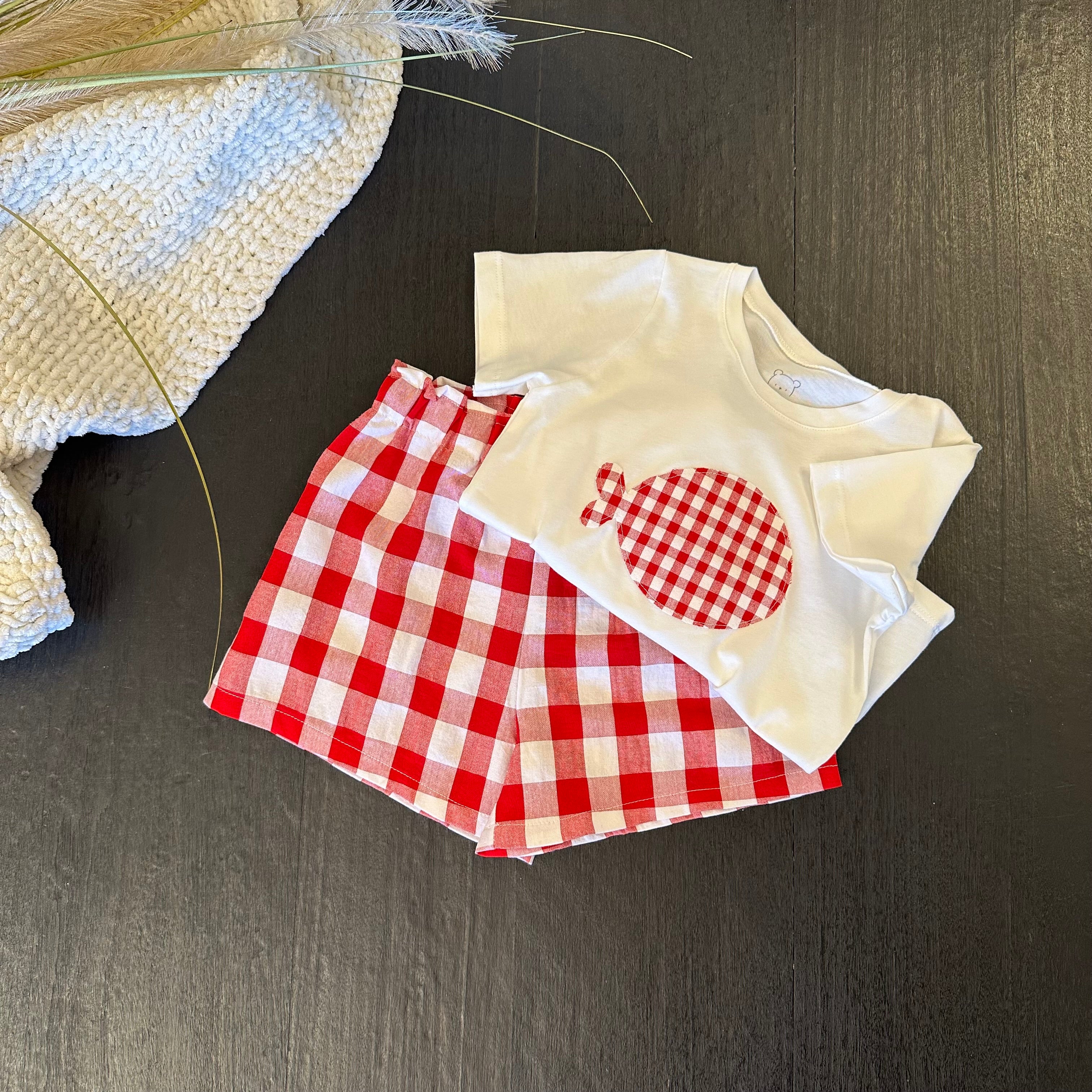 aventiquattrore - T-shirt in jersey di cotone con pesciolino vichy melograno