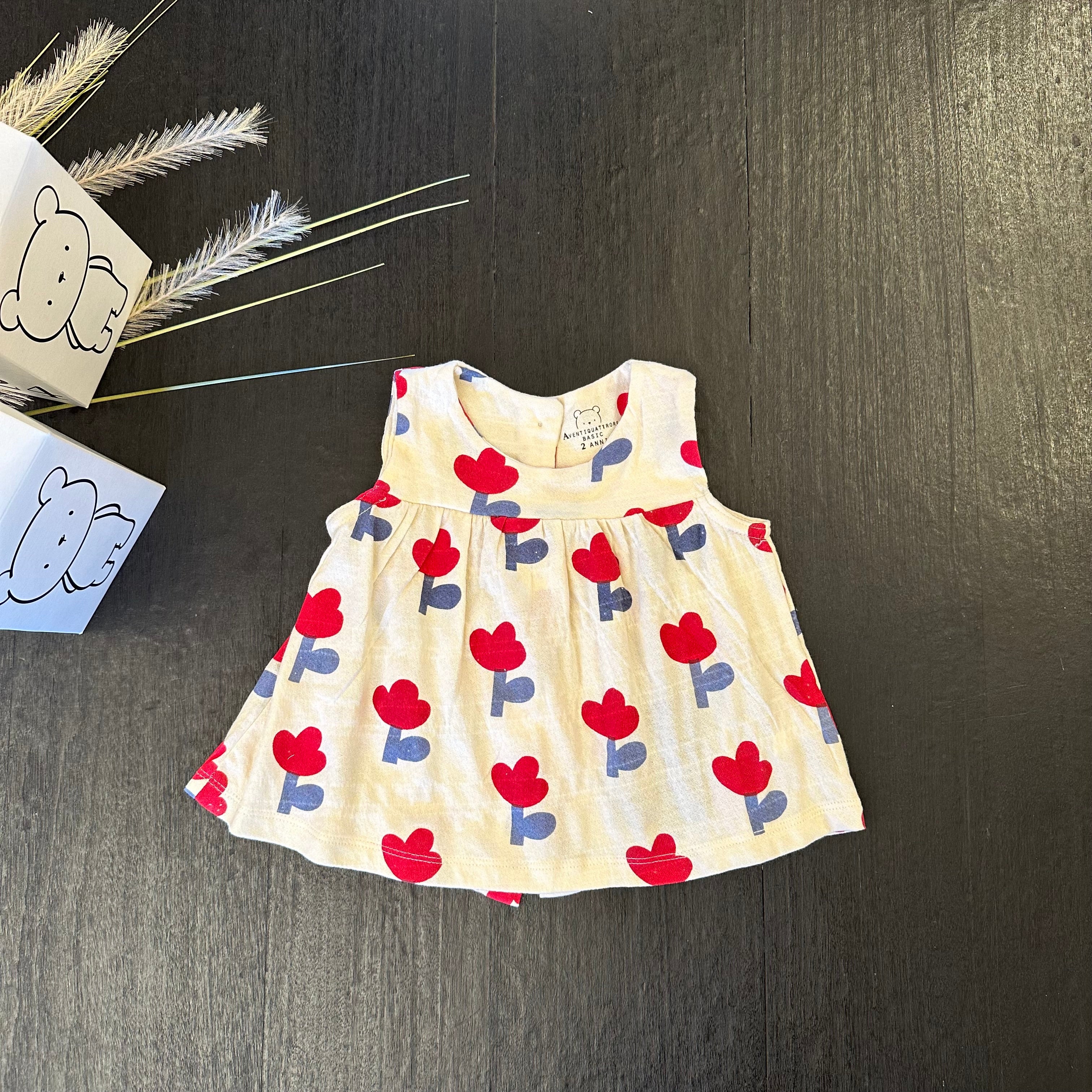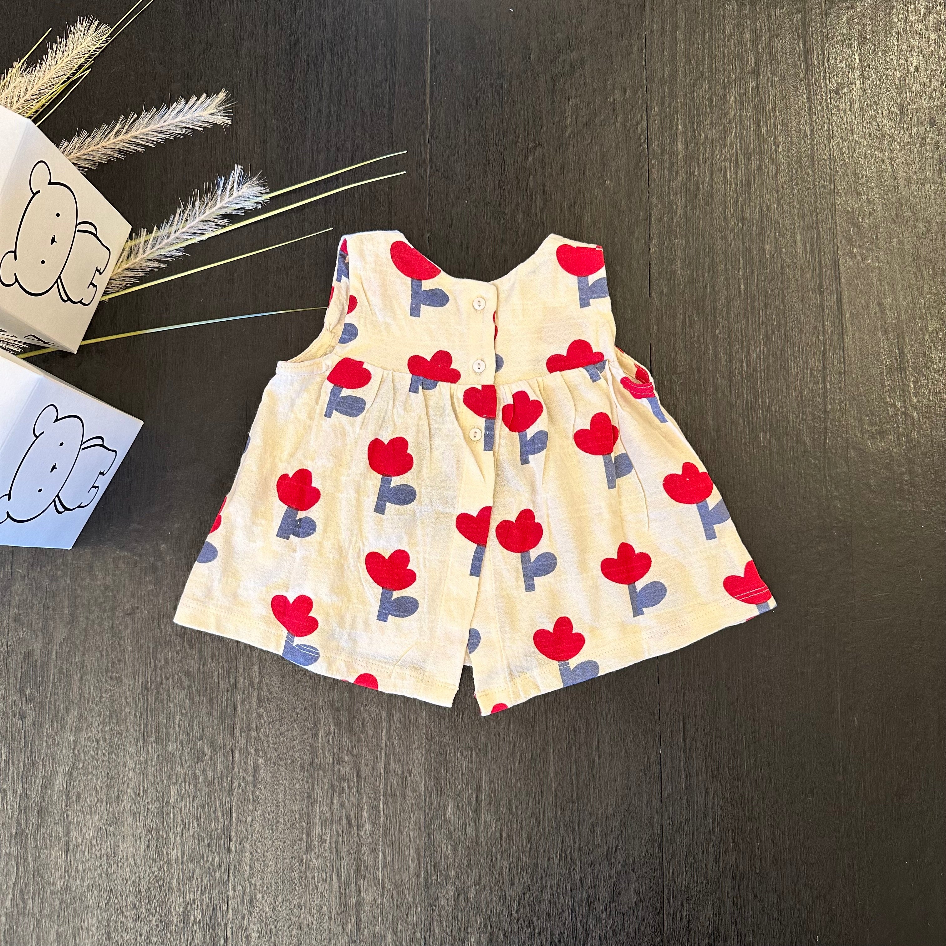 Top in morbido jersey di cotone, arricchito da una delicata stampa di tulipani. Con spalline larghe e un’apertura sul retro, questo capo unisce comfort e femminilità , perfetto per un look fresco e romantico in ogni occasione.