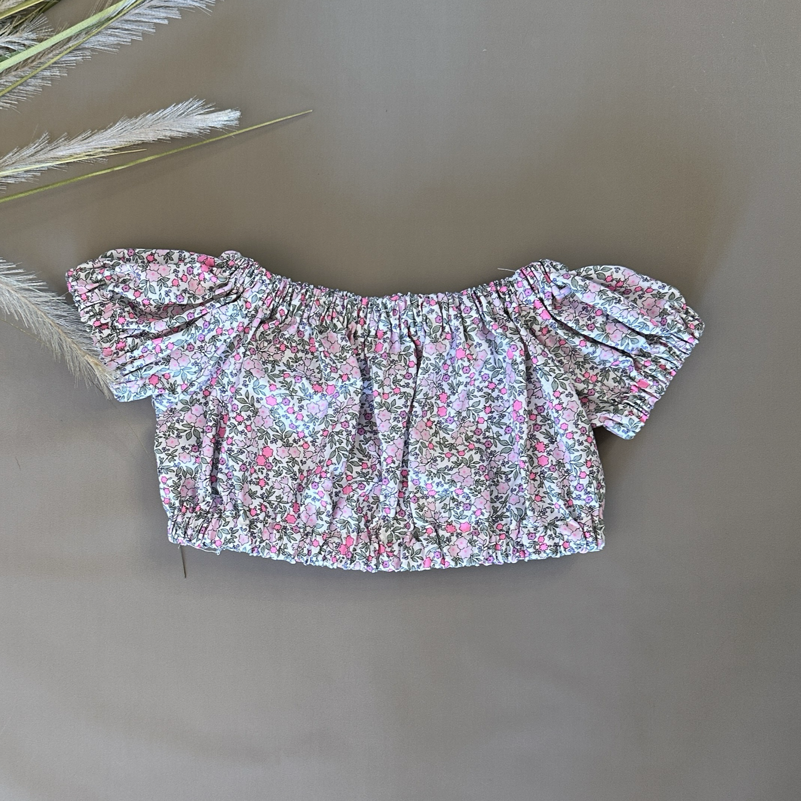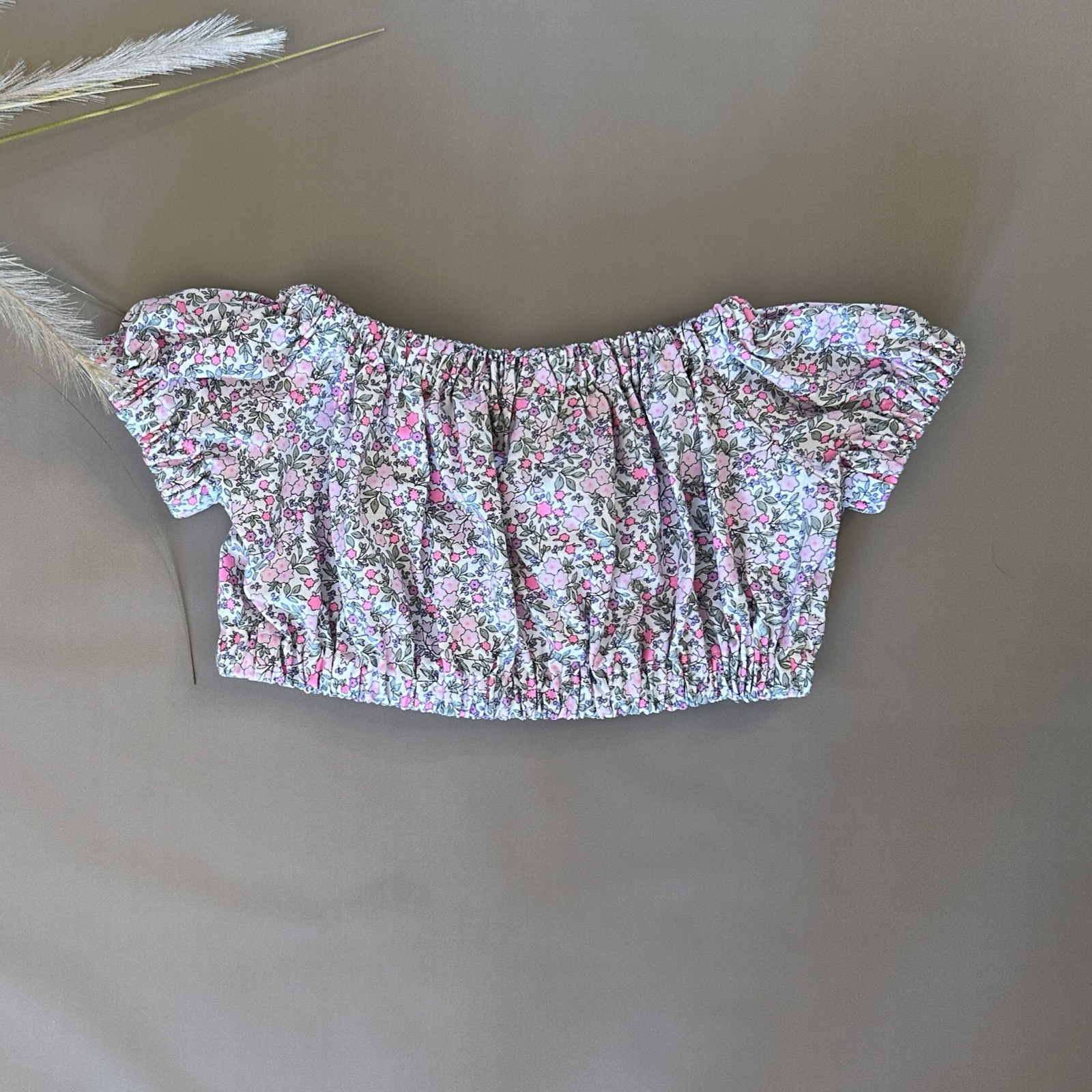 Top in cotone con microfiorellini ed elestico sulle spalle: freschezza e comfort