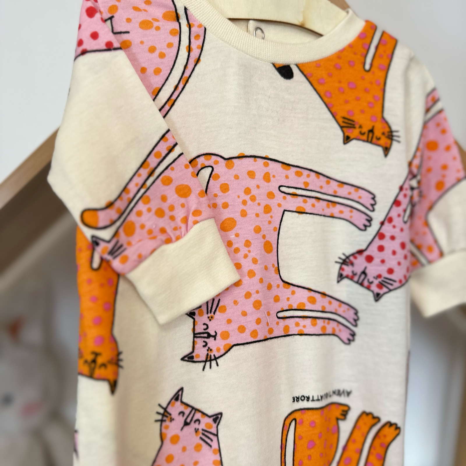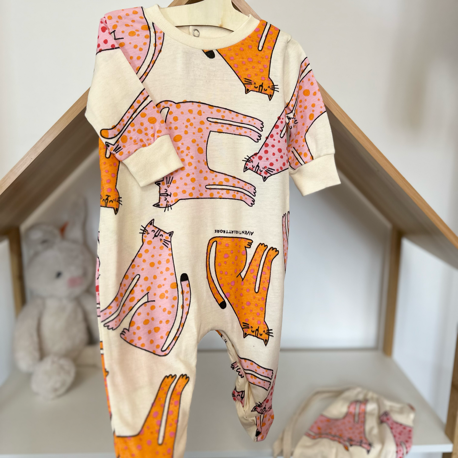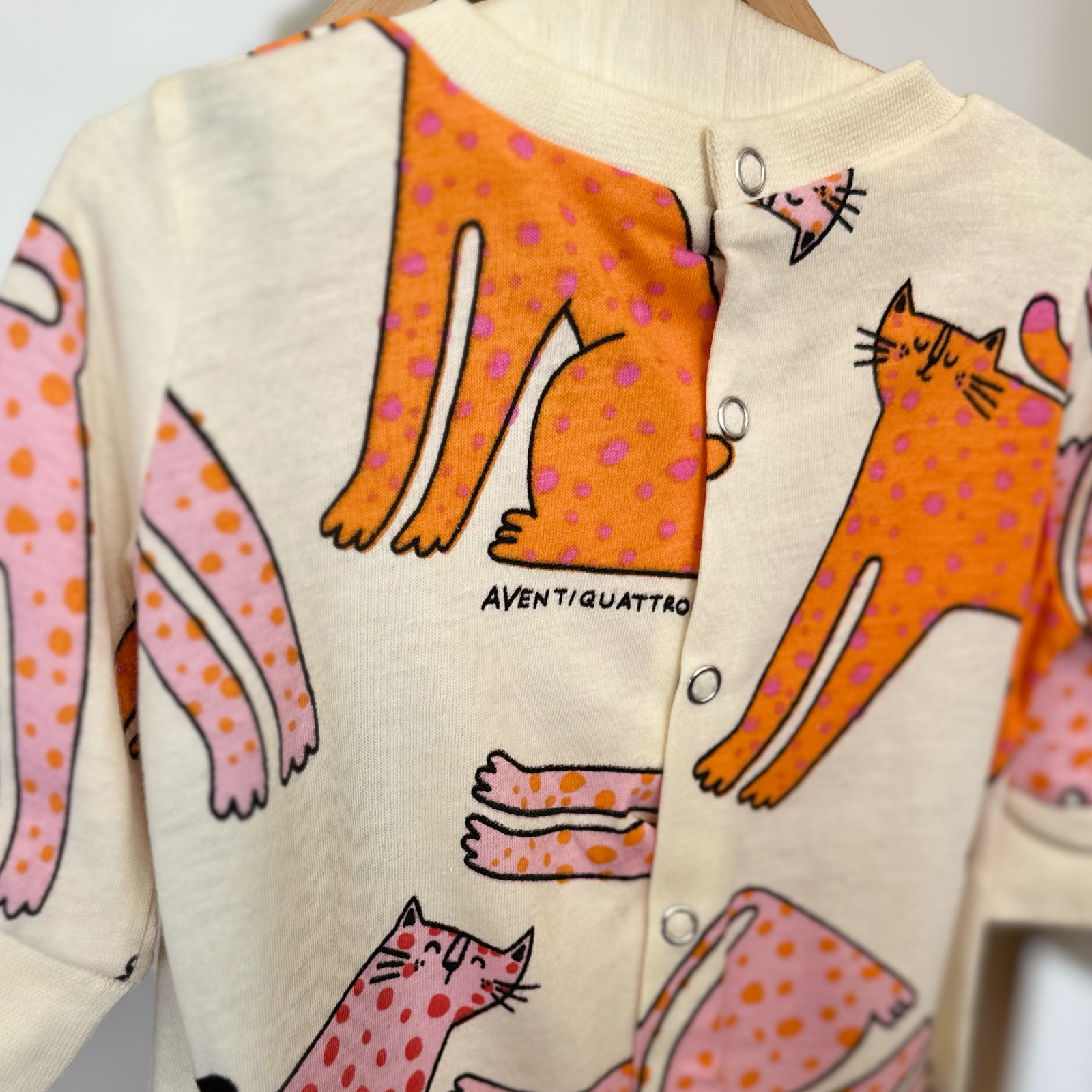 aventiquattrore - Tutina con piedini in cotone - stampa esclusiva gattini