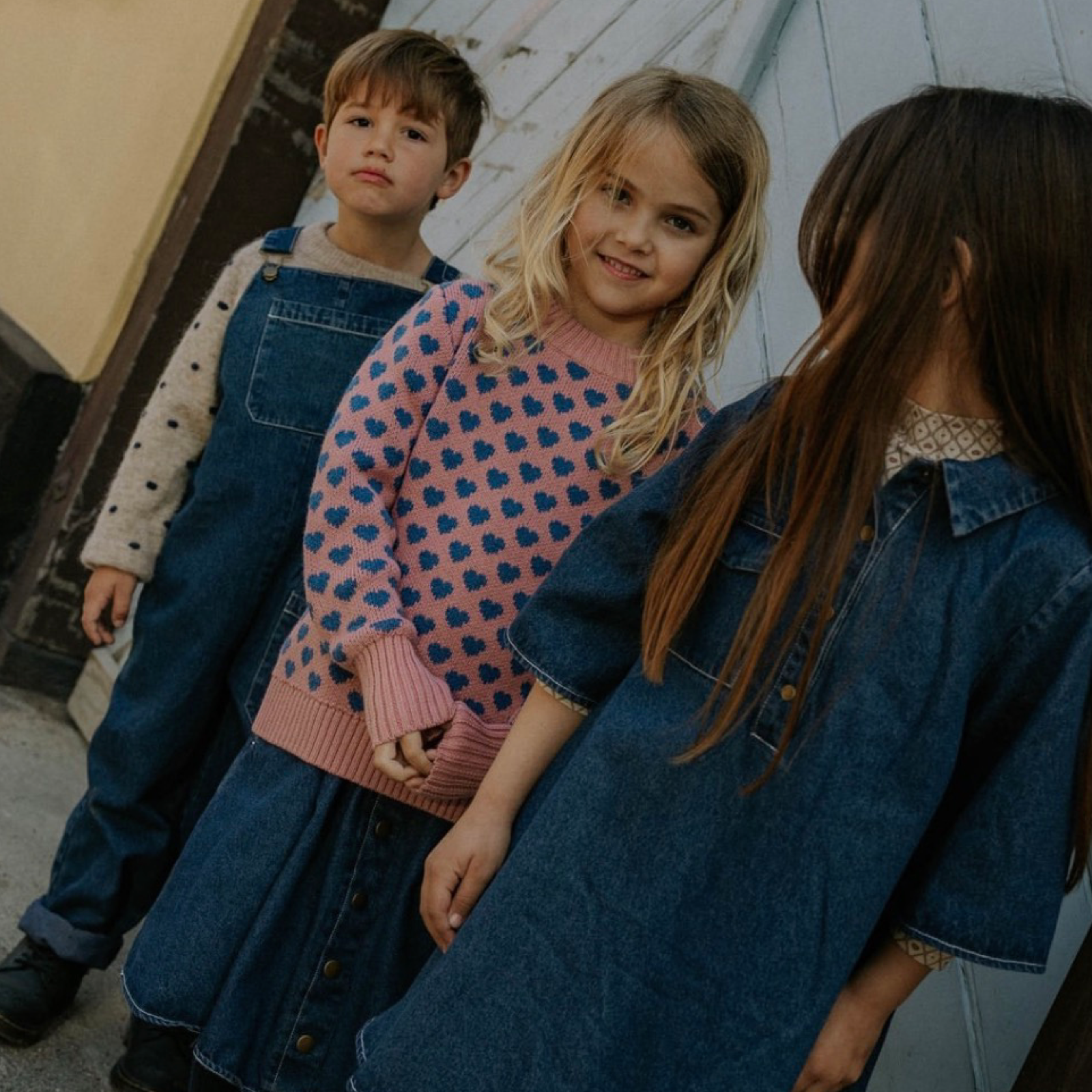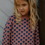 Fliink - Maglione in misto lana e cashmere rosa con cuori blu – morbidezza unica