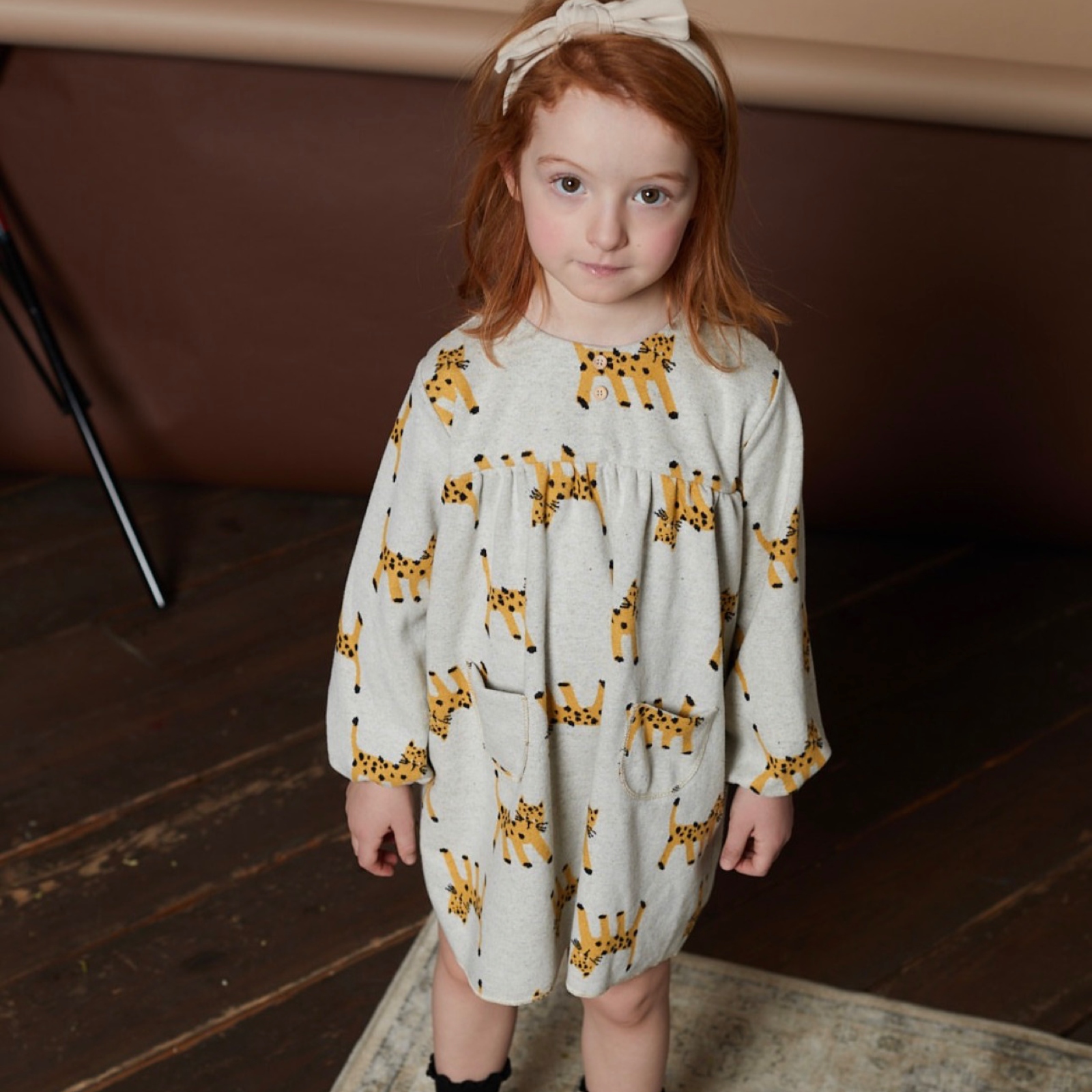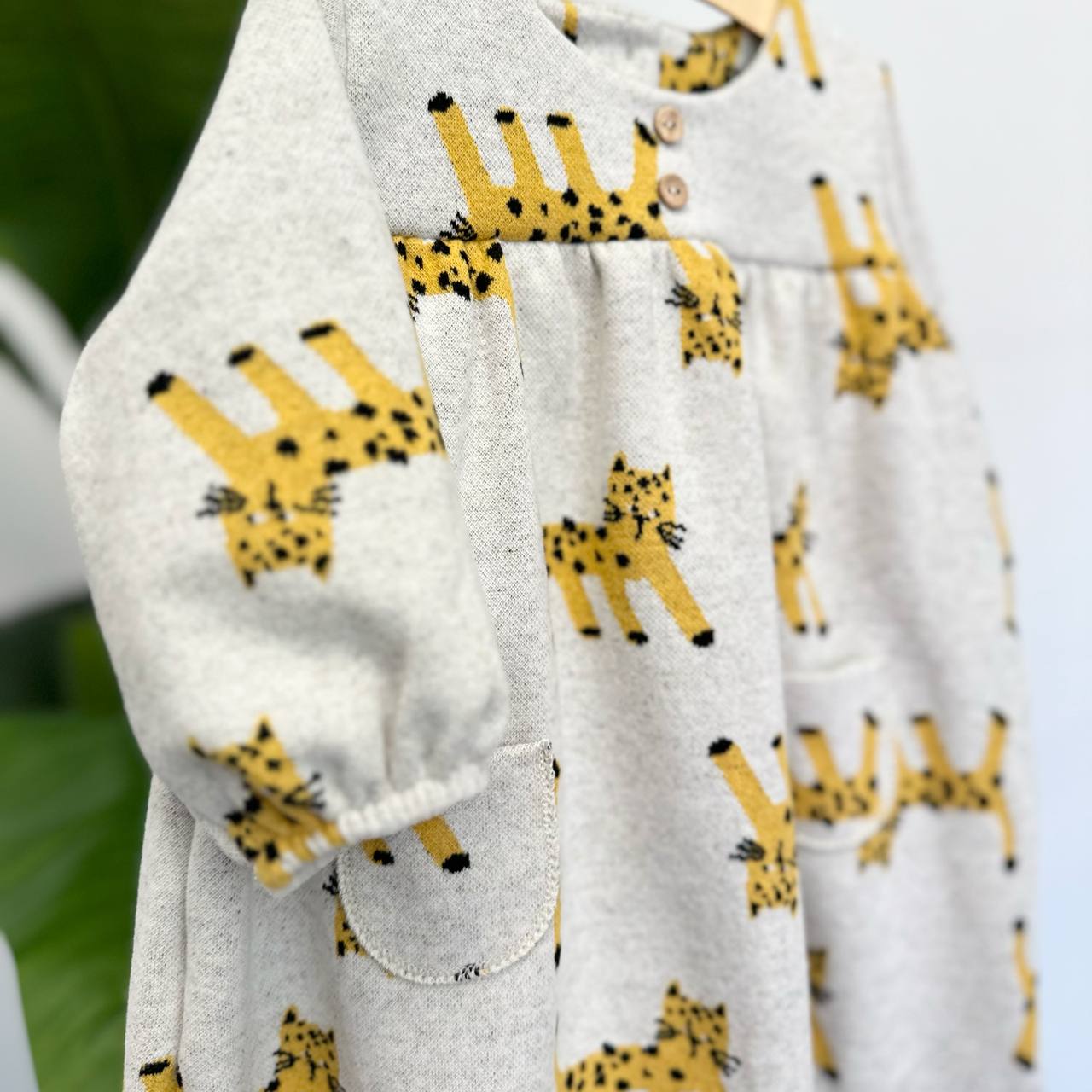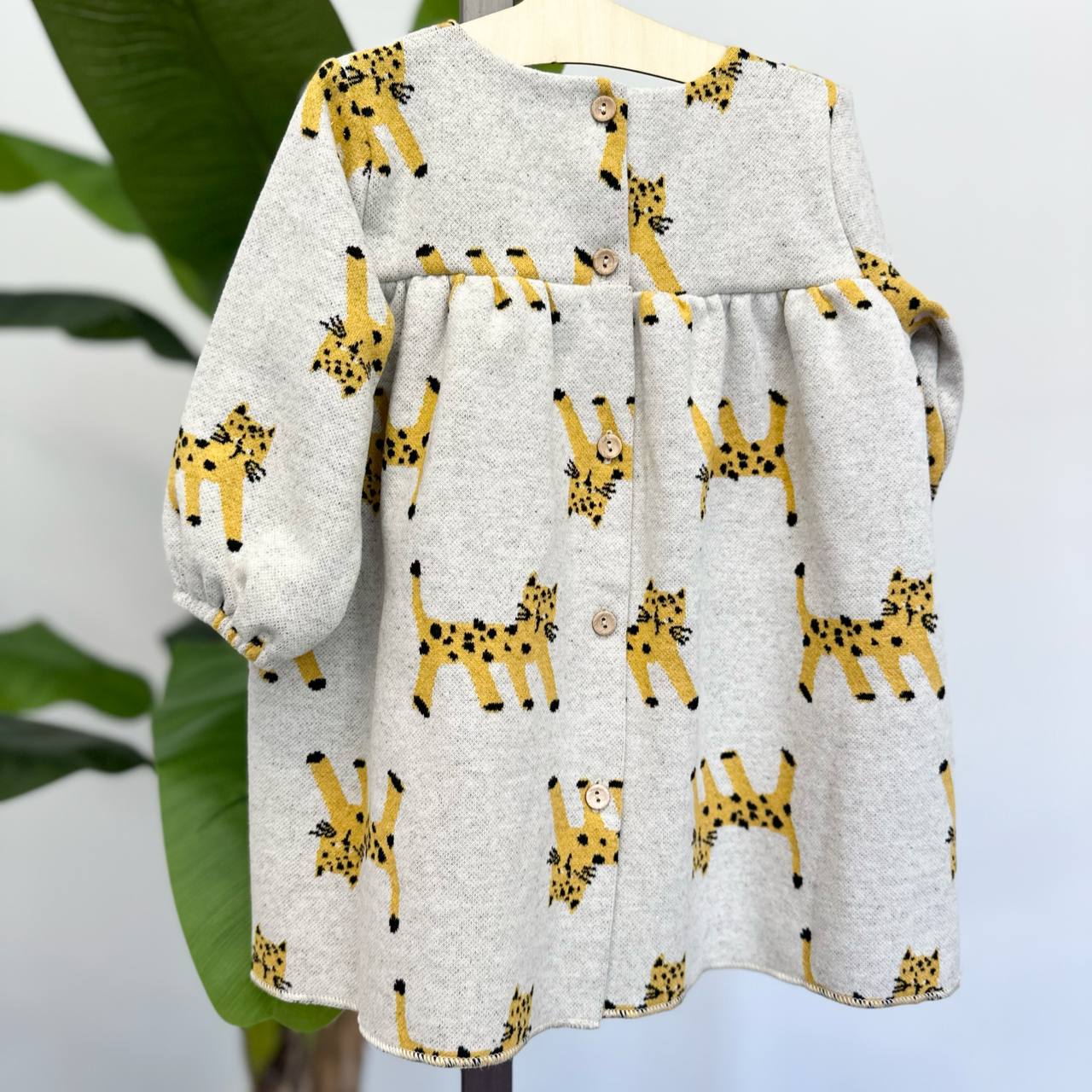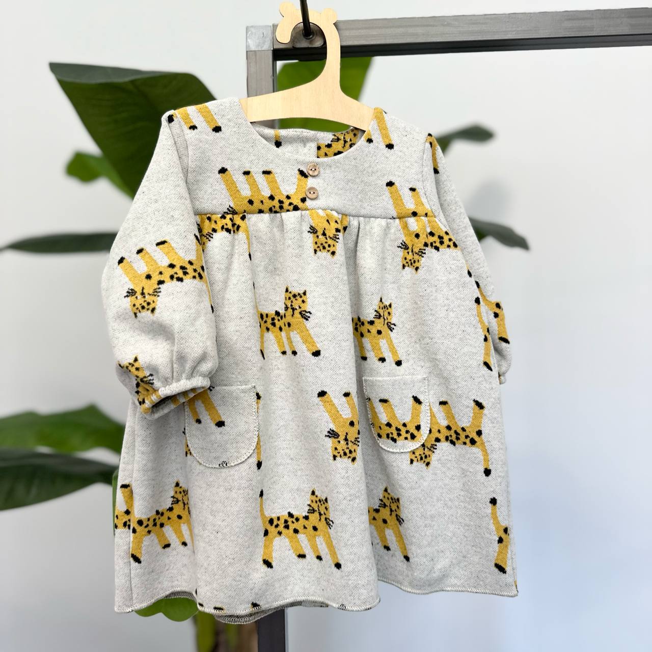 Regala alla tua bambina un tocco di stile e comfort con il nostro abito in caldo cotone. Questo delizioso abito grigio chiaro, decorato con simpatiche linci, è perfetto per ogni occasione. Il modello ampio e comodo garantisce libertà di movimento, mentre le pratiche tasche aggiungono un dettaglio funzionale che piacerà a grandi e piccine. Ideale per le giornate fresche, è l'alleato perfetto per avventure quotidiane e momenti di gioco. Scegli la qualità e il design pensato per il benessere della tua bambina.