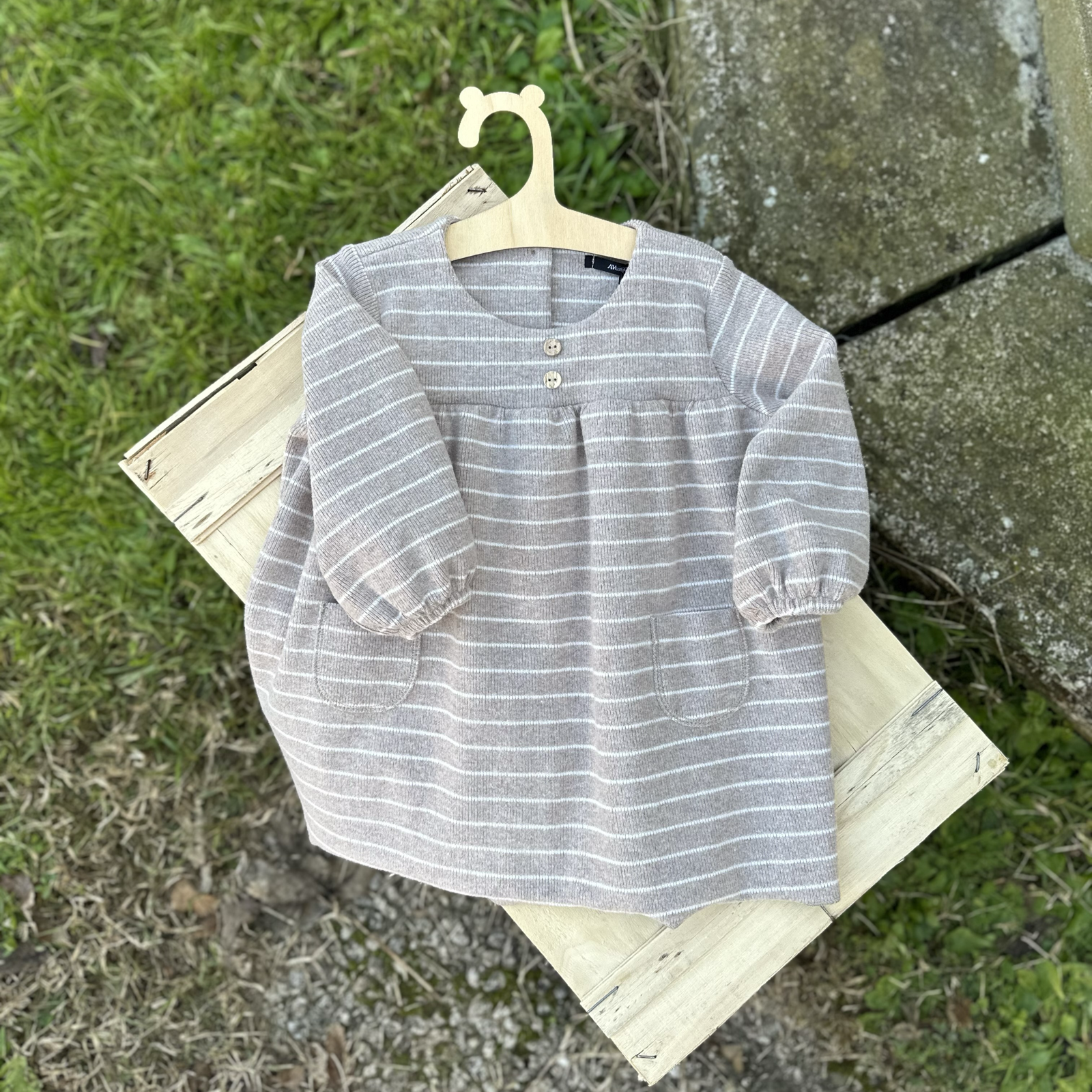 L'Abito in costina rigata beige è realizzato in morbido e caldo cotone, perfetto per le giornate più fresche. Con il suo design elegante e confortevole, questo abito unisce stile e praticità, diventando un capo essenziale nel guardaroba dei più piccoli. Ideale per ogni occasione, garantisce comfort e libertà di movimento.
