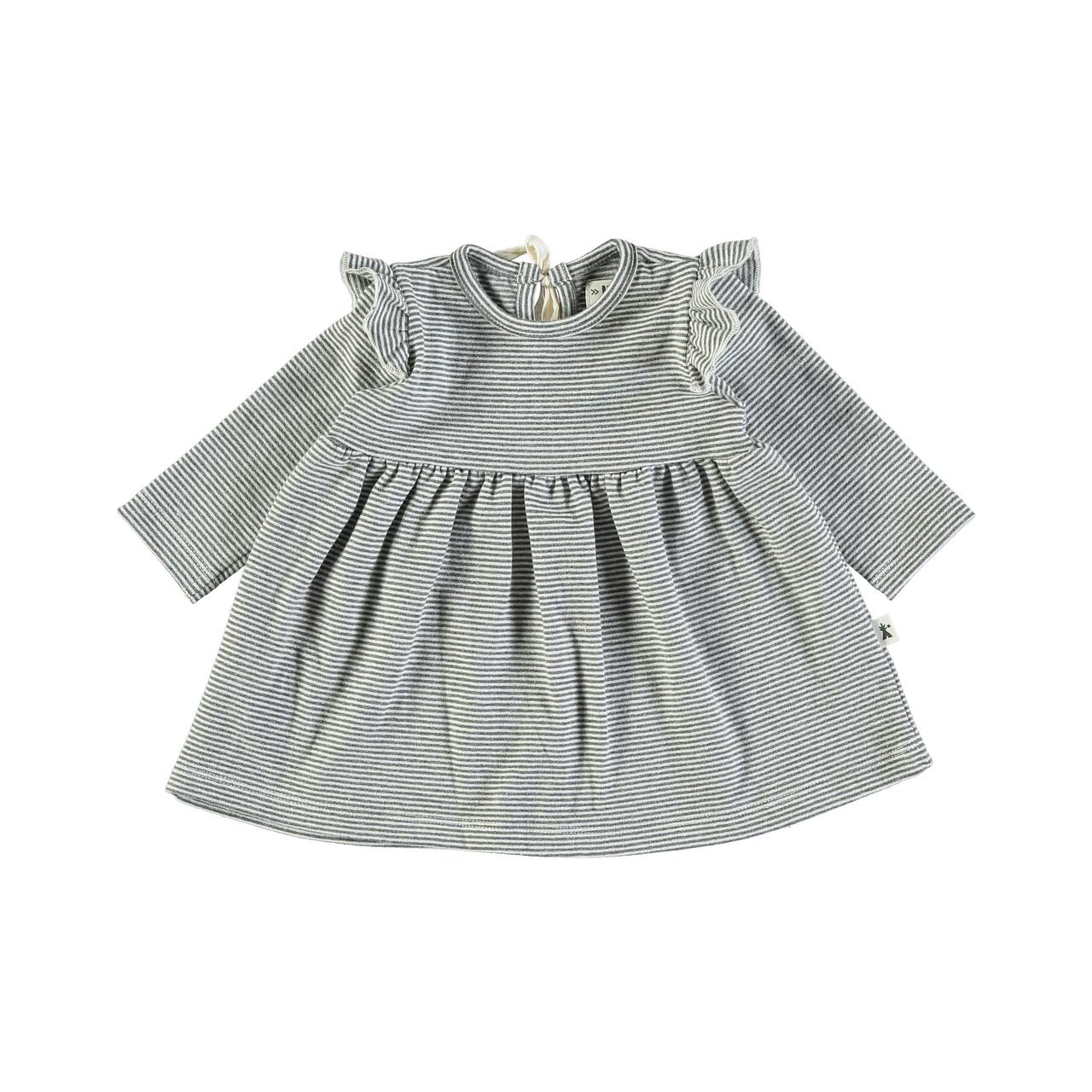Abito in caldo cotone con delicata fantasia a righe, arricchito da raffinati ruches sulle spalline. Un capo che unisce comfort e un tocco distintivo, ideale per un look sofisticato e accogliente.