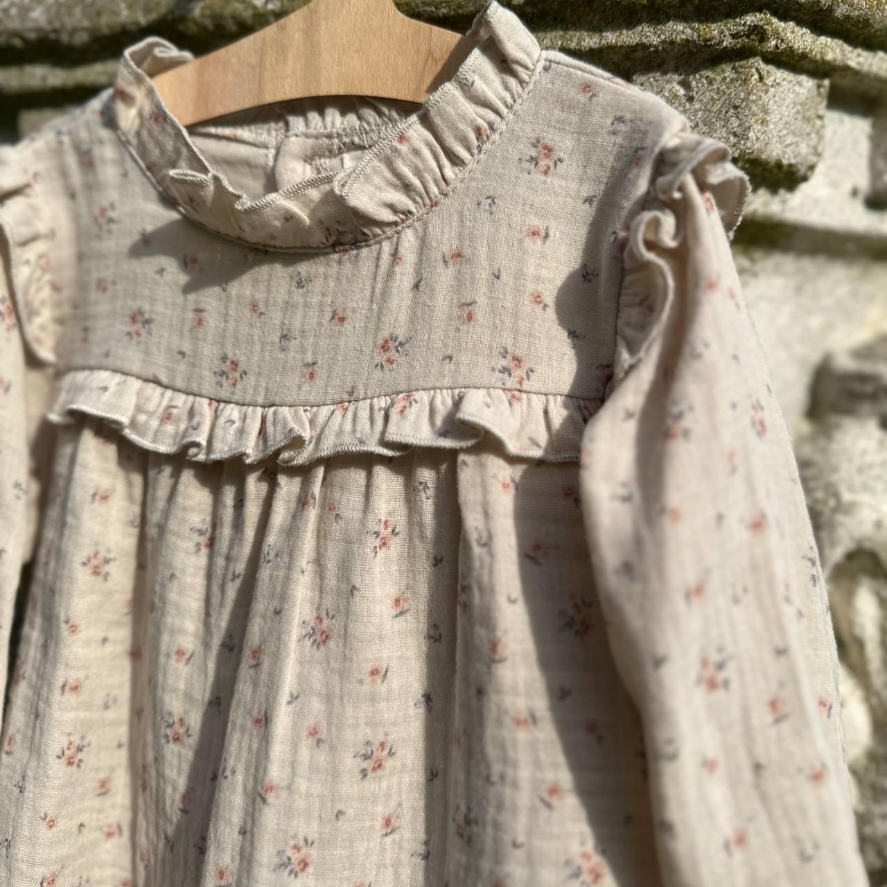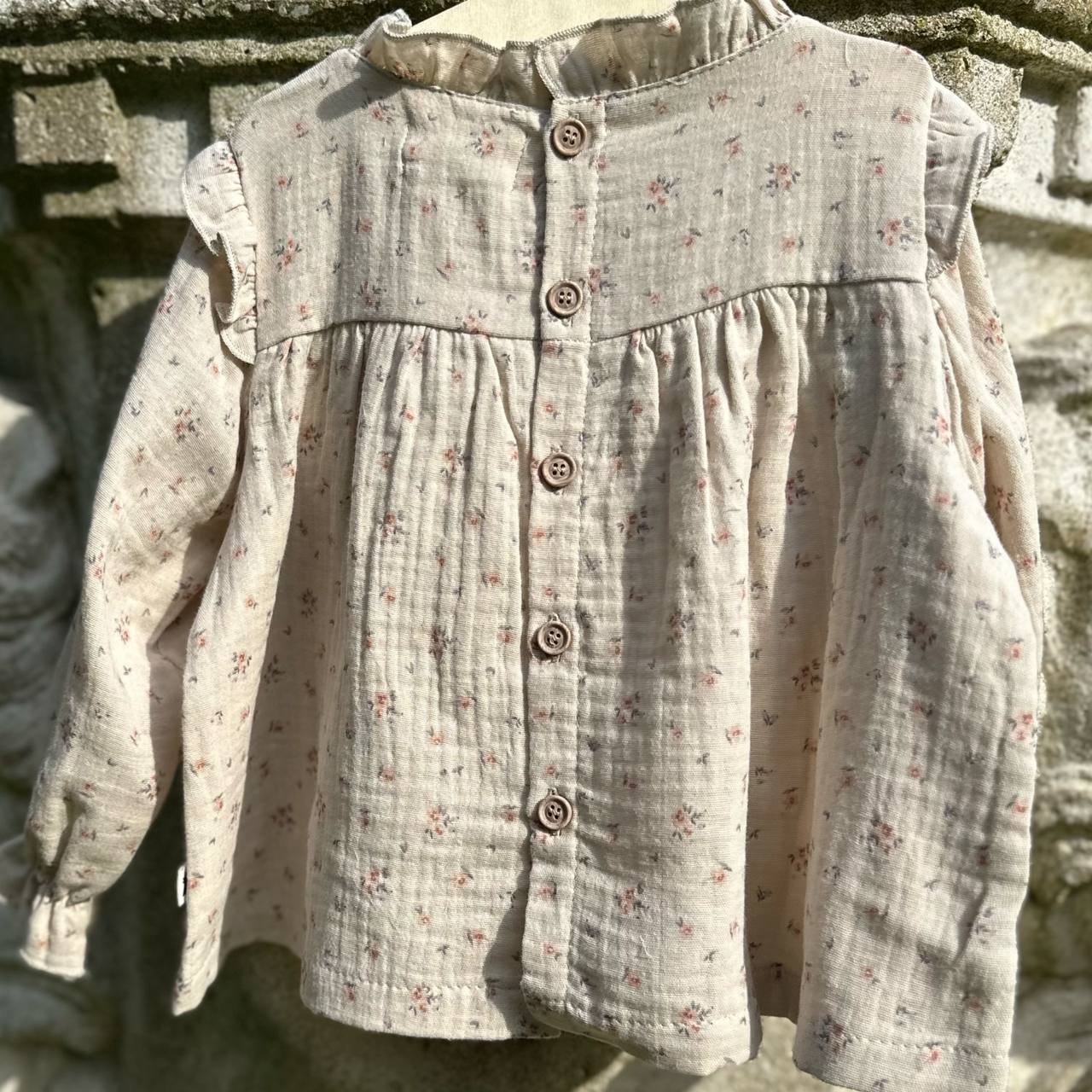 Blusa in morbido cotone con ruches e una vivace stampa floreale. Questo capo unisce eleganza e freschezza, offrendo un tocco di stile giocoso e sofisticato.