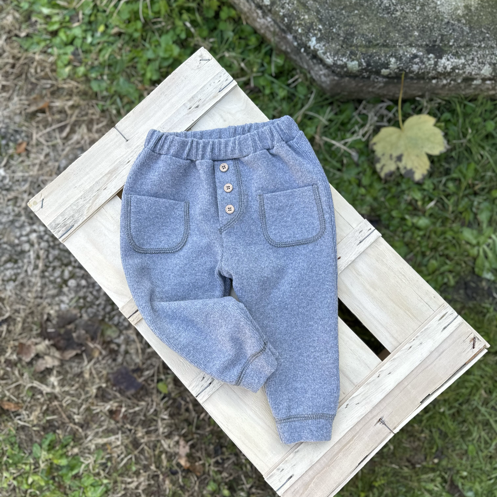 pantaloni a costina grigi, realizzati in caldo cotone morbido, offrono comfort e stile per le giornate più fresche. Dotati di pratiche tasche frontali, sono ideali per un look casual e funzionale, perfetti per i piccoli sempre in movimento.