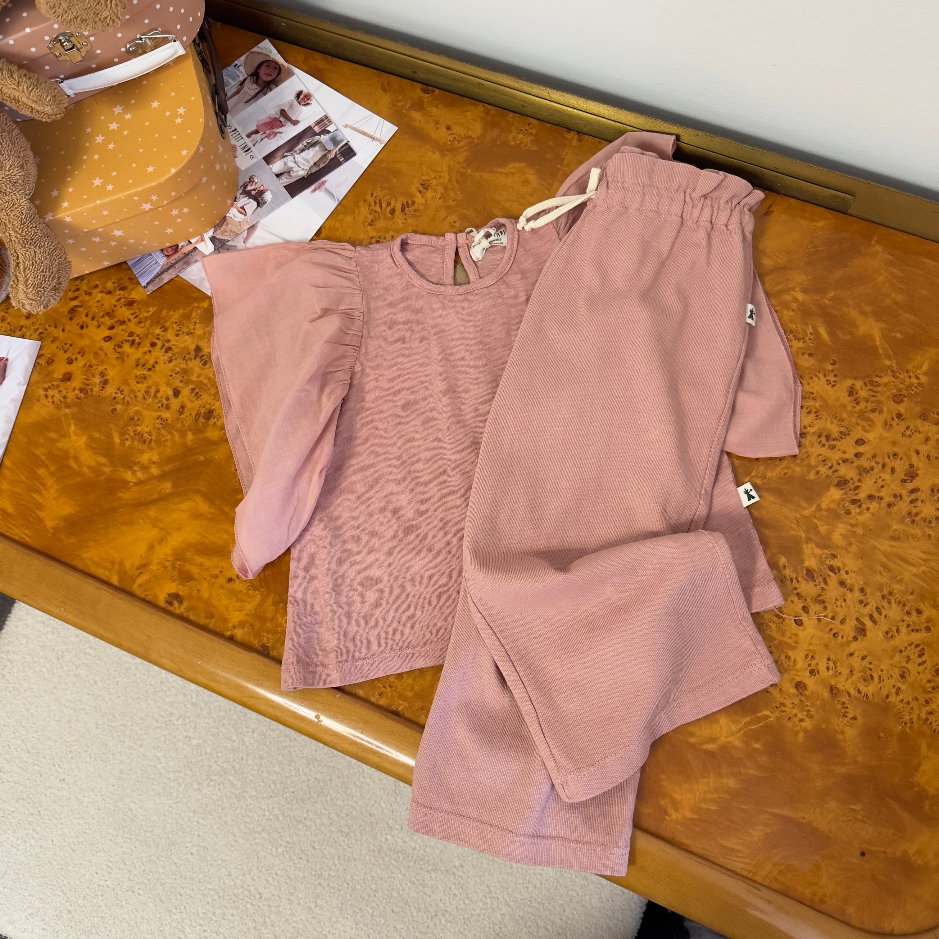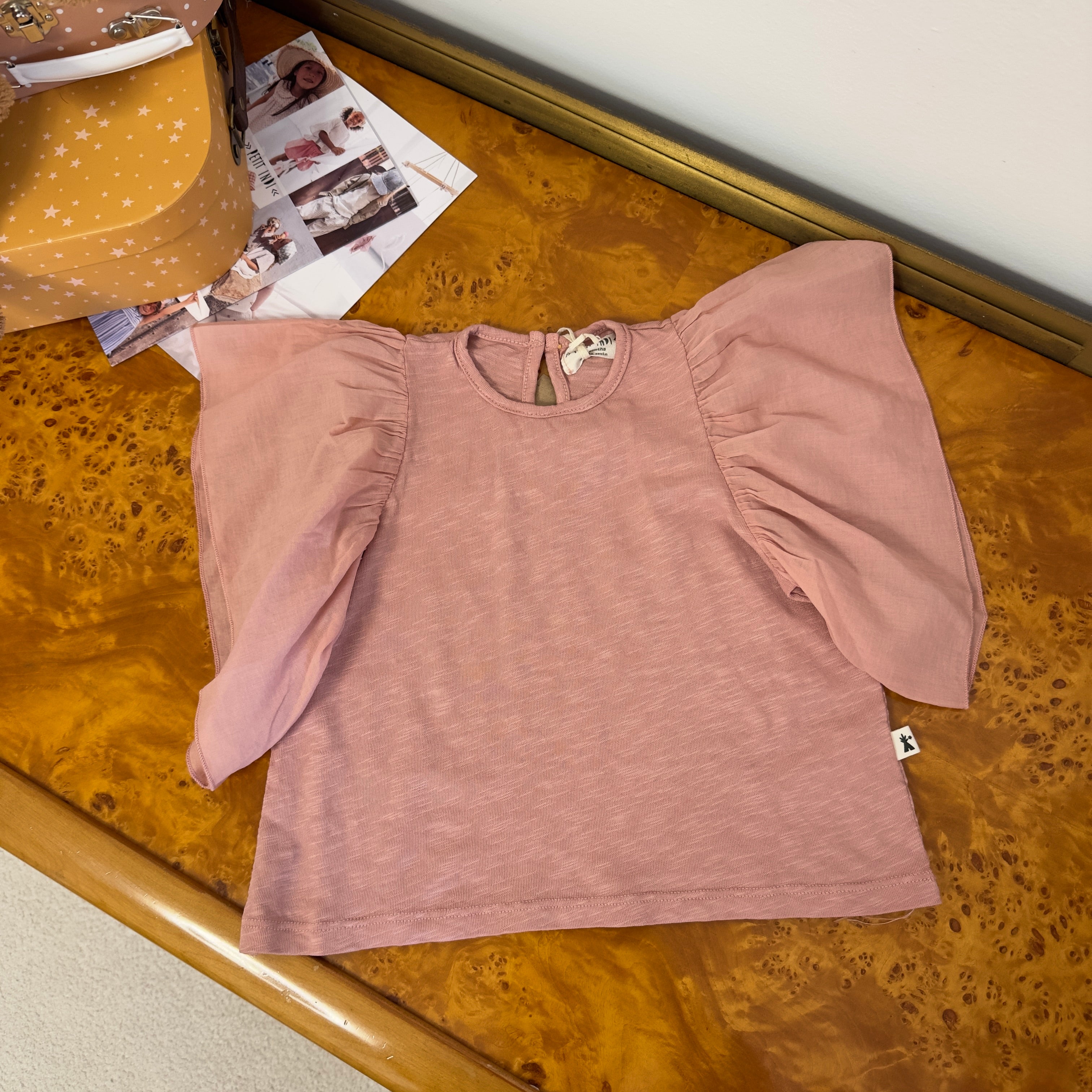 T-shirt in cotone organico - rosa antico- con volant sulle spalle – morbida, versatile e essenziale