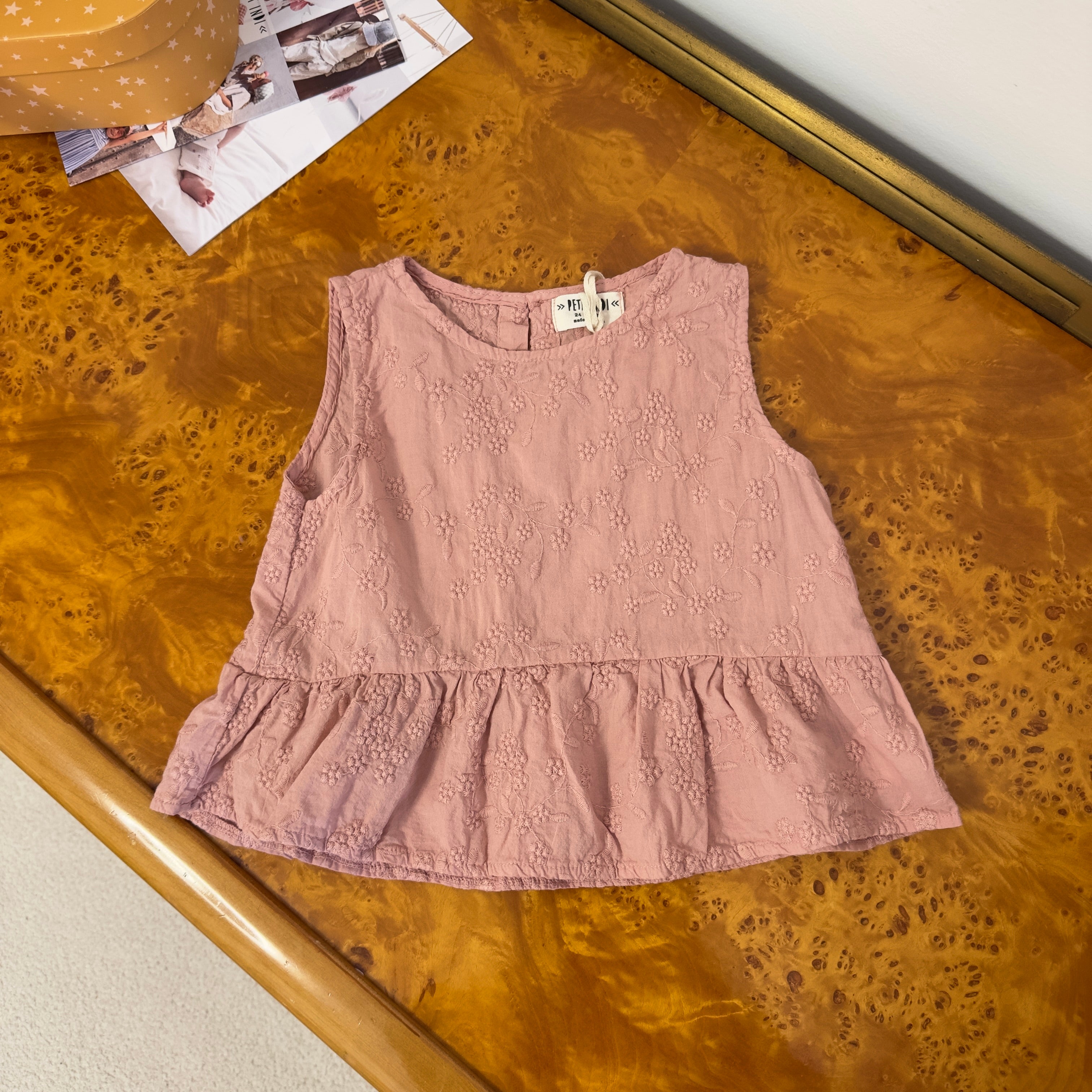 Top rosa antico ricamato con fondo svasato – elegante