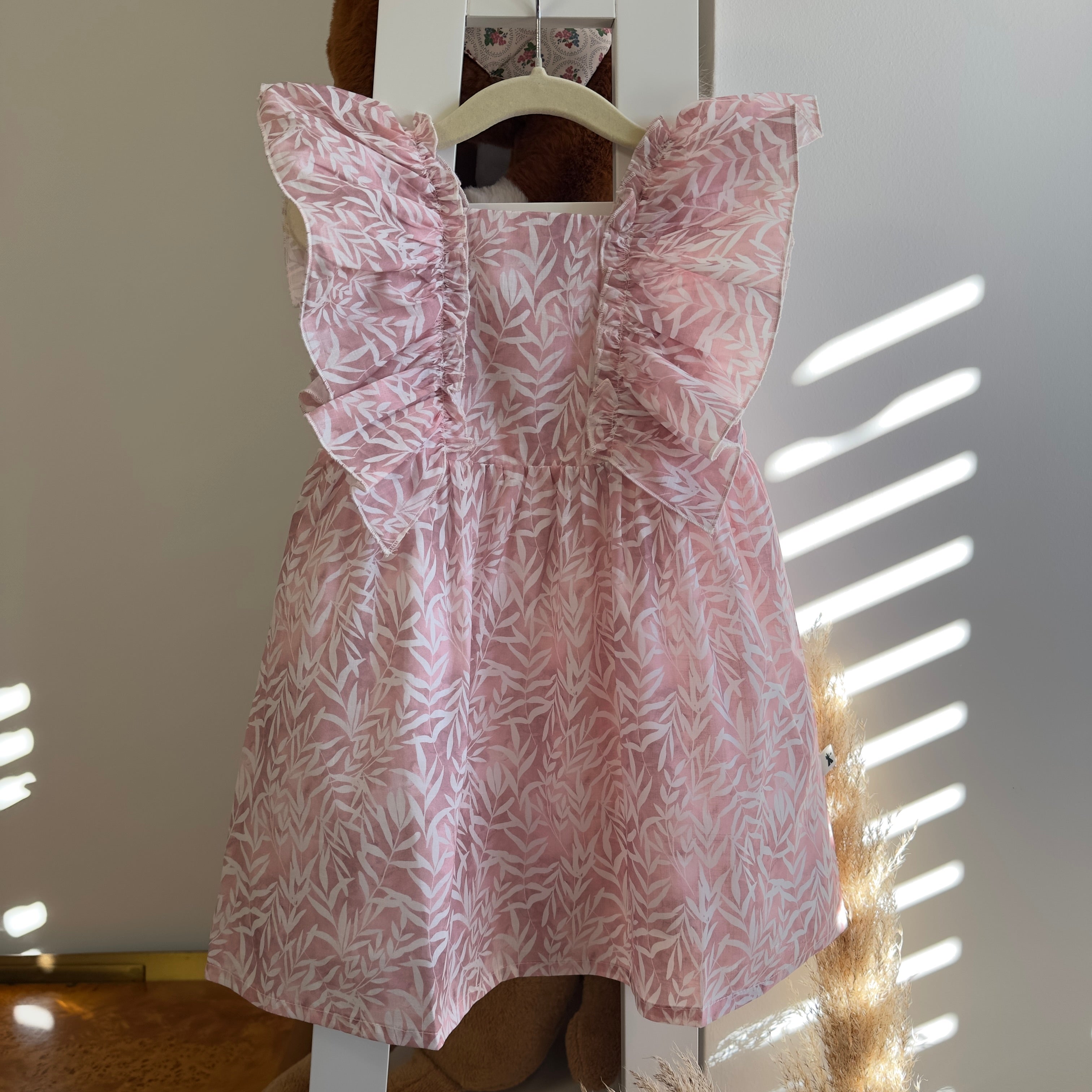 Abito rosa antico con volant sulle spalle – romantico, elegante e versatile
