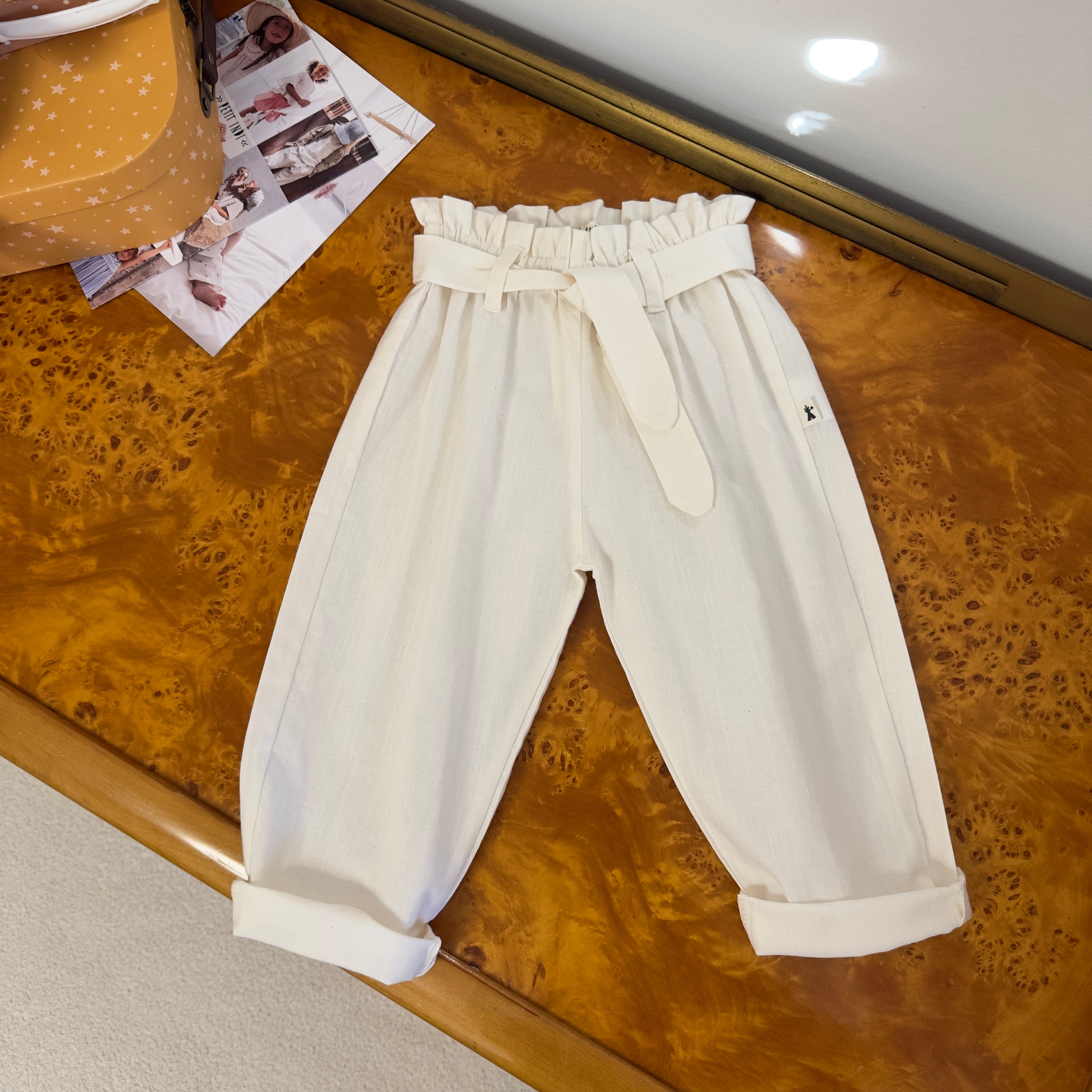 Pantalone carrot fit latte a vita alta con cinturino ed elastico – versatile e facile da abbinare