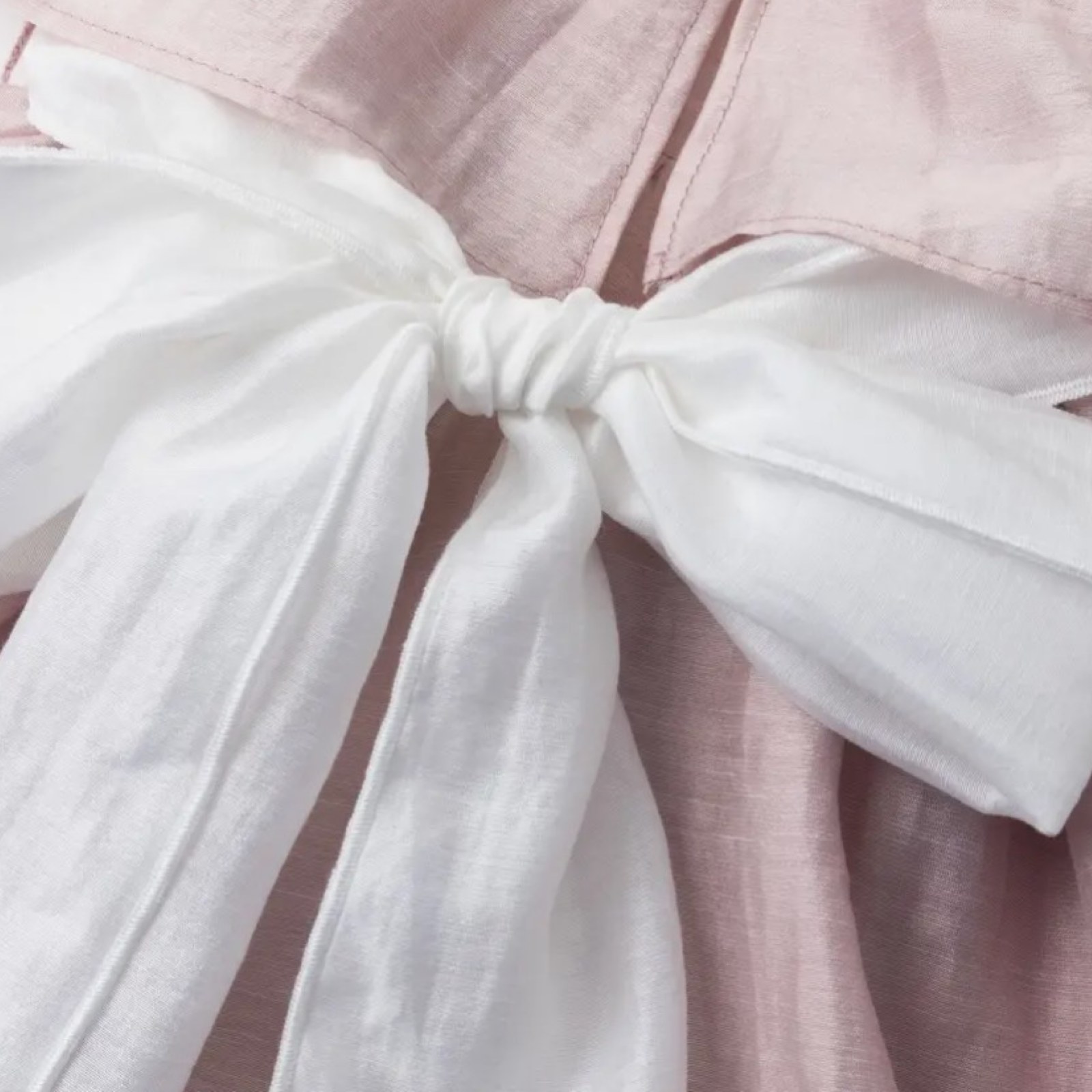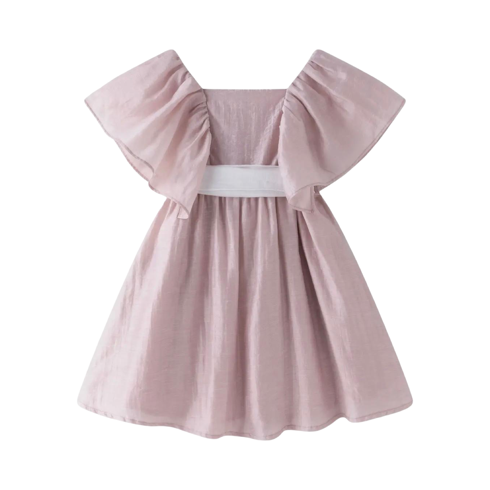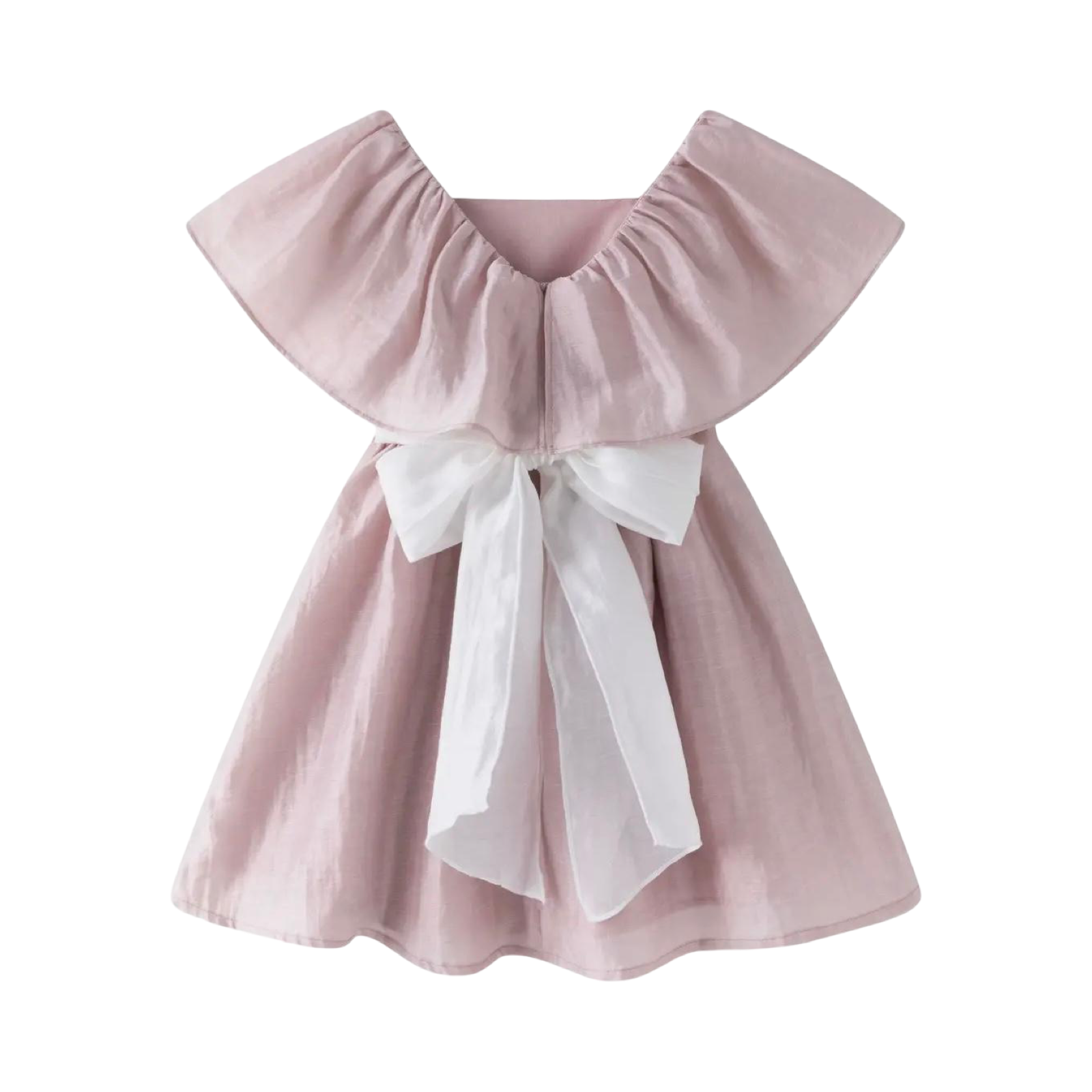 Newness - Abito Cerimonia Rosa Polvere con Cintura a Fiocco