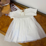 petit indi - Abito in filo di cotone color latte con tulle ricamato a margherite