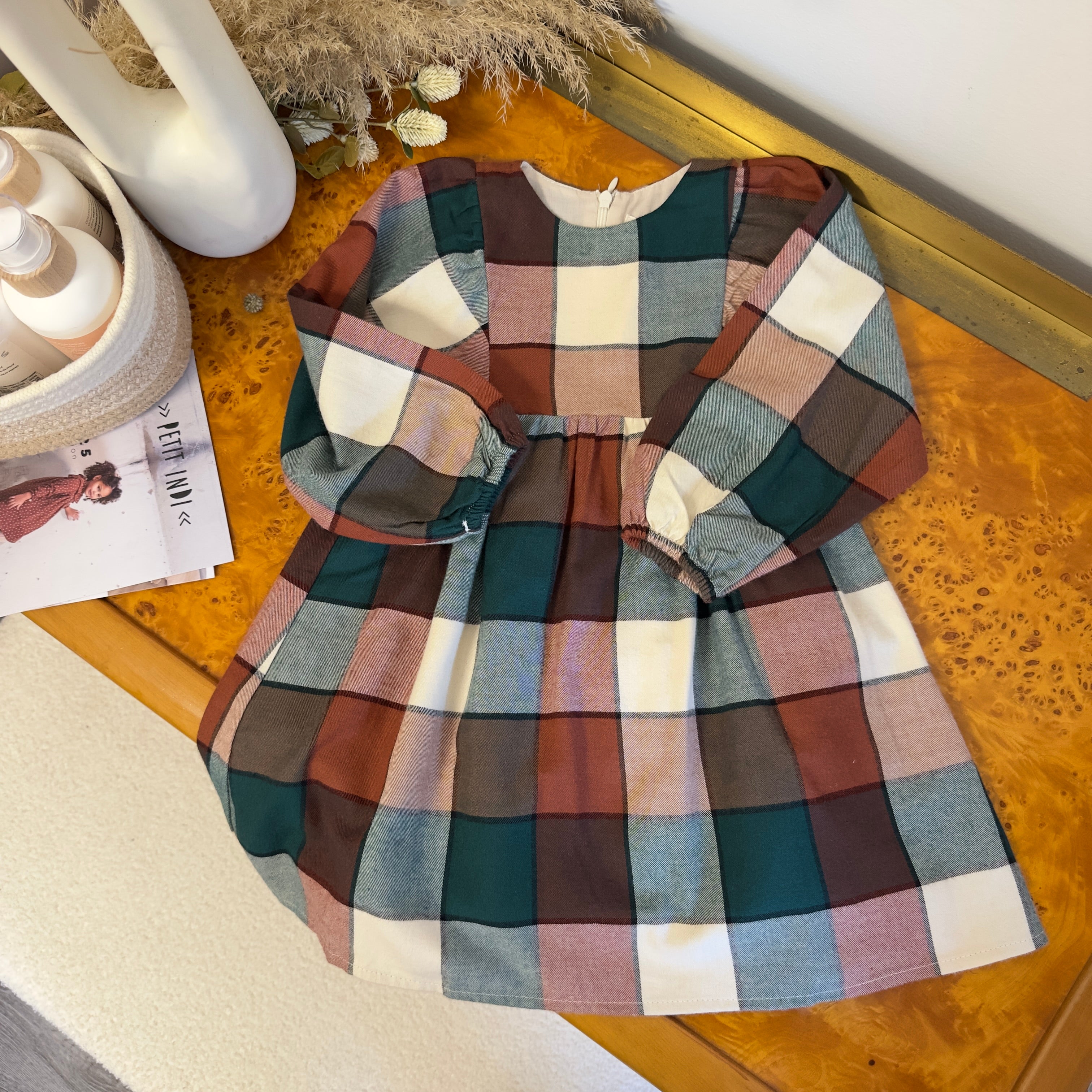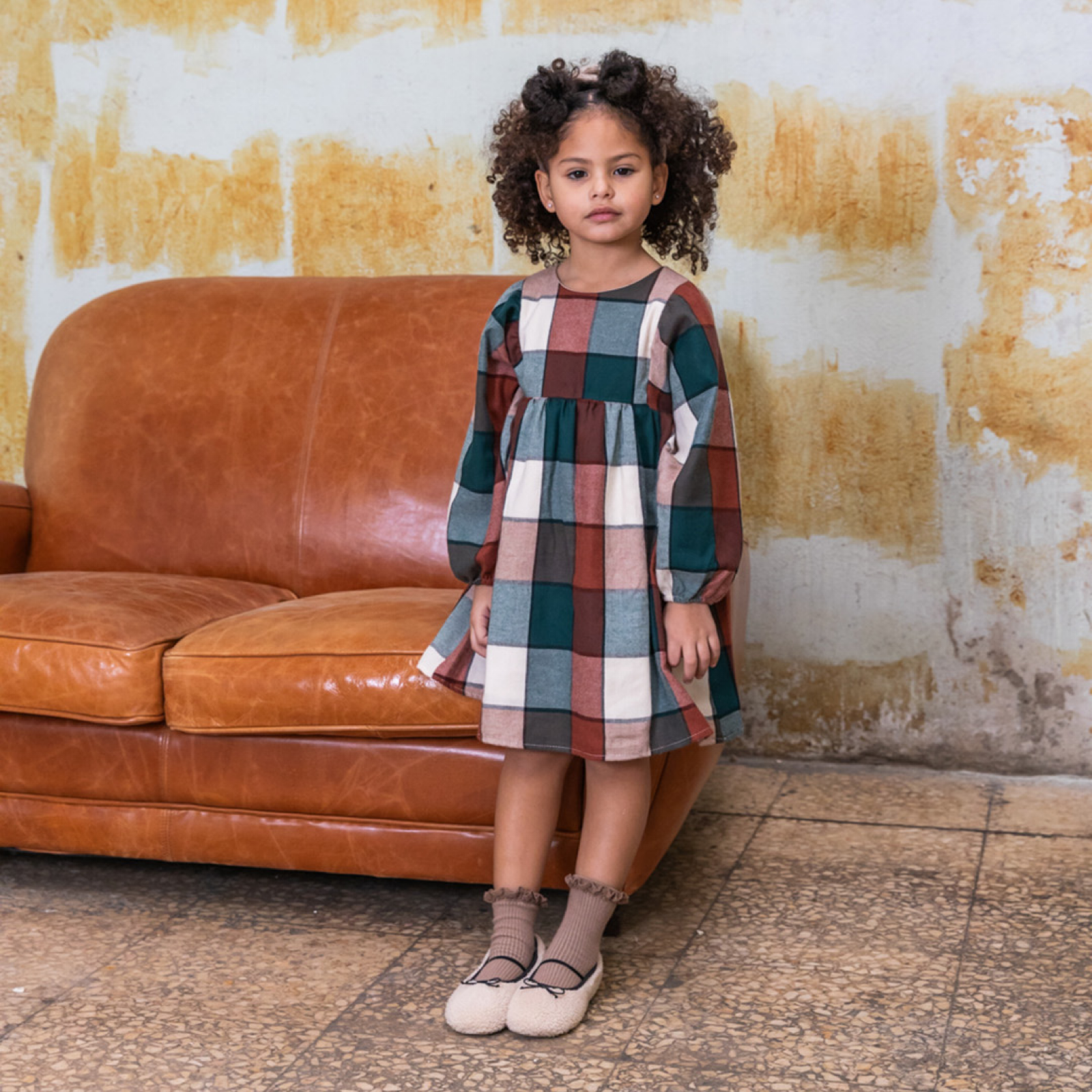 petit indi - Abito a quadri con manica a palloncino – morbido e avvolgente