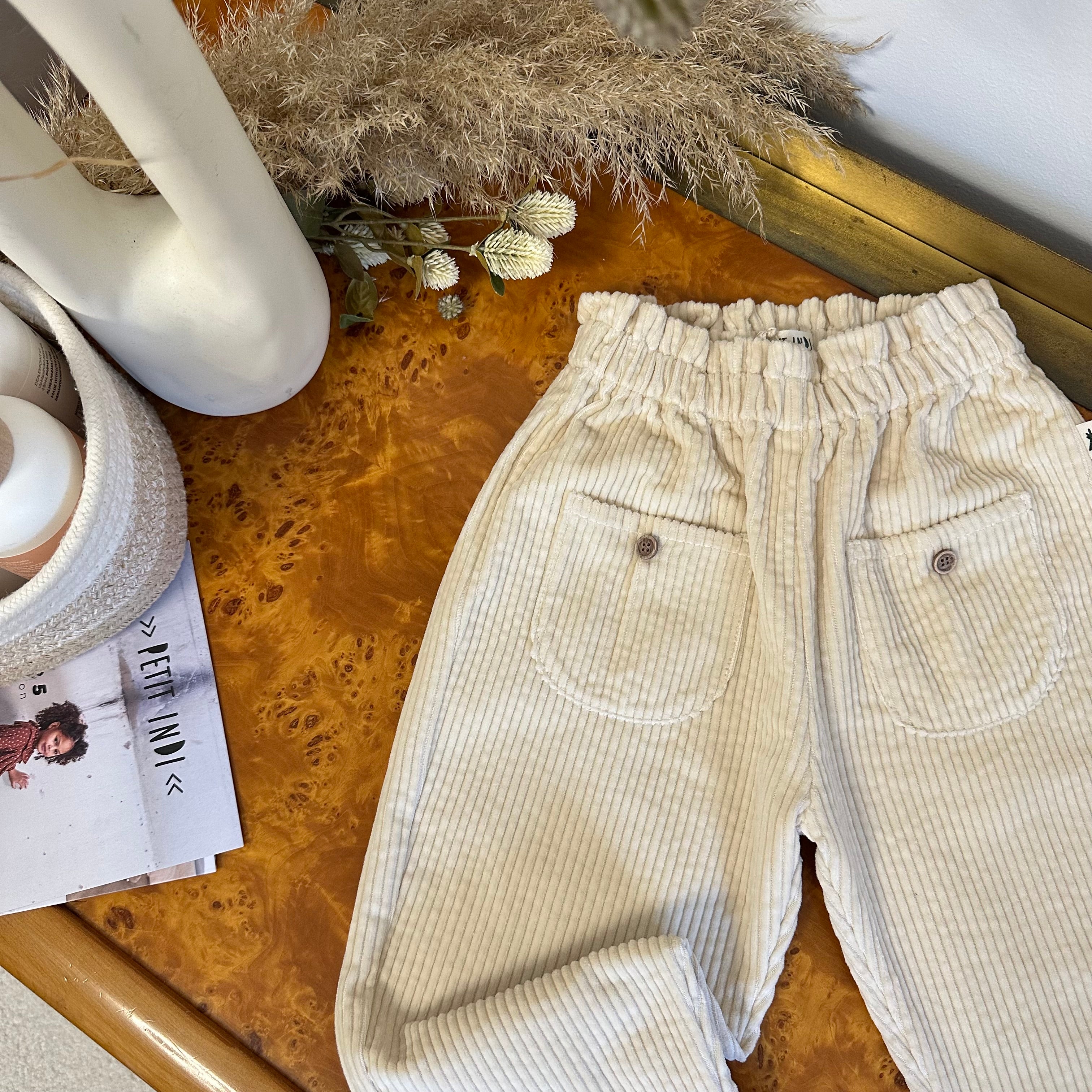 petit indi - Pantaloni in velluto di cotone a coste avorio con tasche frontali