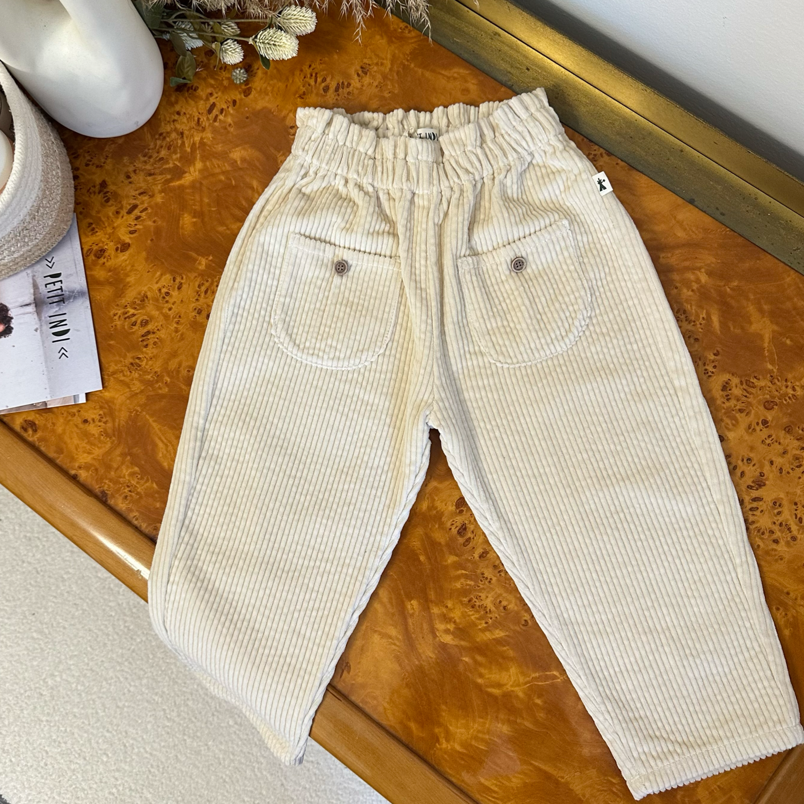 Un capo che fa la differenza nei look di tutti i giorni: questi pantaloni in velluto di cotone avorio, morbidi e confortevoli, accompagnano ogni movimento con naturalezza. Le tasche frontali aggiungono un tocco pratico e sofisticato, mentre la linea pulita li rende perfetti tanto per l’asilo quanto per un’occasione speciale. Ideali per chi cerca bellezza e comodità, senza compromessi.