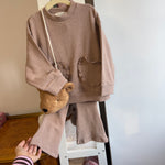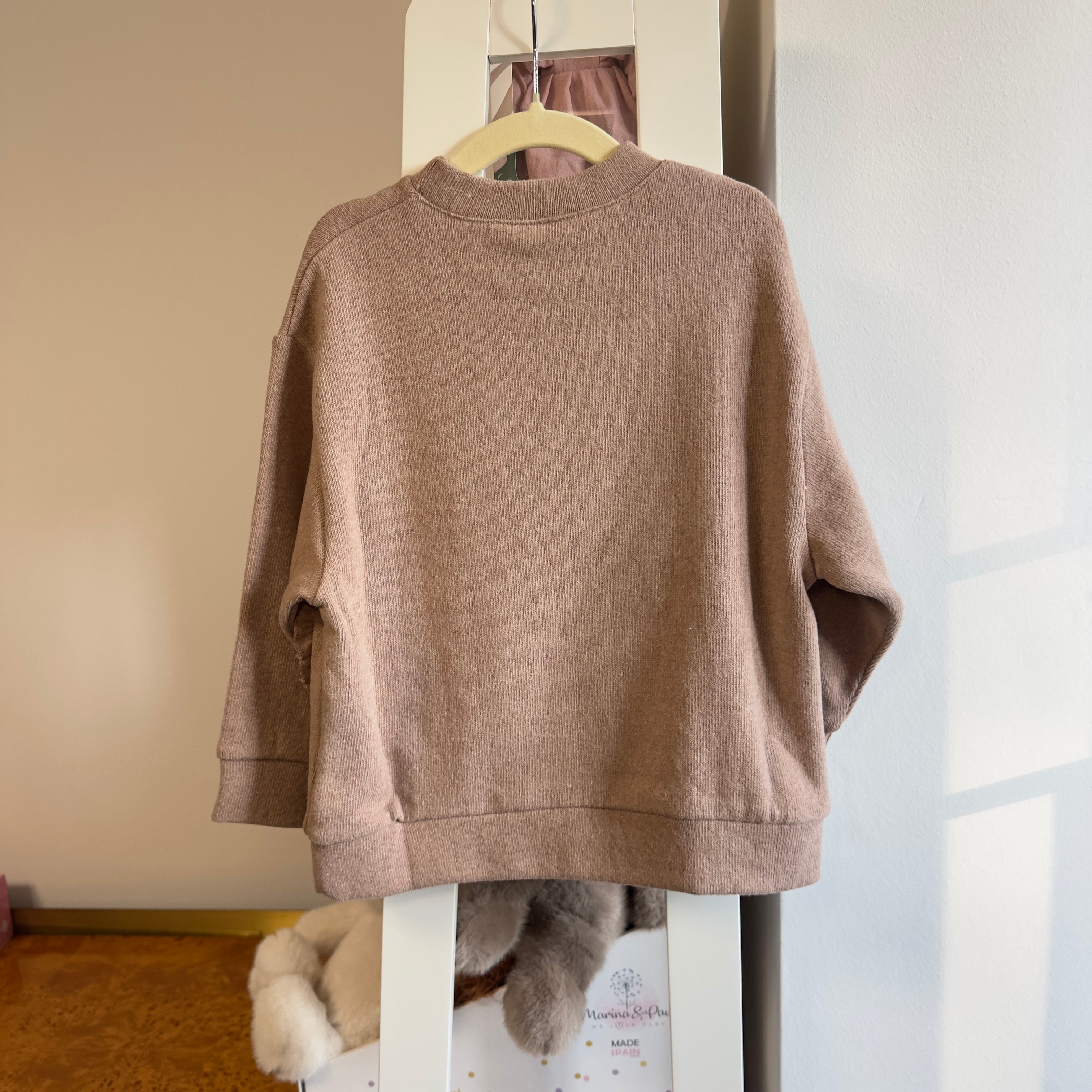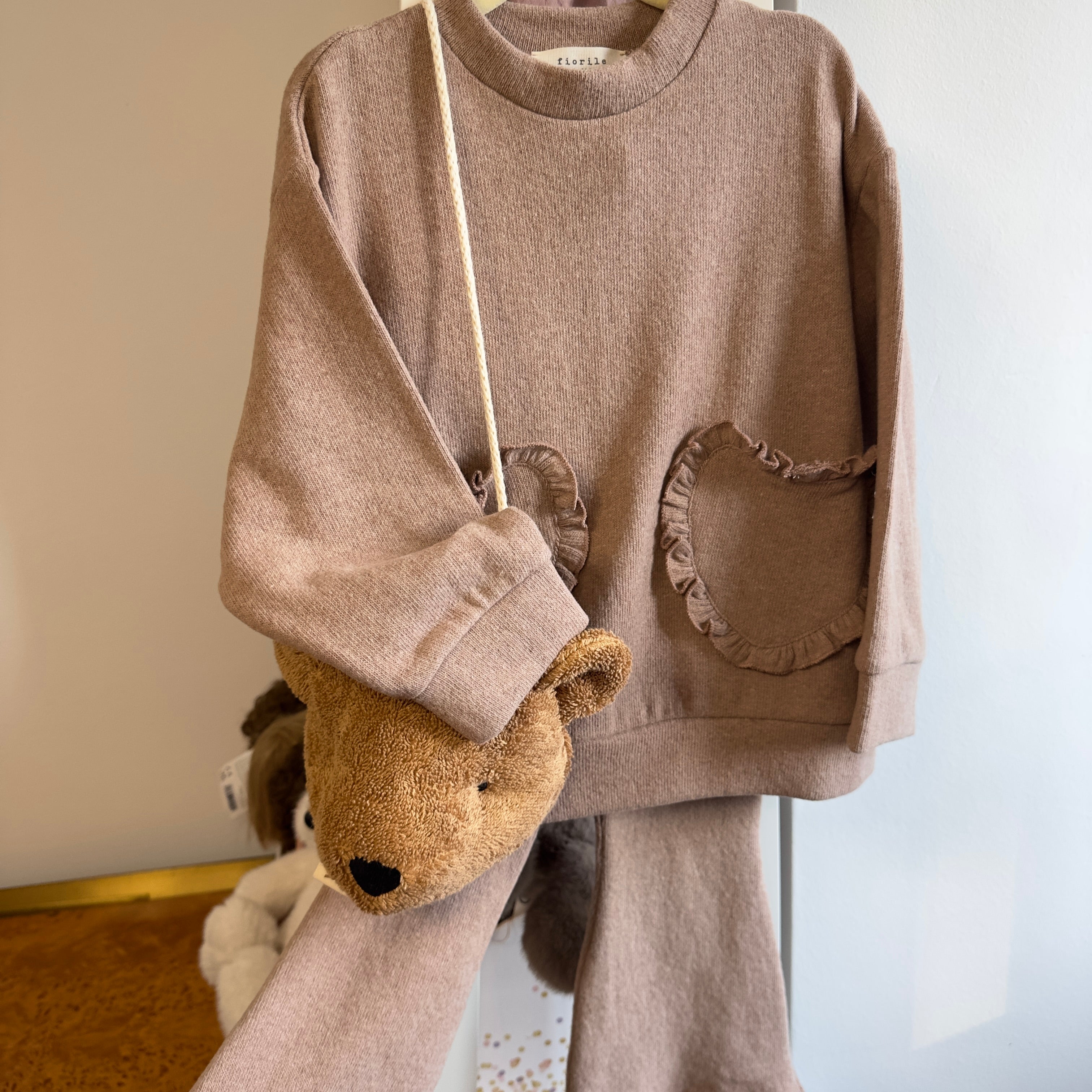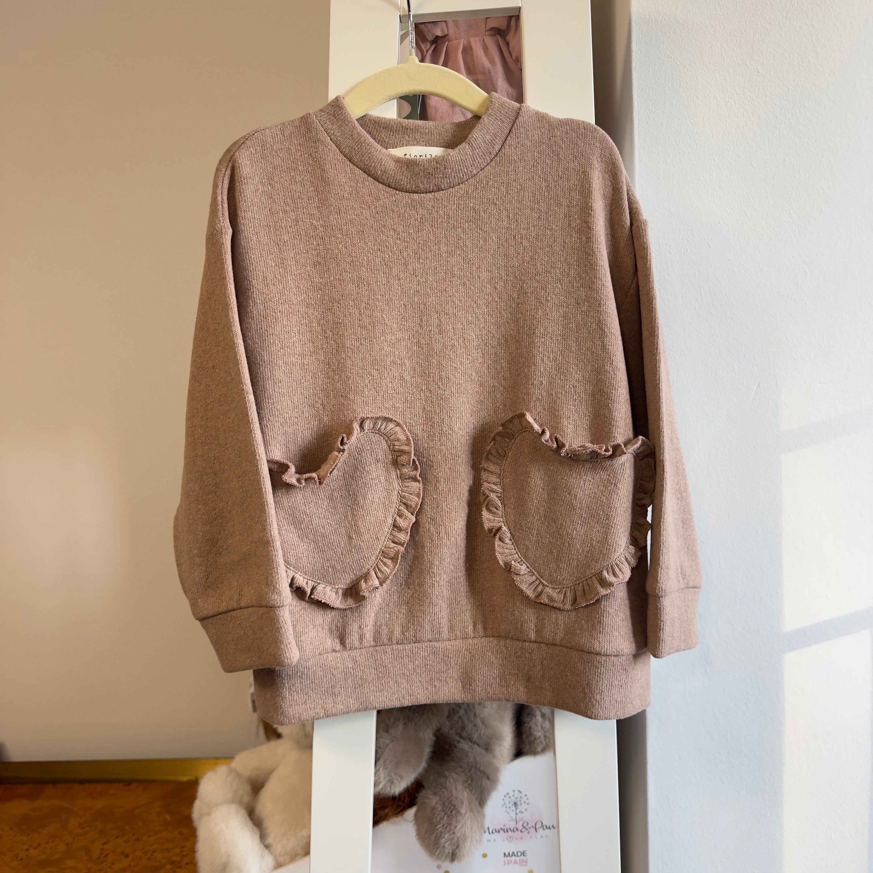 fiorile - Maglia in caldo cotone cameo rose con tasche frontali a cuore