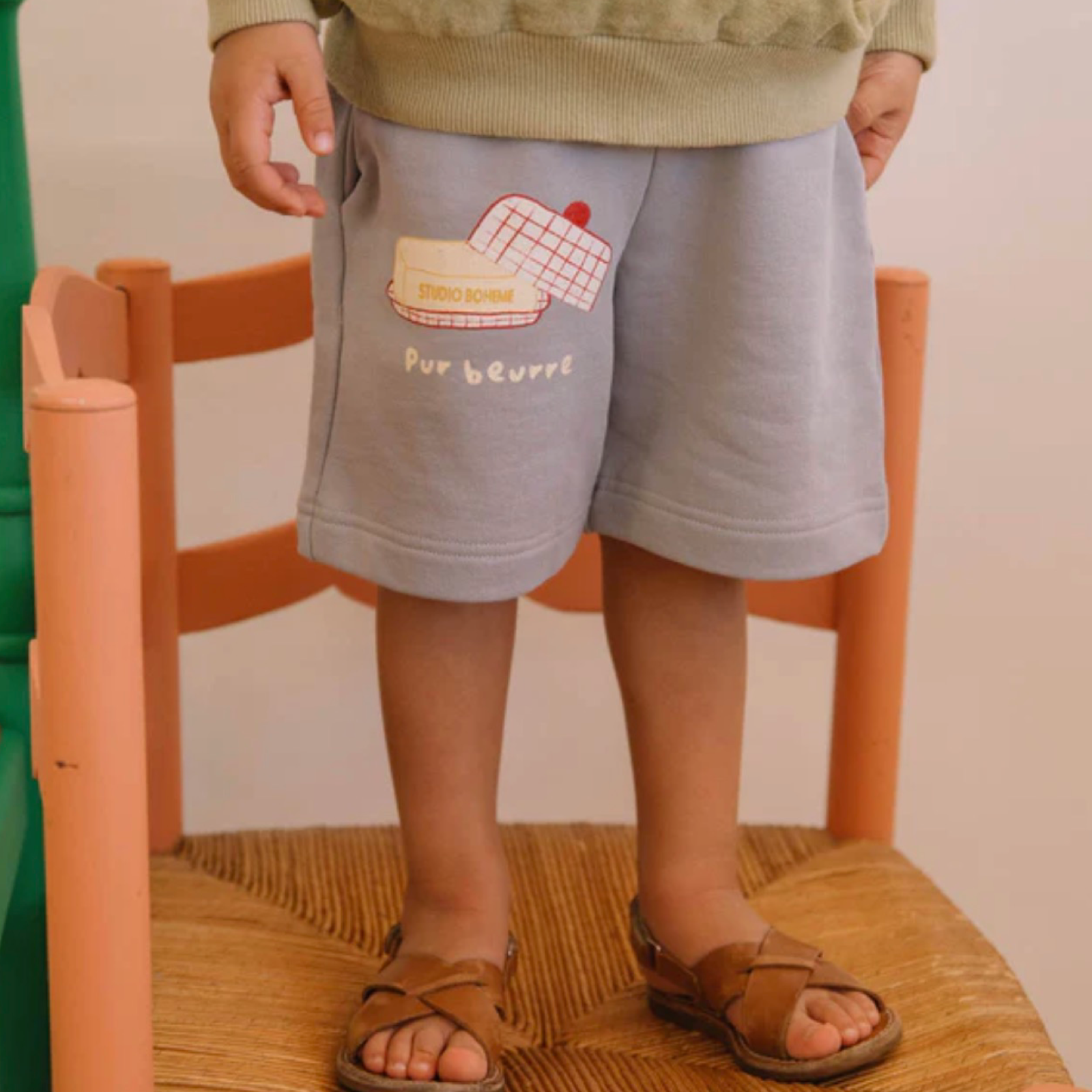 petit indi - Bermuda Basile Terry in Felpa di Cotone Biologico –blue silver beurre