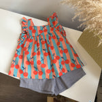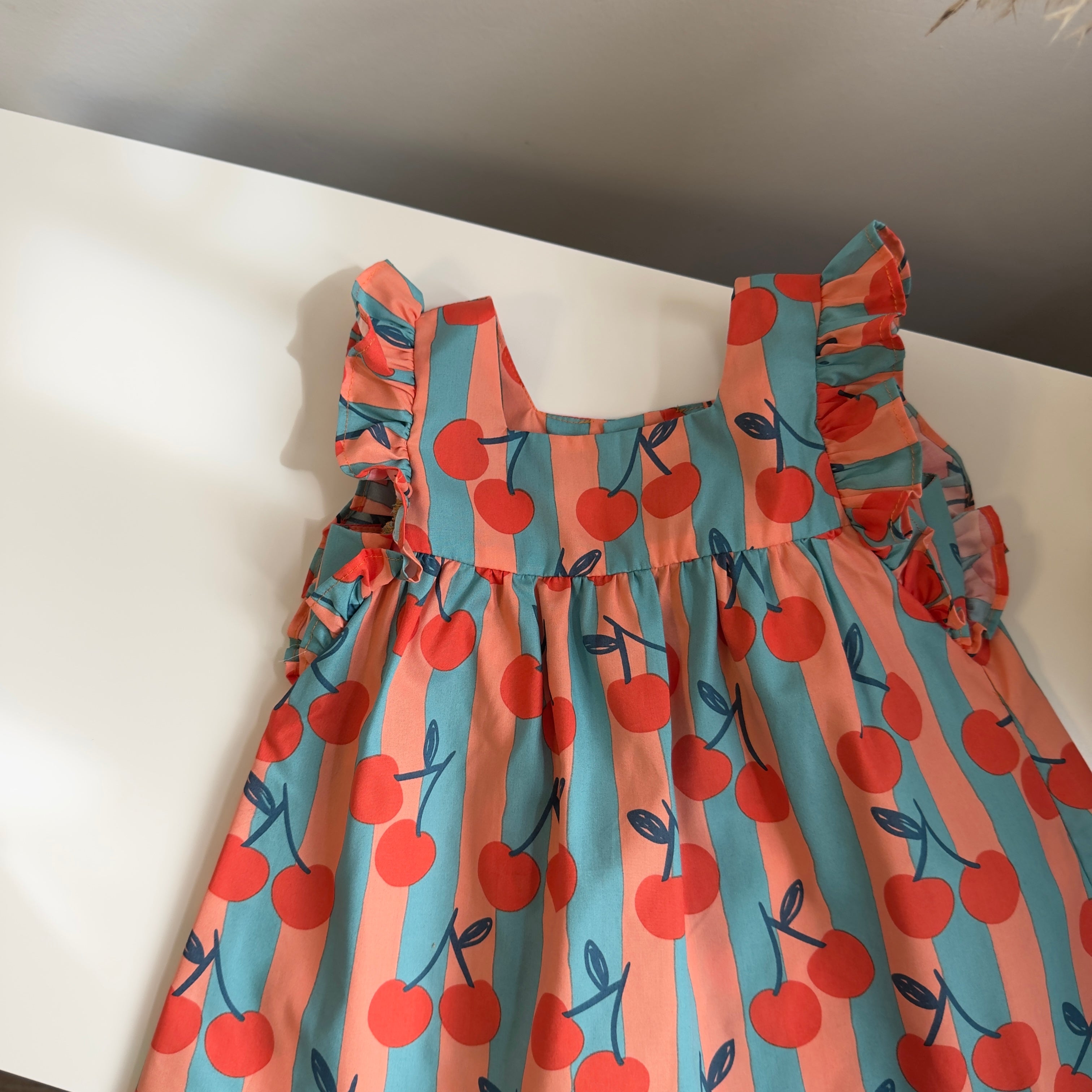 Pepecè - Blusa lunga artigianale a righe con ciliegie – linea ampia e dettagli curati