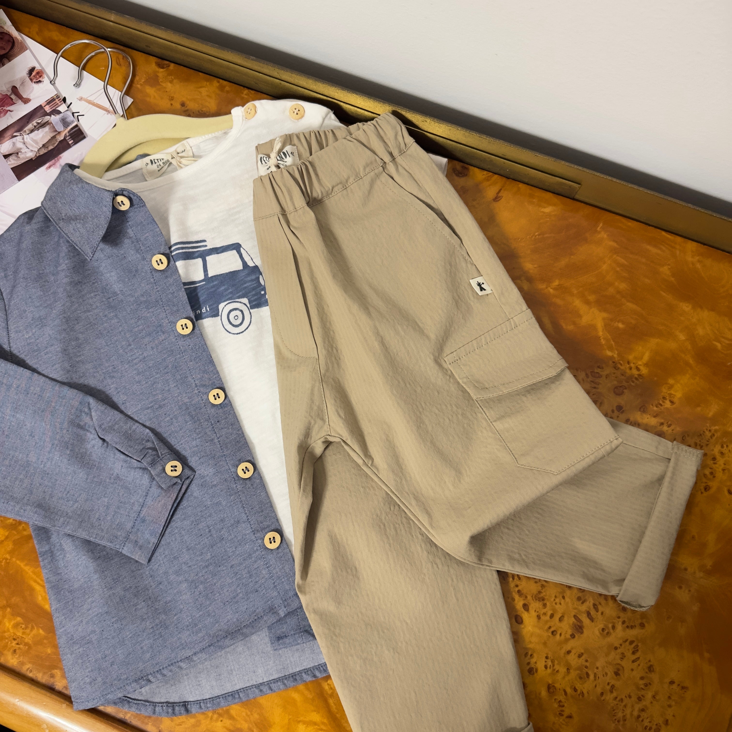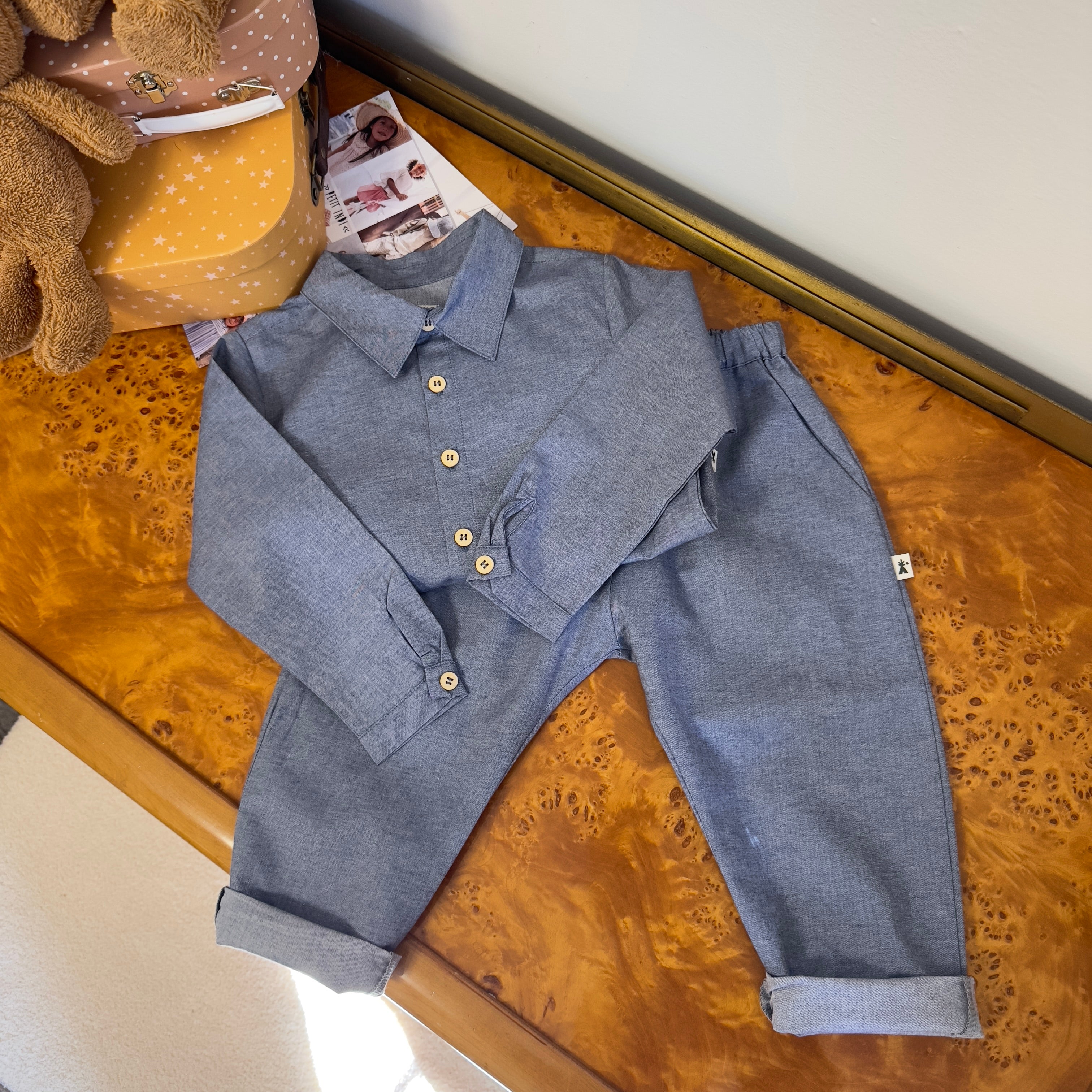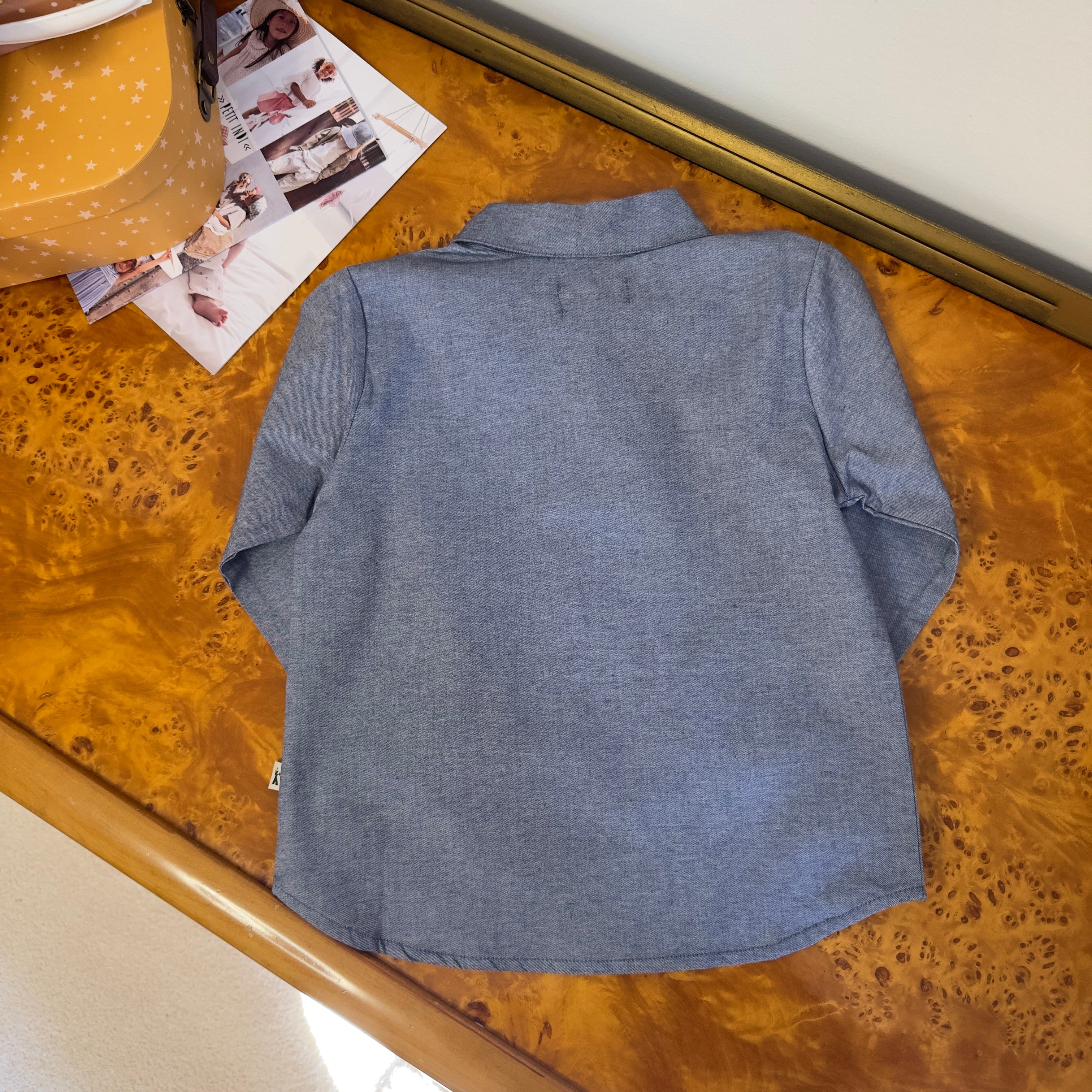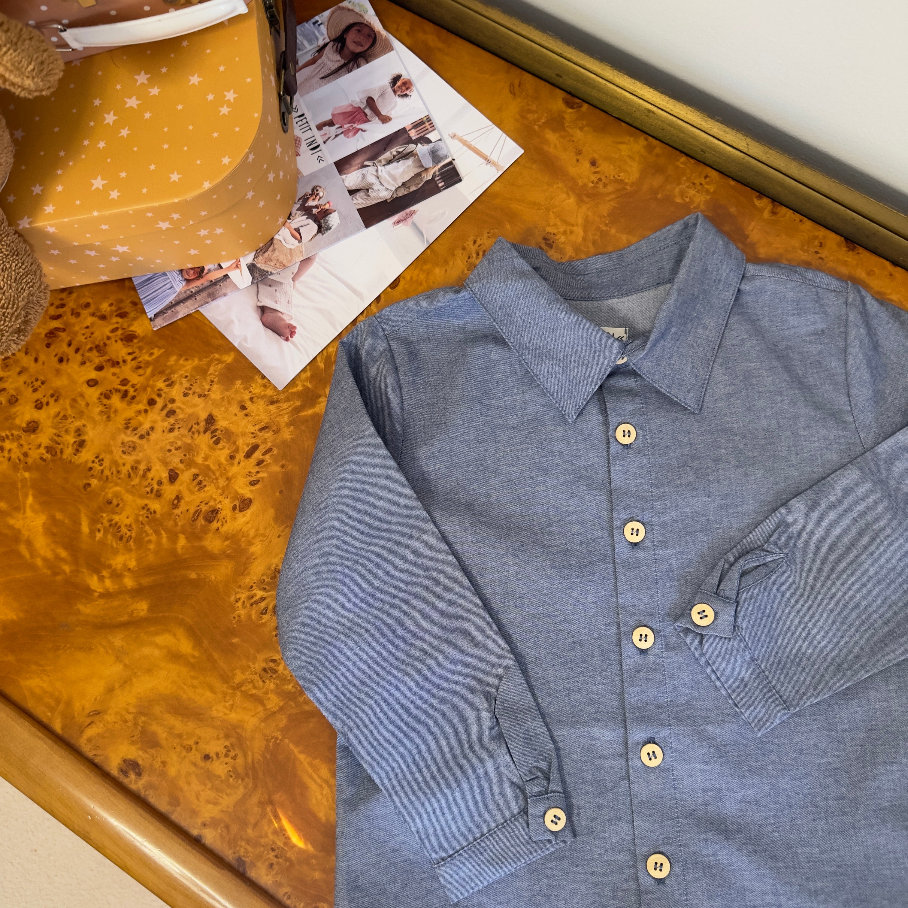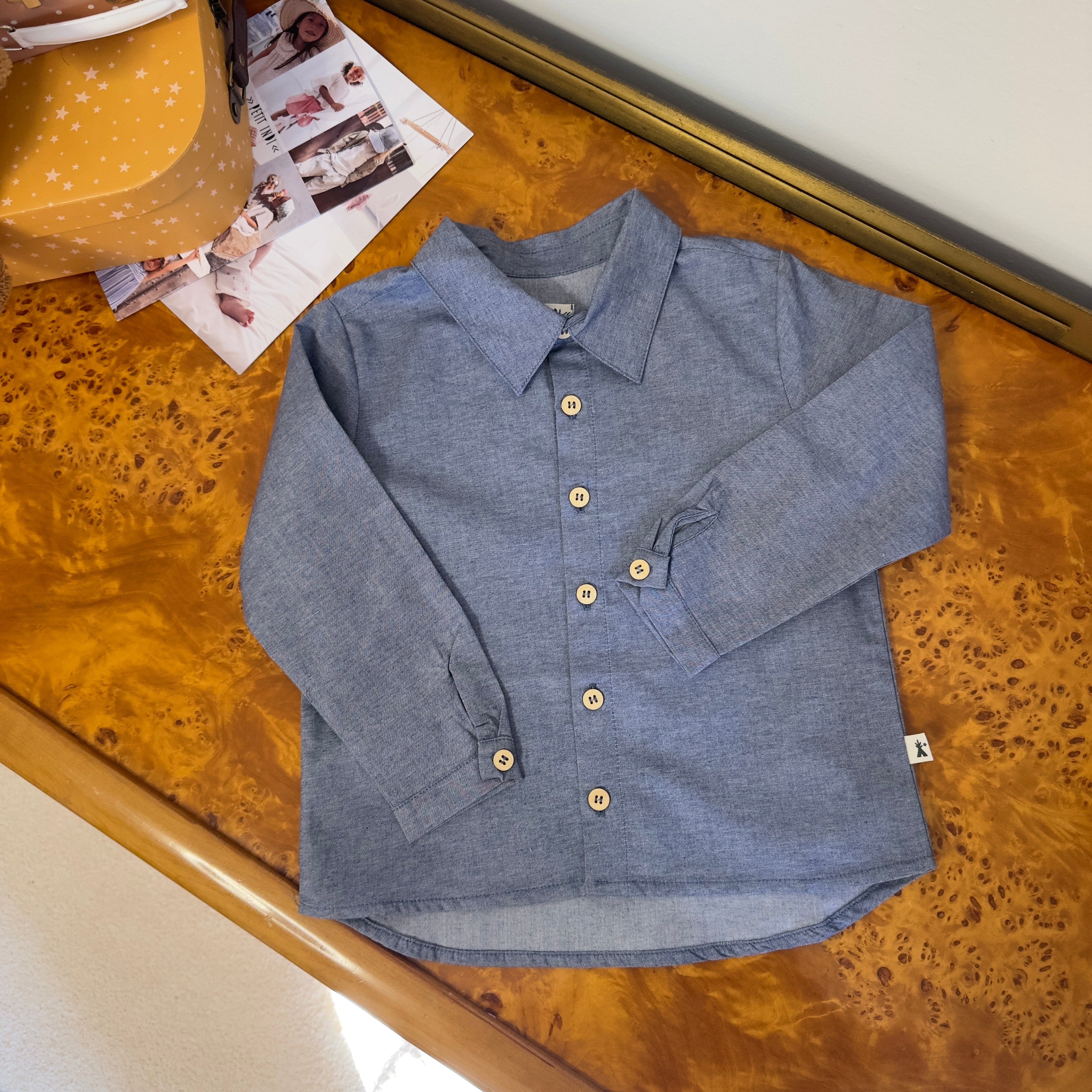 petit indi - Camicia in chambray di denim con bottoncini in legno